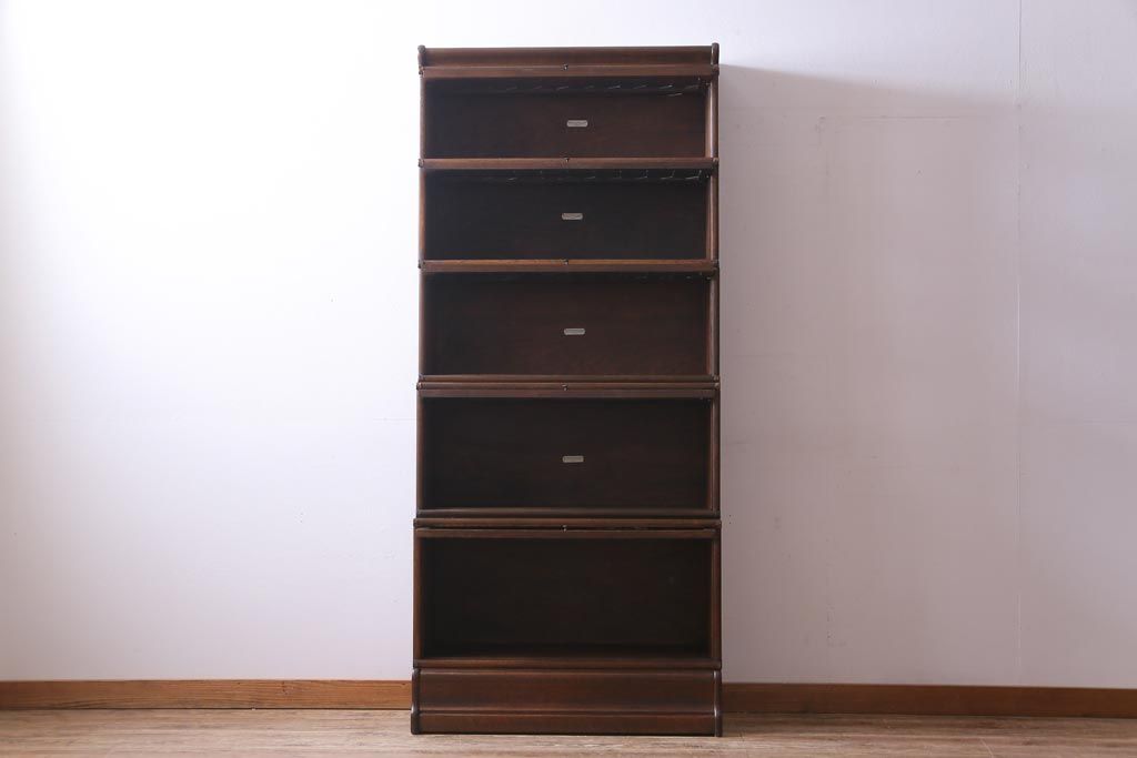 ラフジュ工房> キャビネット・戸棚> 本箱 > アンティーク家具 イギリスアンティーク オーク材 ステンドグラス入り 5段の最高級品スタッキングブックケース(本箱)
