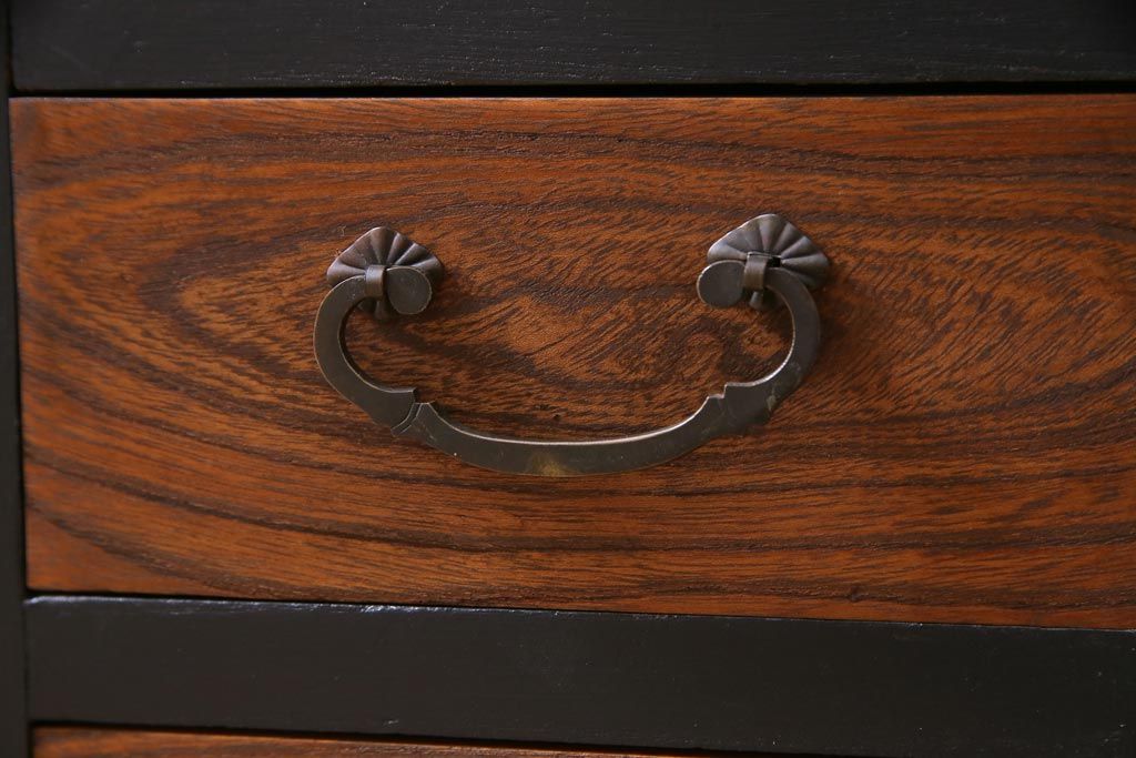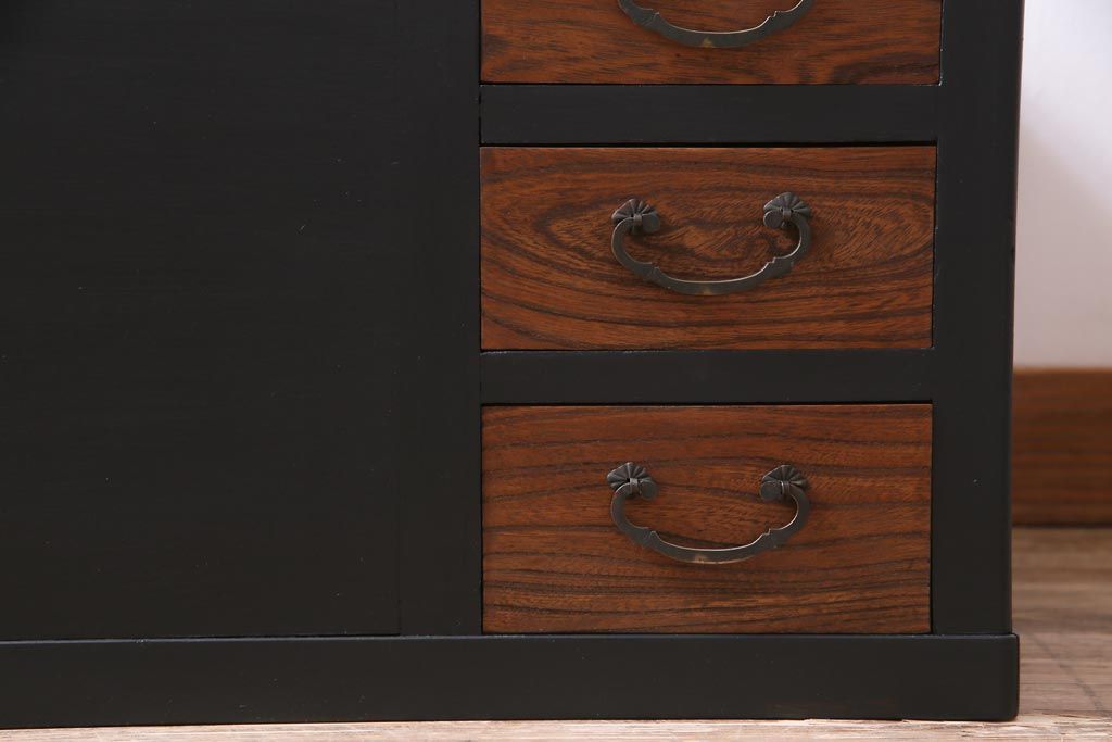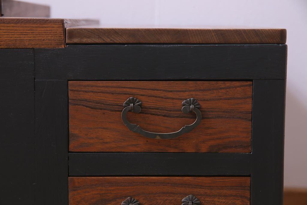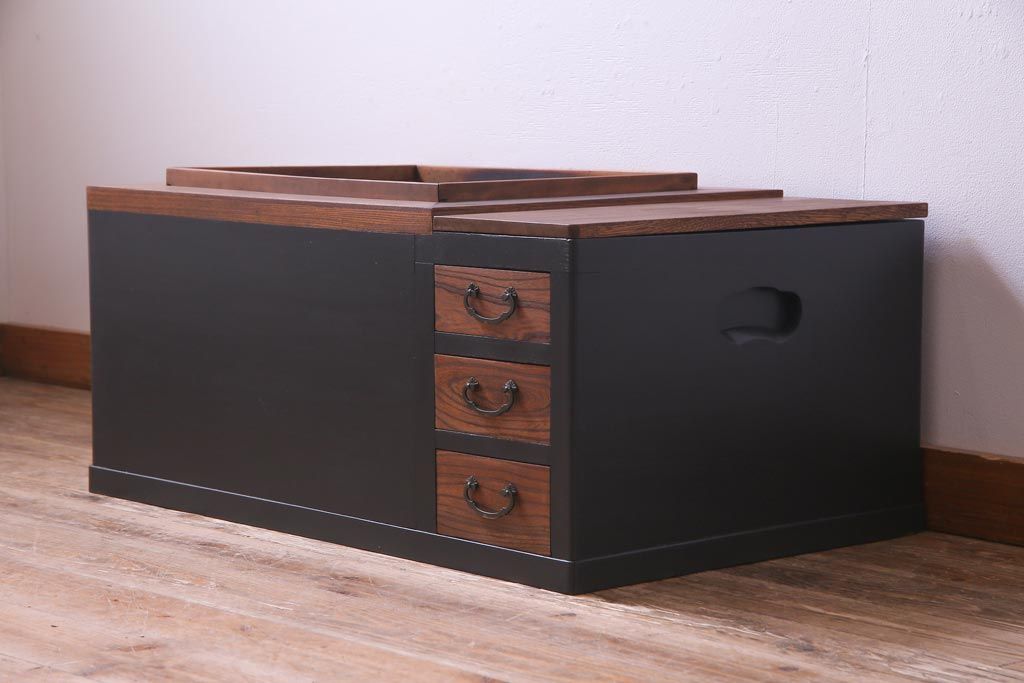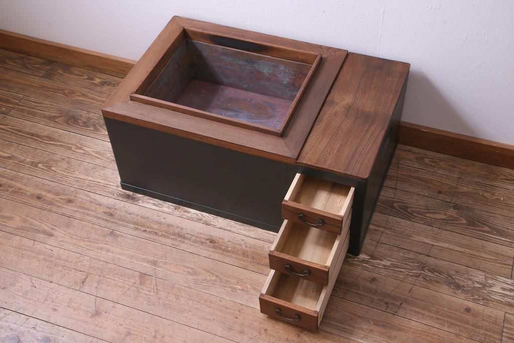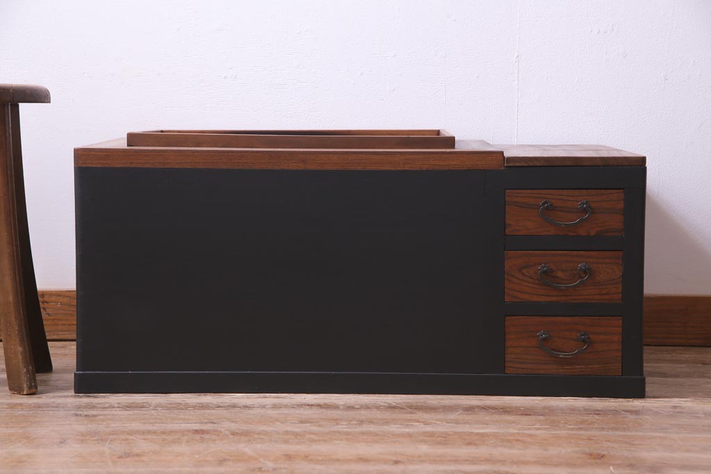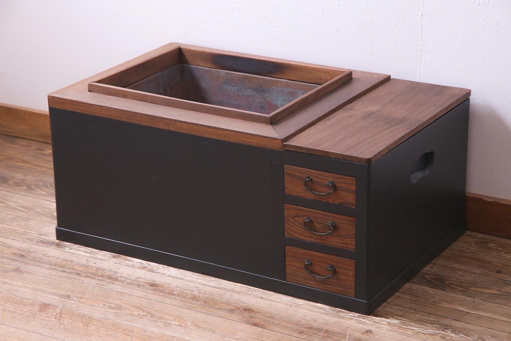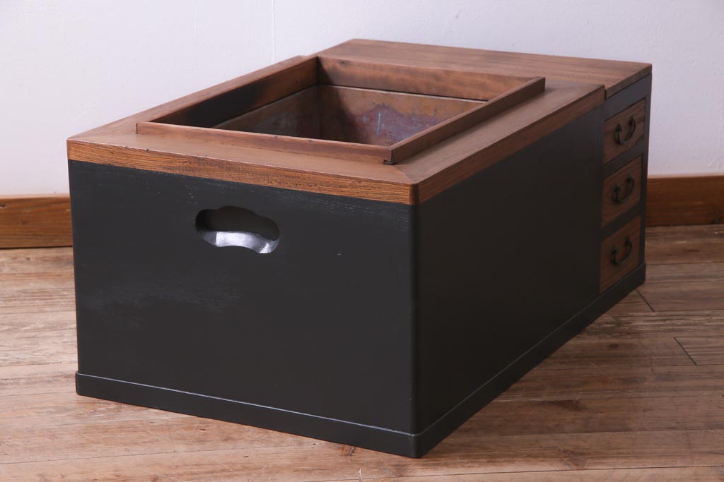 和製アンティーク 大正昭和期 ケヤキ材 ペイントカラーと木色のコントラストが格好いい長火鉢です。