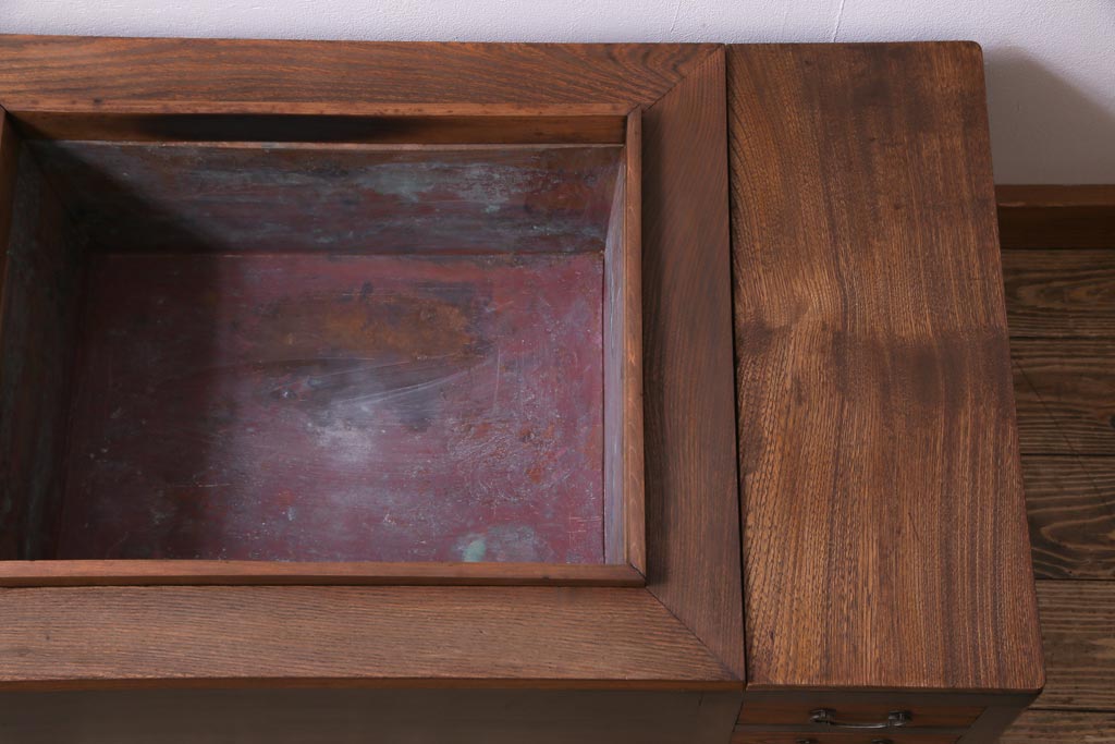 アンティーク雑貨 和製アンティーク 大正昭和期 ケヤキ材 ペイントカラーと木色のコントラストが格好いい長火鉢