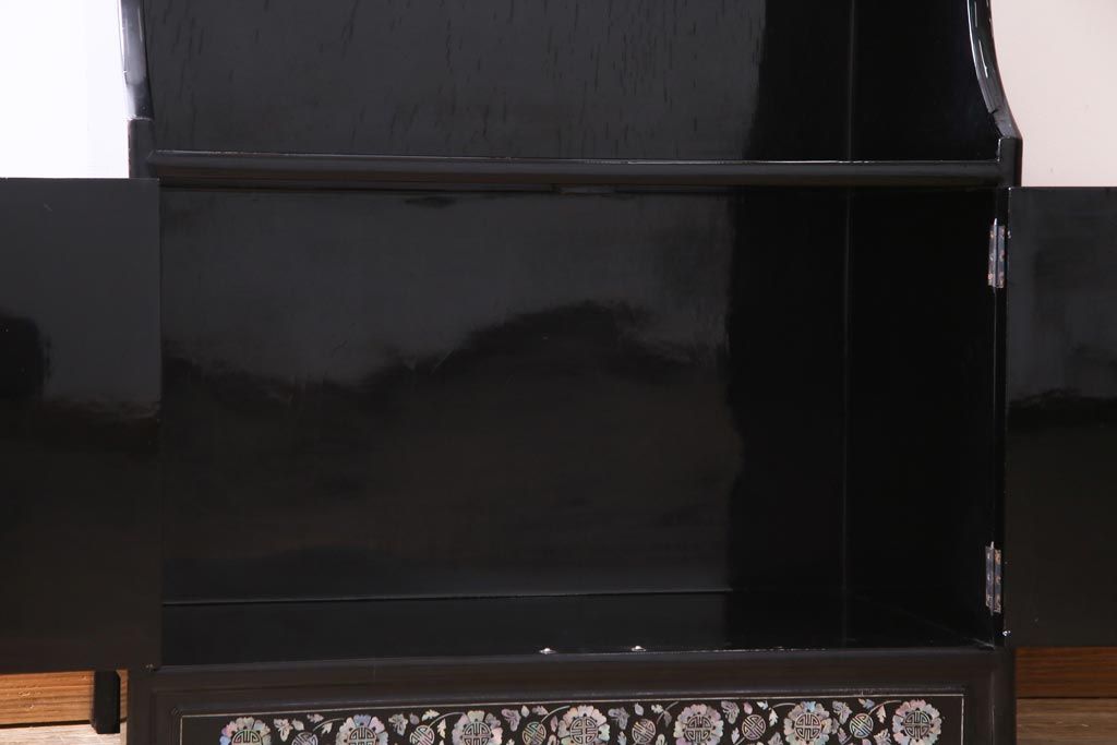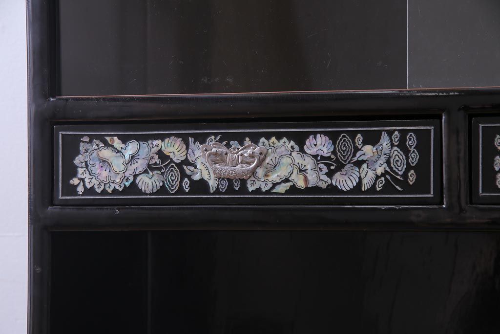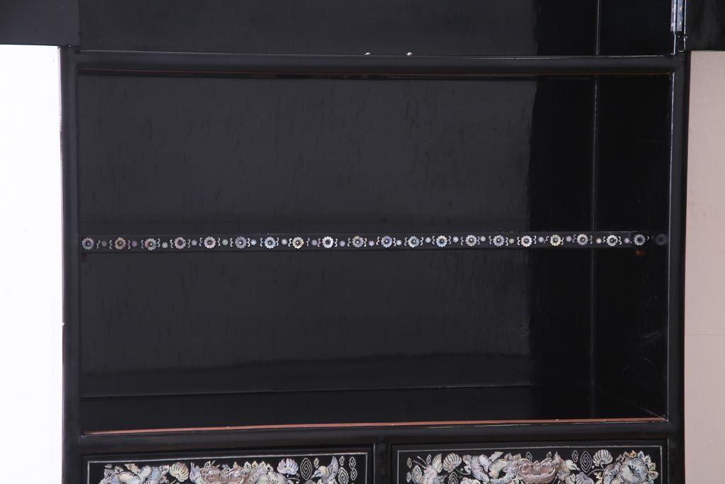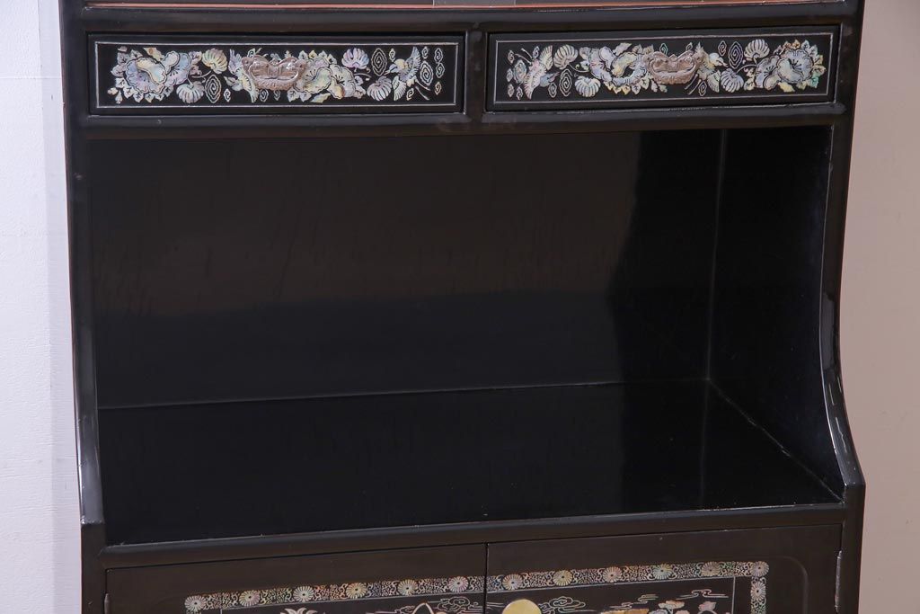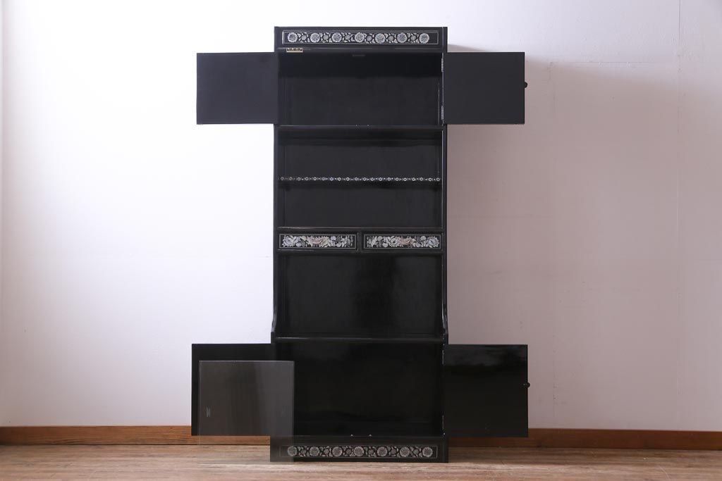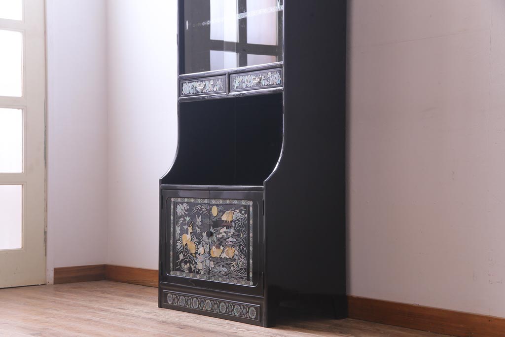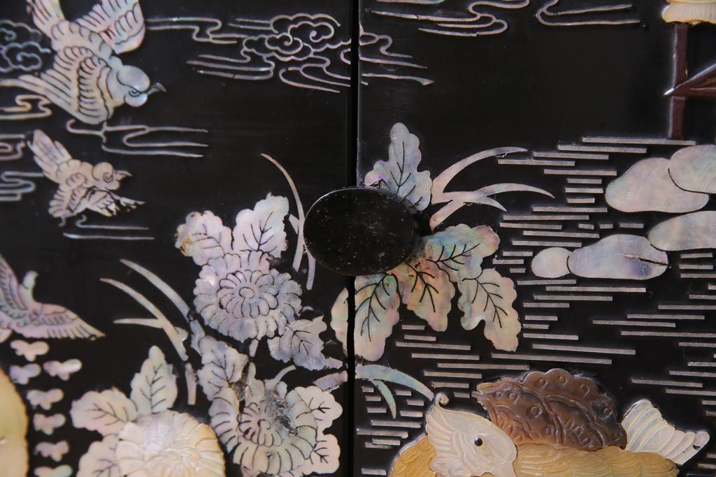 ラフジュ工房> 民芸家具 > 中古 韓国 螺鈿細工 高級品 華やかな意匠が存在感を放つ飾り棚(収納棚)(定価約80万円)
