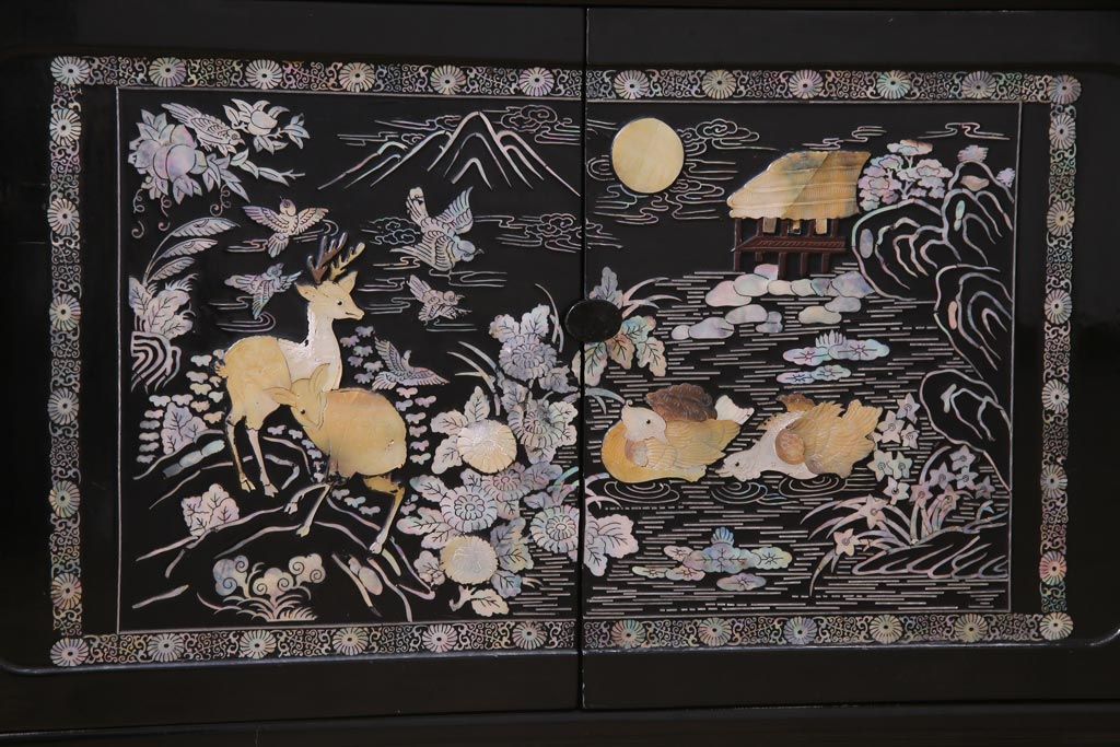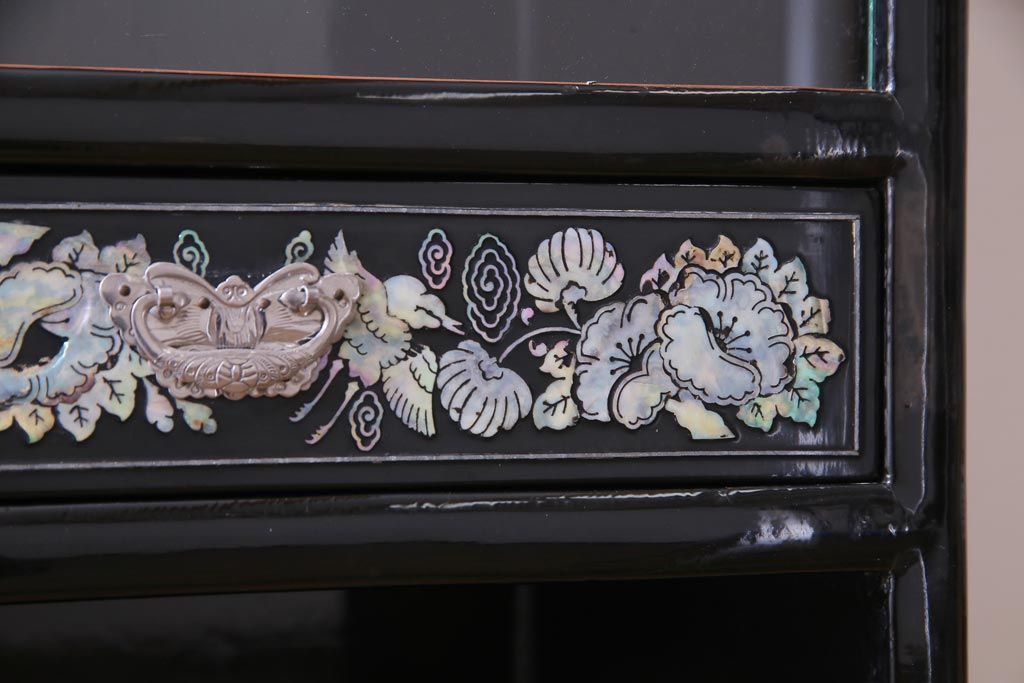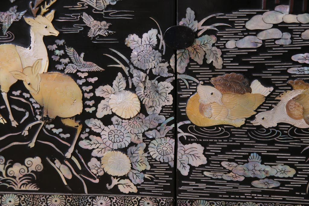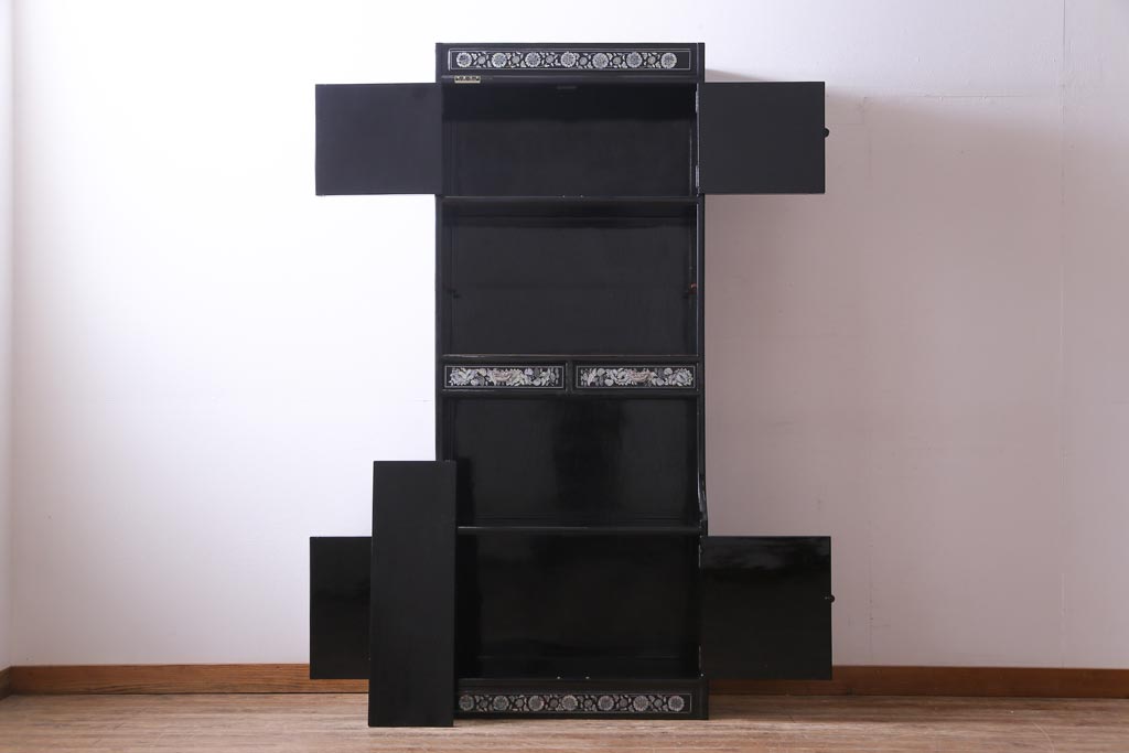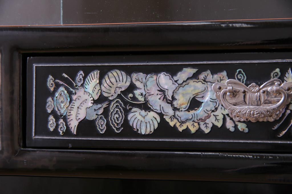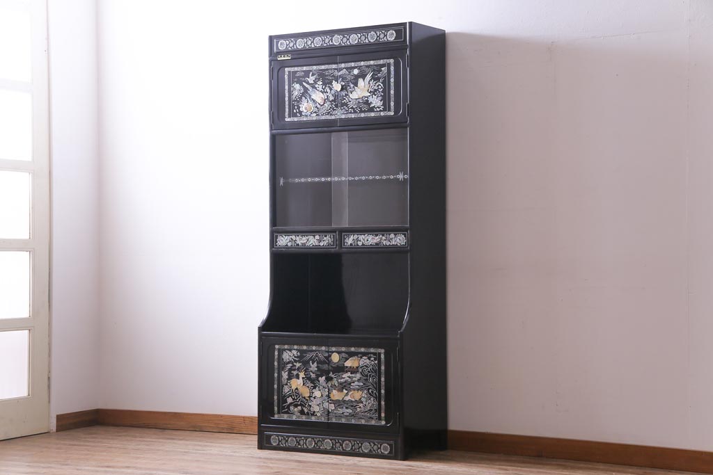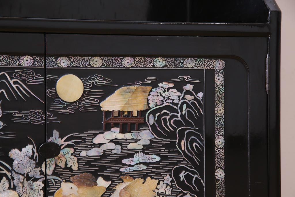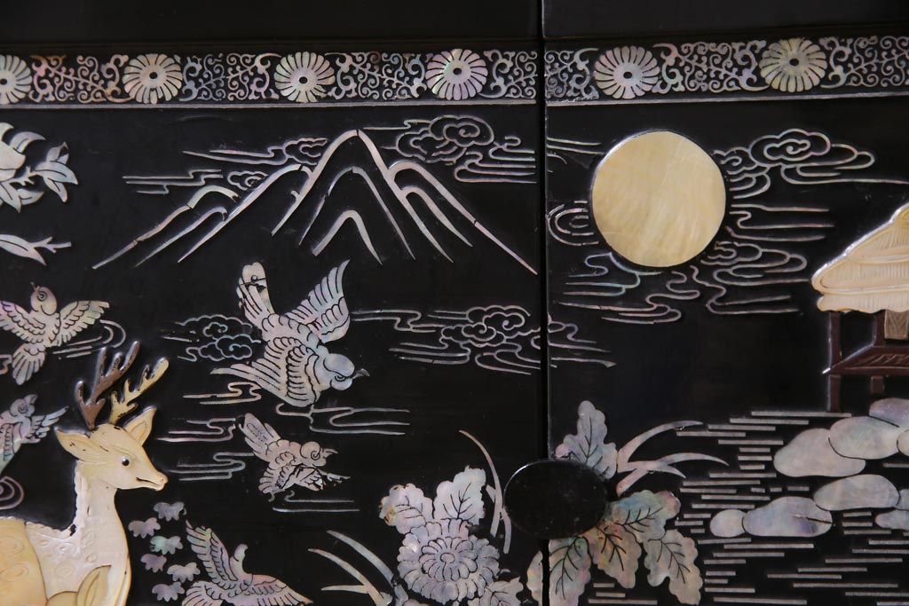 ラフジュ工房> 民芸家具 > 中古 韓国 螺鈿細工 高級品 華やかな意匠が存在感を放つ飾り棚(収納棚)(定価約80万円)