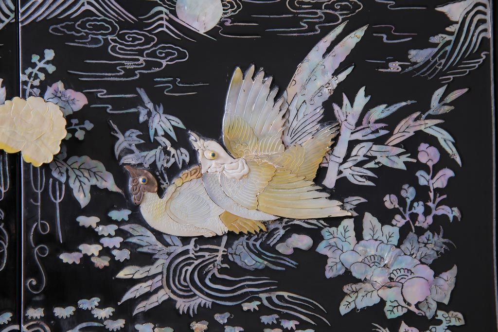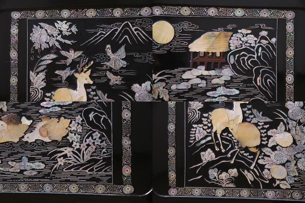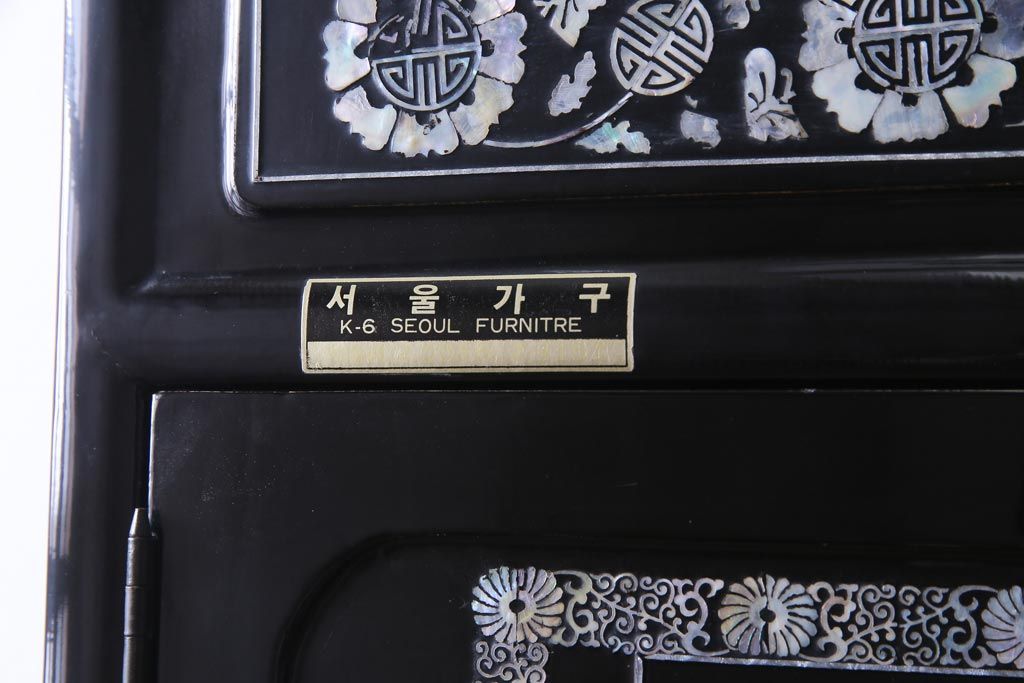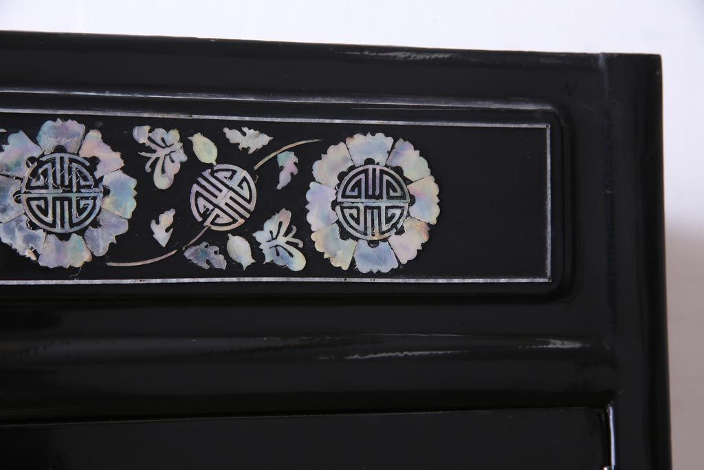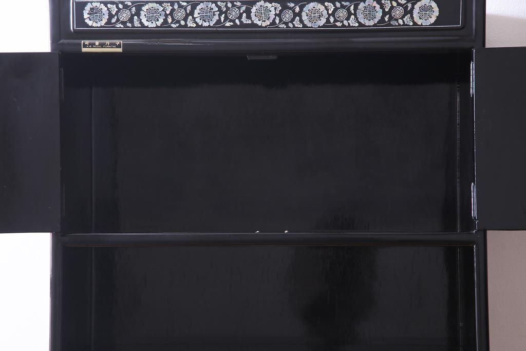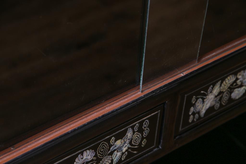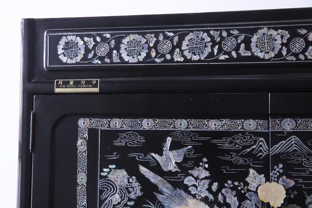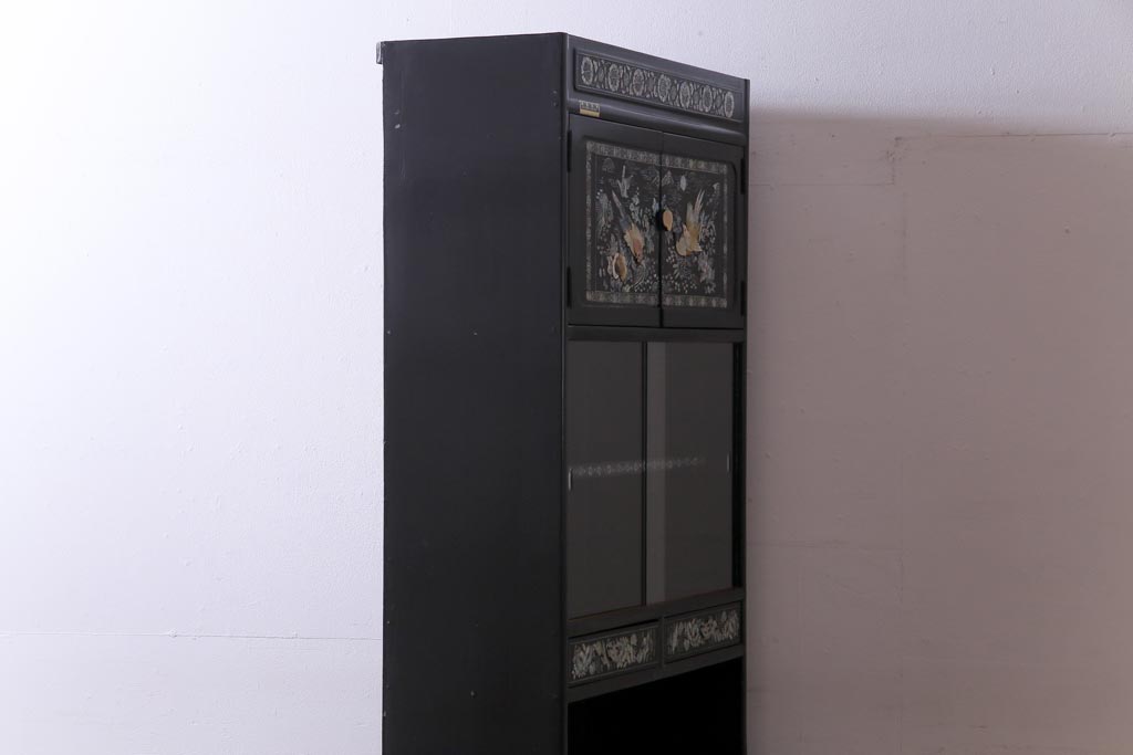 ラフジュ工房> 民芸家具 > 中古 韓国 螺鈿細工 高級品 華やかな意匠が存在感を放つ飾り棚(収納棚)(定価約80万円)