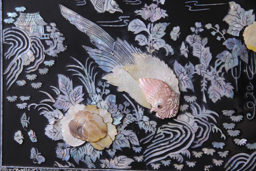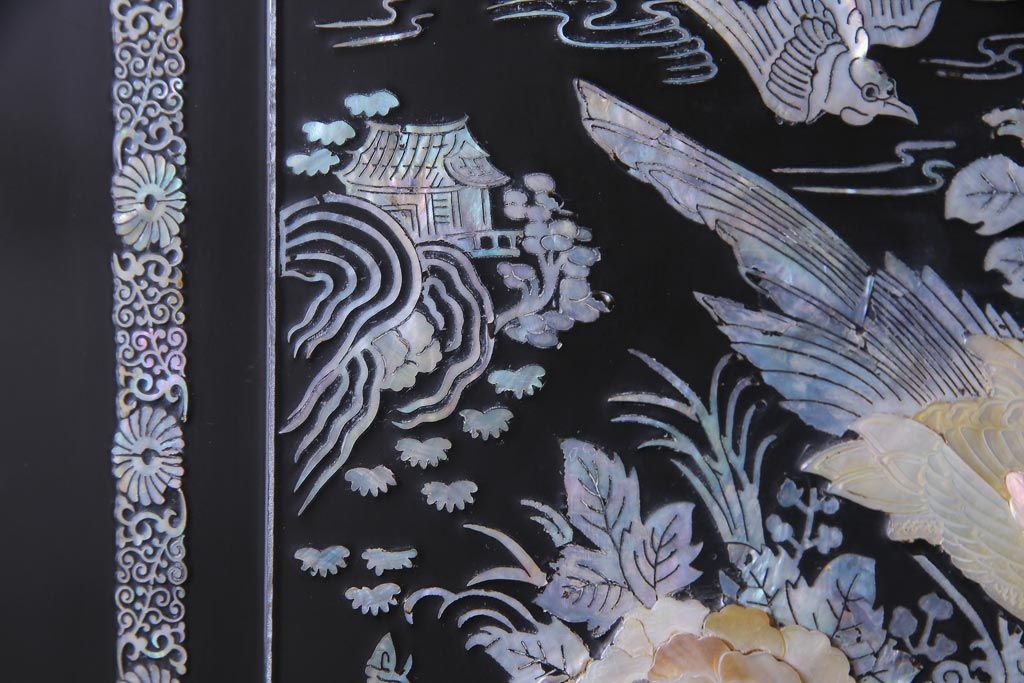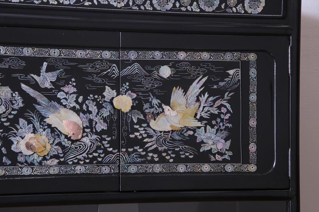中古 韓国 螺鈿細工 高級品 華やかな意匠が存在感を放つ飾り棚(収納棚)(定価約80万円)