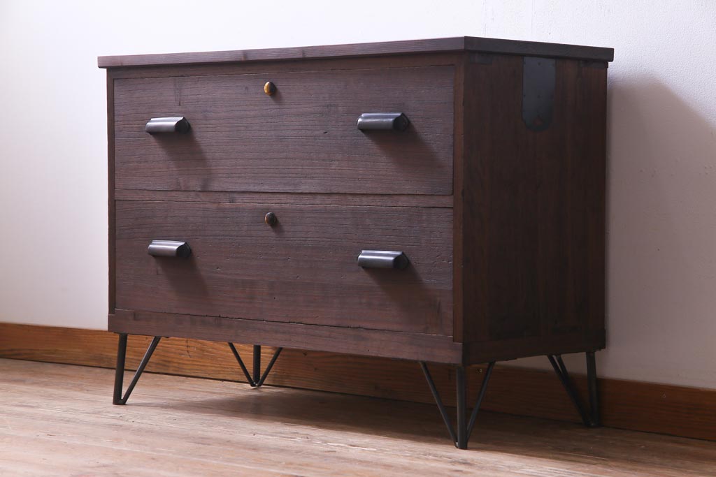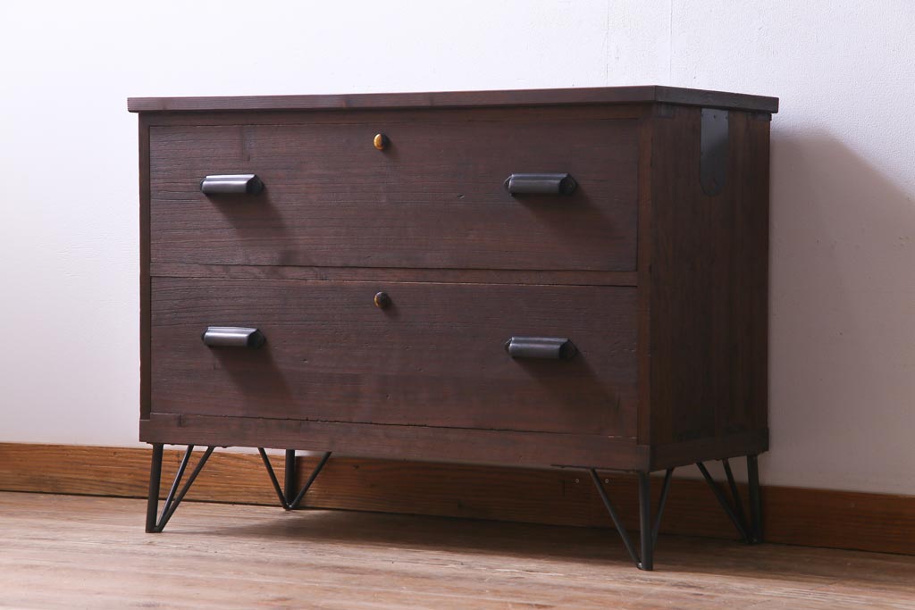ラフジュ工房> 和箪笥 > レトロ家具 和製アンティーク 昭和期 シンプルなデザインが使いやすいレトロな脚付箪笥ローボード(ローチェスト、引き出し、時代箪笥)