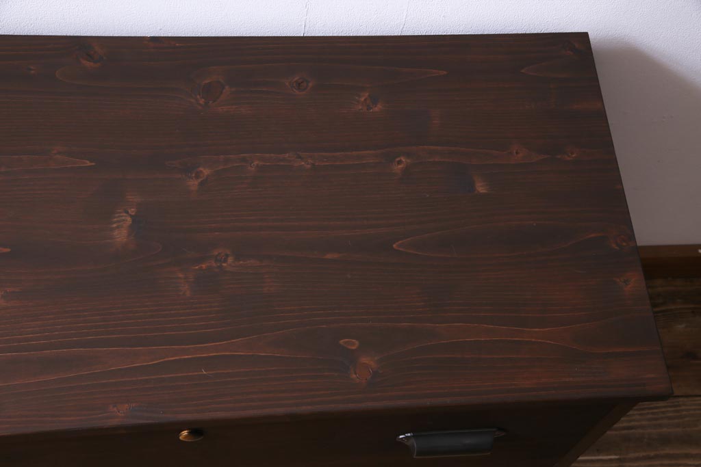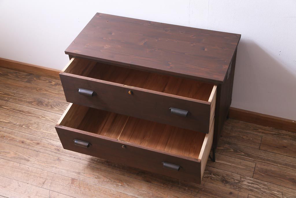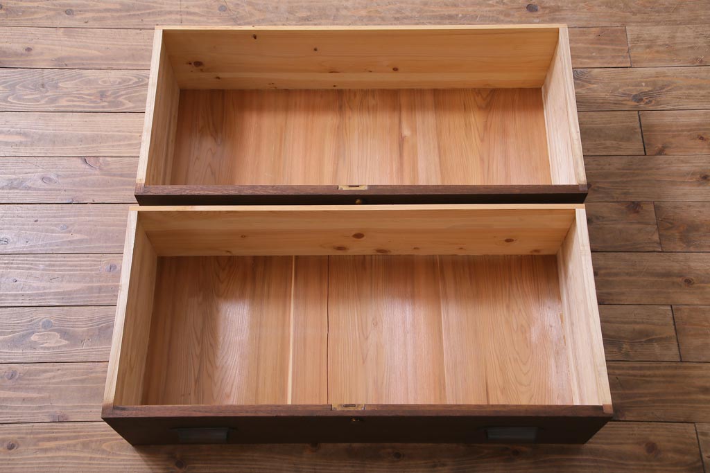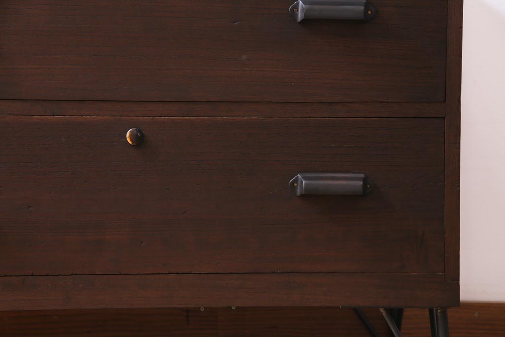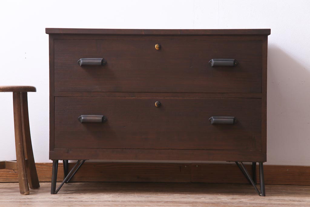 レトロ家具 和製アンティーク 昭和期 シンプルなデザインが使いやすいレトロな脚付箪笥ローボード(ローチェスト、引き出し、時代箪笥)