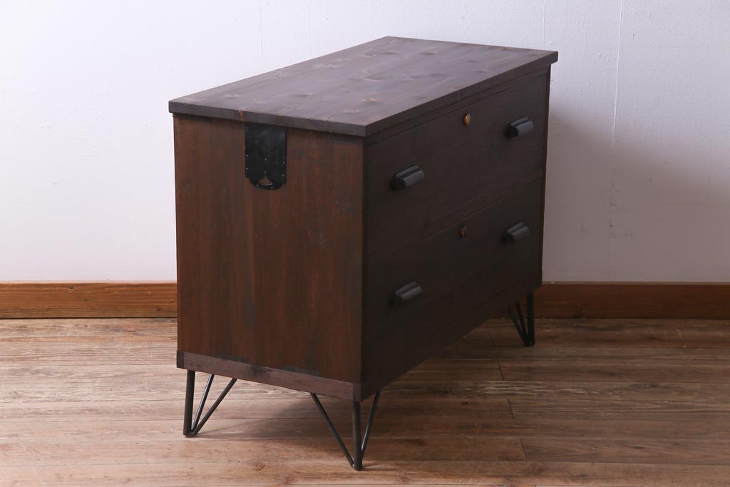 ラフジュ工房> 和箪笥> 衣装箪笥 > レトロ家具 和製アンティーク 昭和期 シンプルなデザインが使いやすいレトロな脚付箪笥ローボード(ローチェスト、引き出し、時代箪笥)