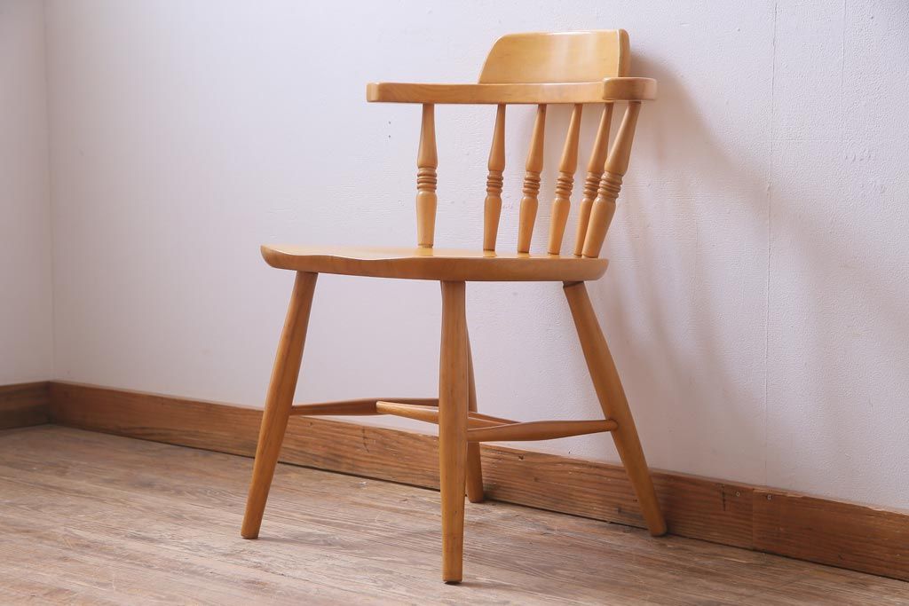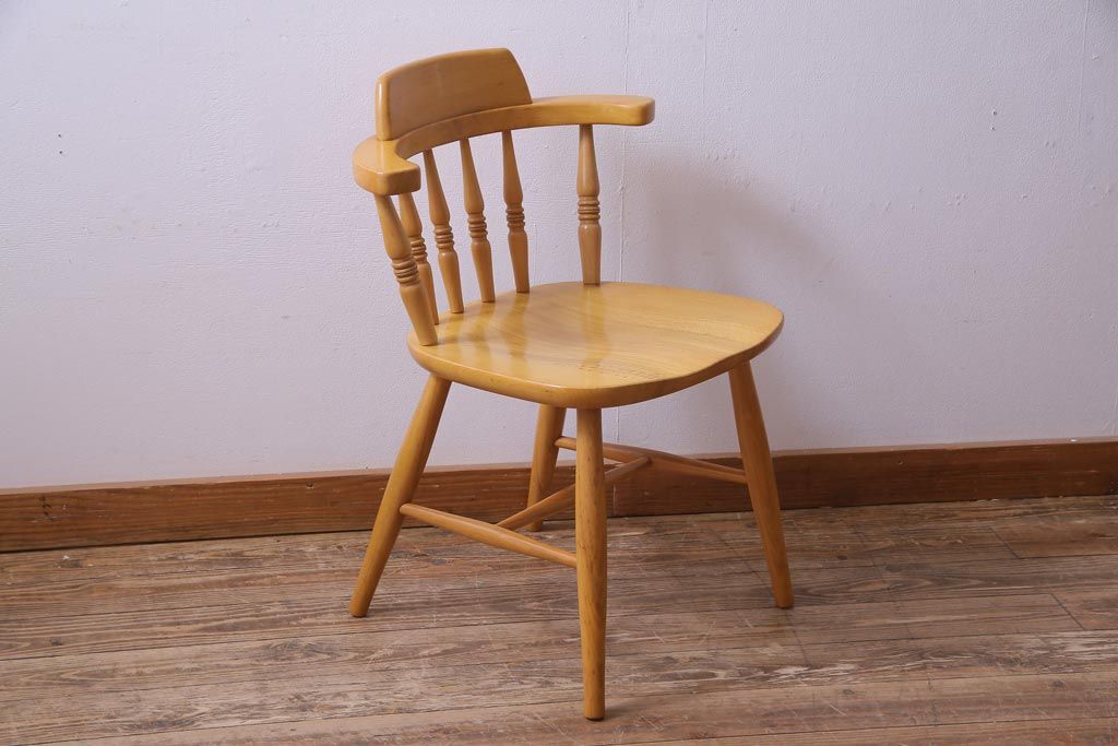 ヴィンテージ家具 ビンテージ 飛騨産業 キツツキ 明るい色味で空間をぱっと明るくしてくれるブナ材アームチェア