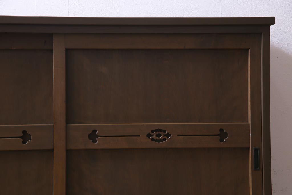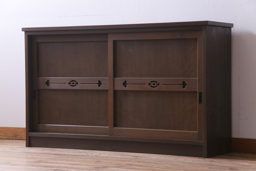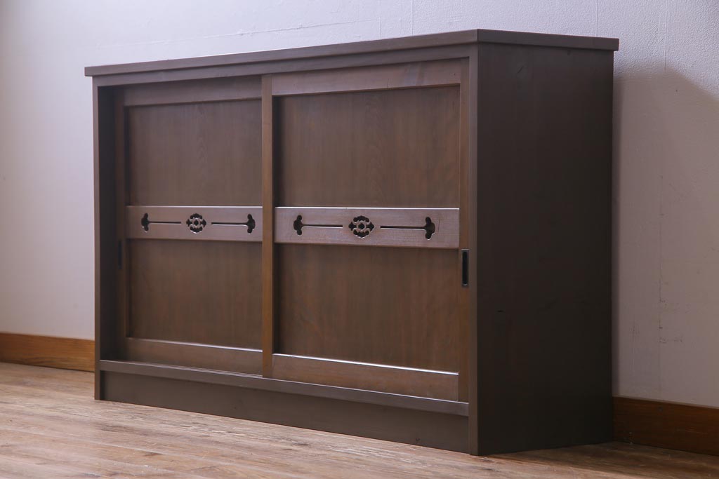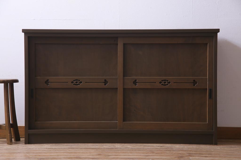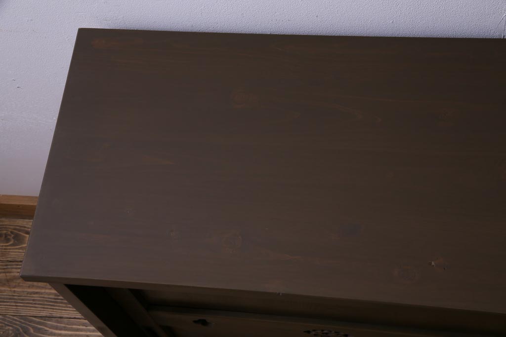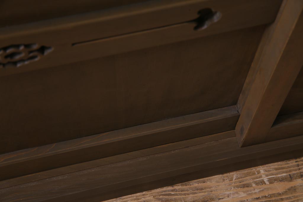 ラフジュ工房オリジナル 扉の意匠が目を惹く古い建具を使ったリメイク戸棚(ローボード、収納棚)