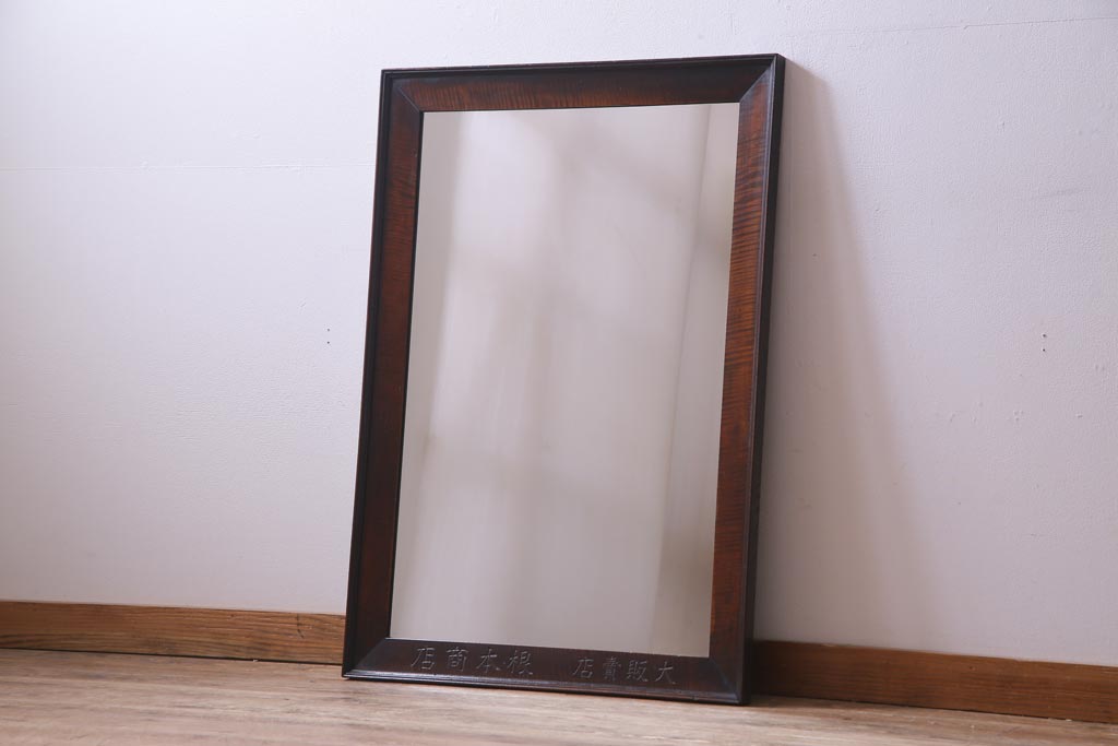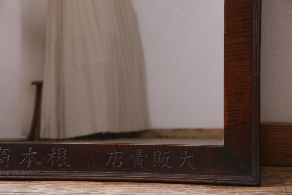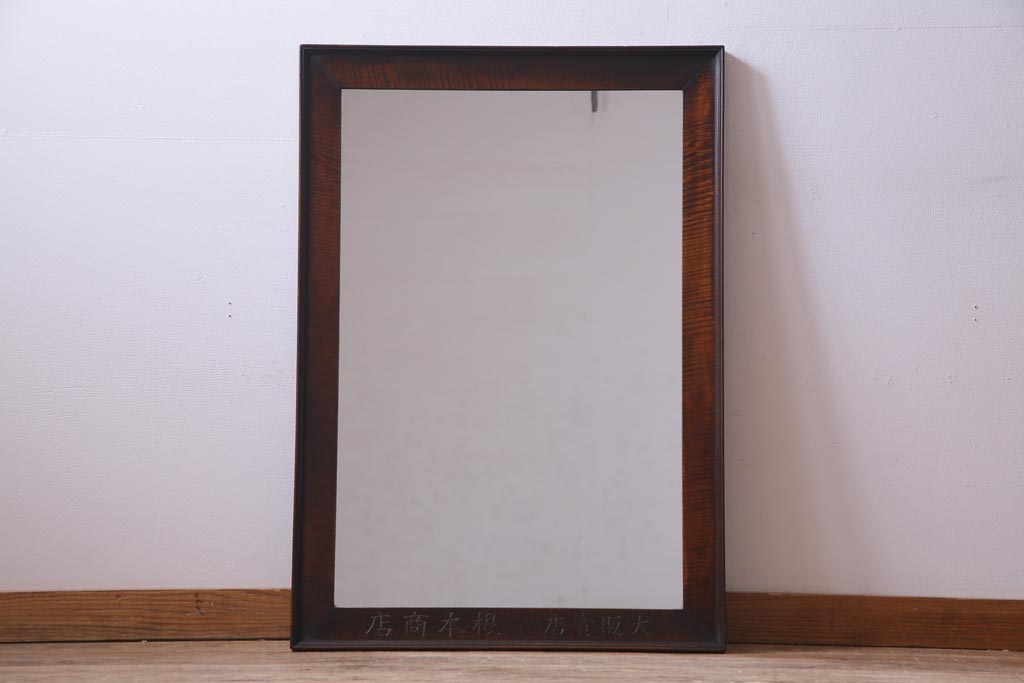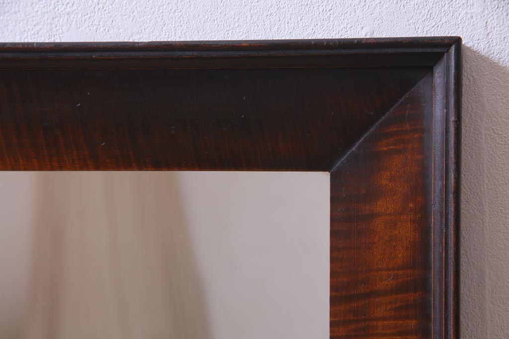 アンティーク雑貨 和製アンティーク 栃の木 縮杢 美しい杢目が目を惹くミラー(鏡)
