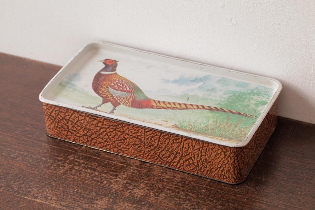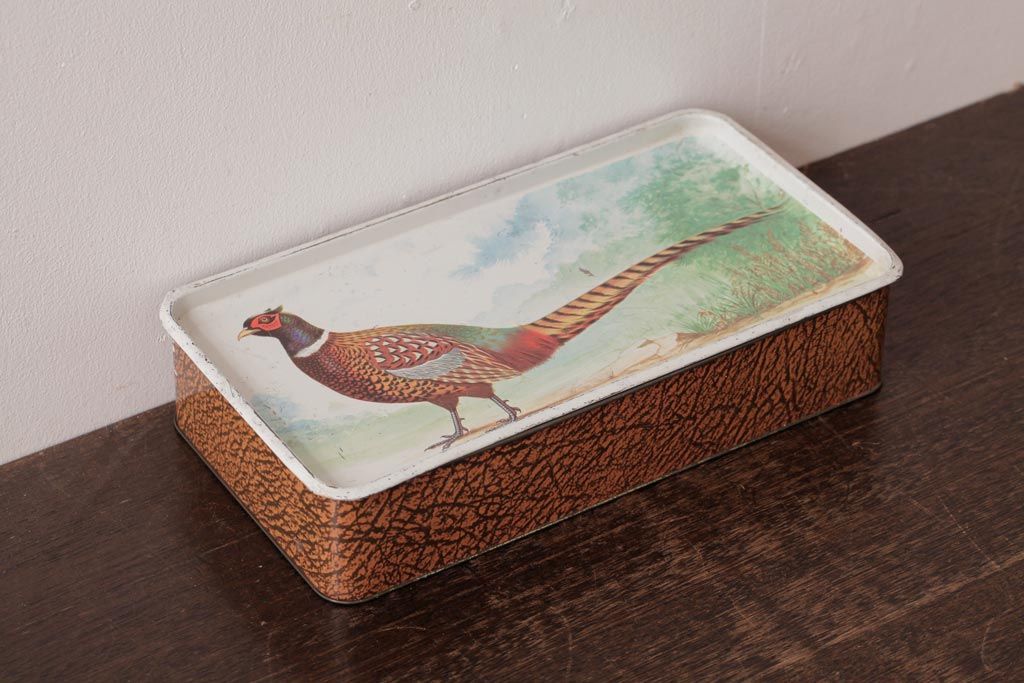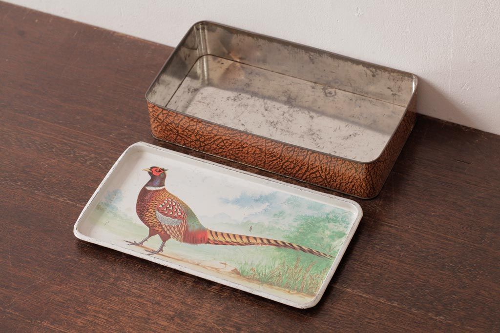 アンティーク雑貨 イギリスビンテージ Cadbury(キャドバリー) キジの絵のティン缶(ブリキ缶)