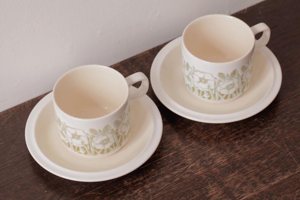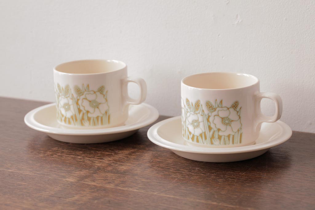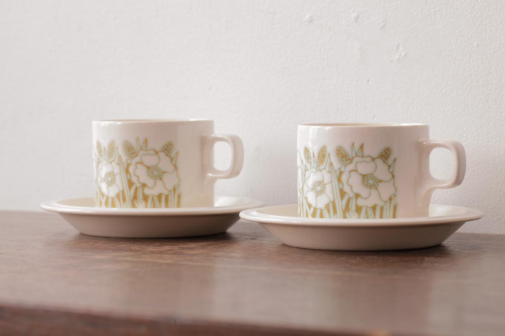 イギリスビンテージ Hornsea(ホーンジー) FLEUR(フルール) 淡い色合いが優しげなカップ&ソーサー2客セット(コーヒーカップ)(1)