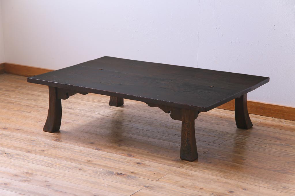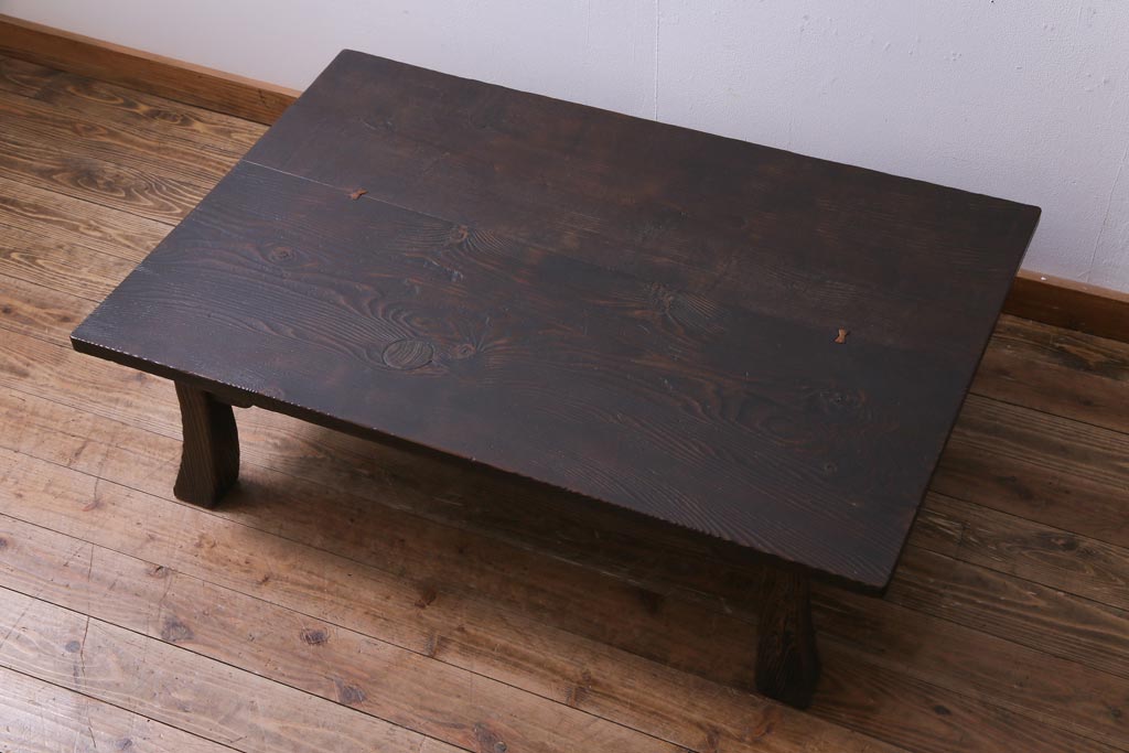 昭和初期 高級杉材 浮造り仕上げの民芸座卓(ローテーブル、センターテーブル)