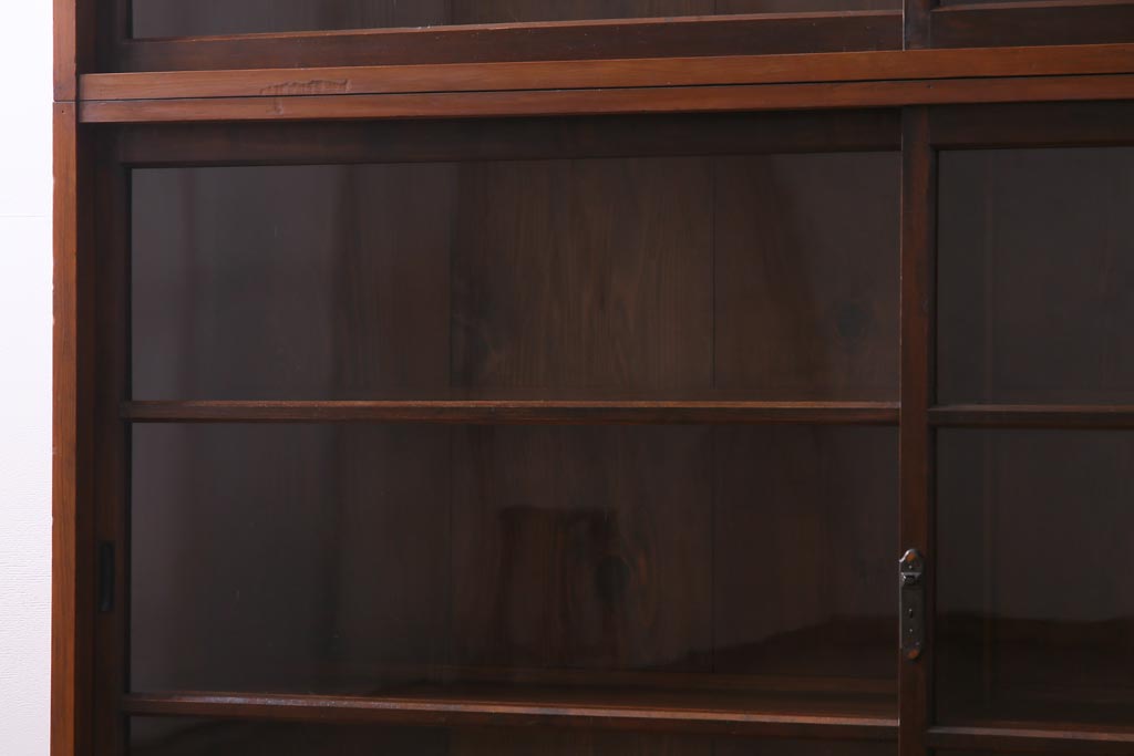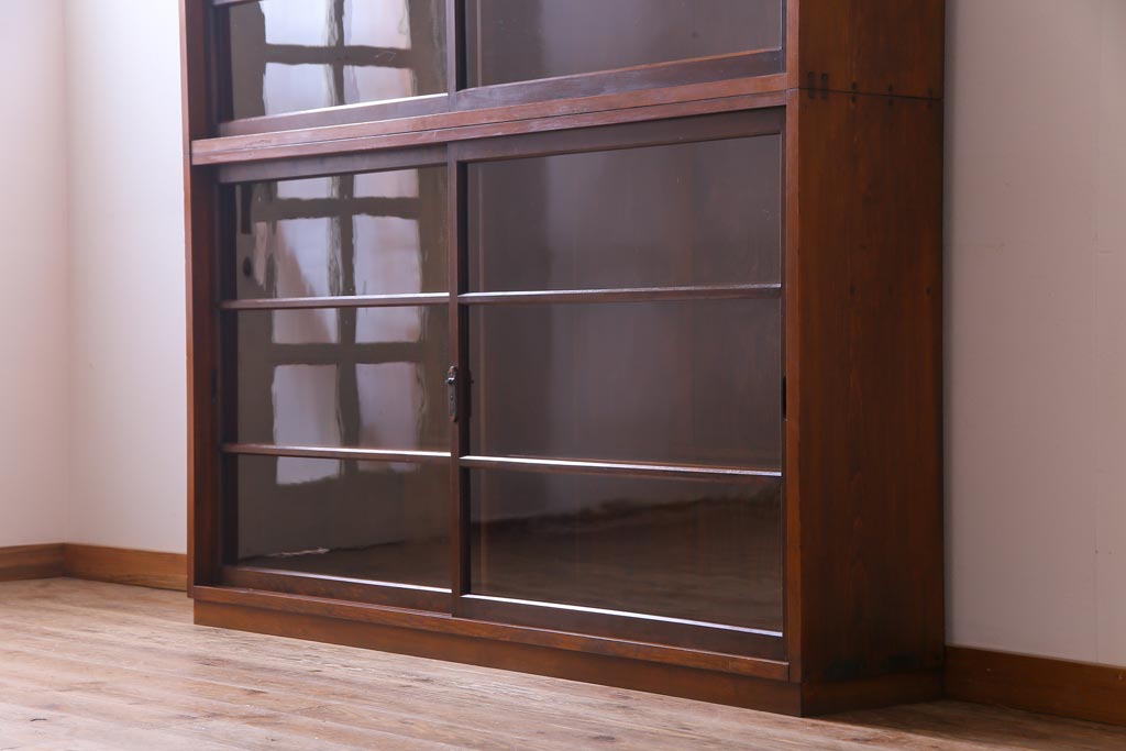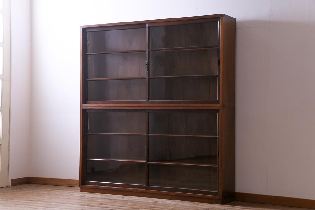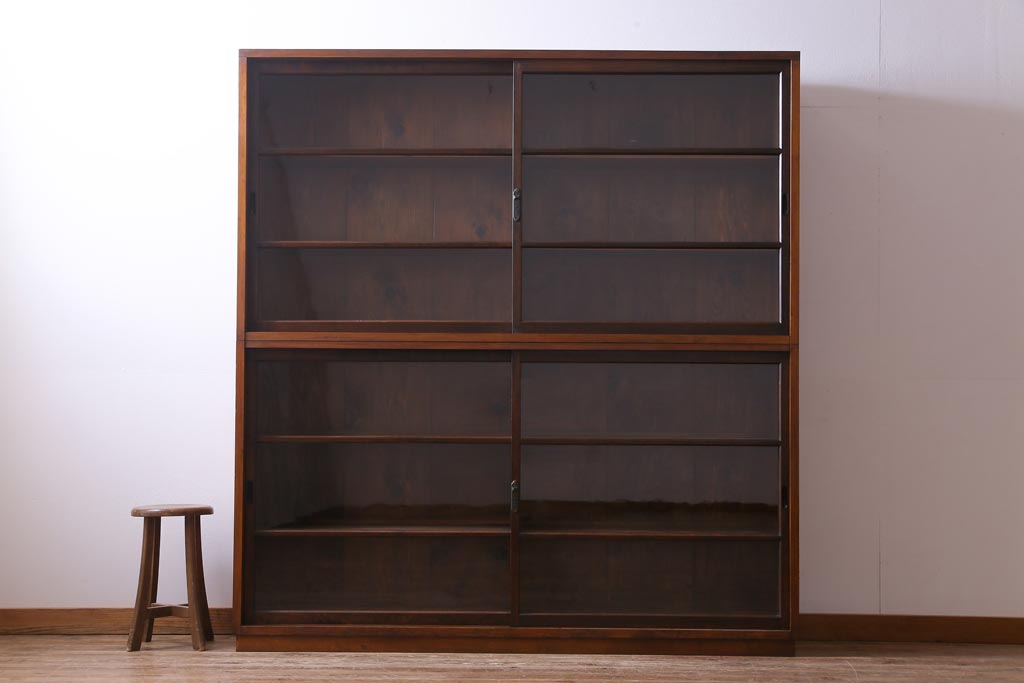 アンティーク家具 大正昭和期 大ぶりな2段重ね収納棚(飾り棚、ガラス戸棚、本箱)