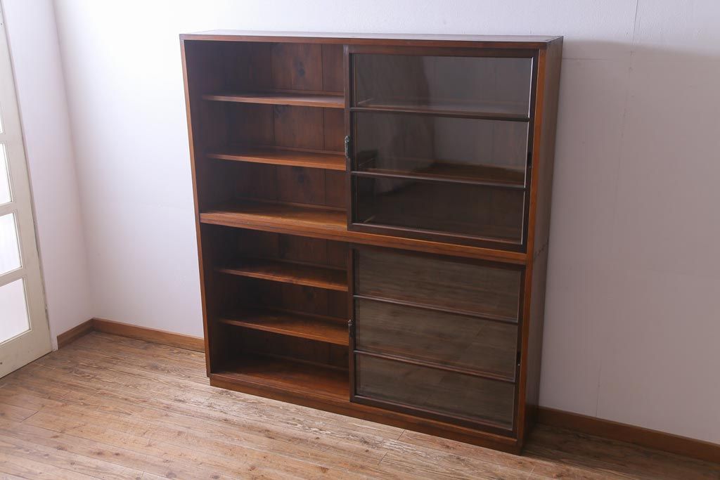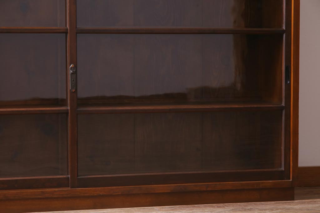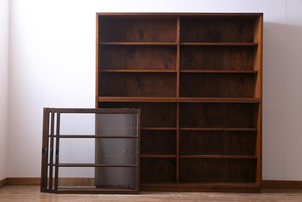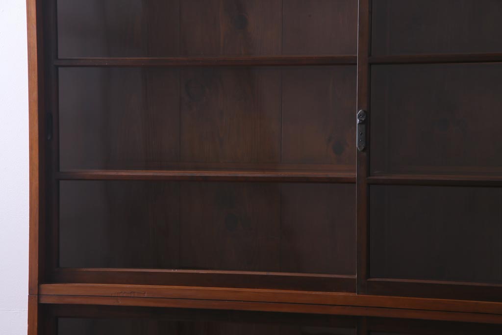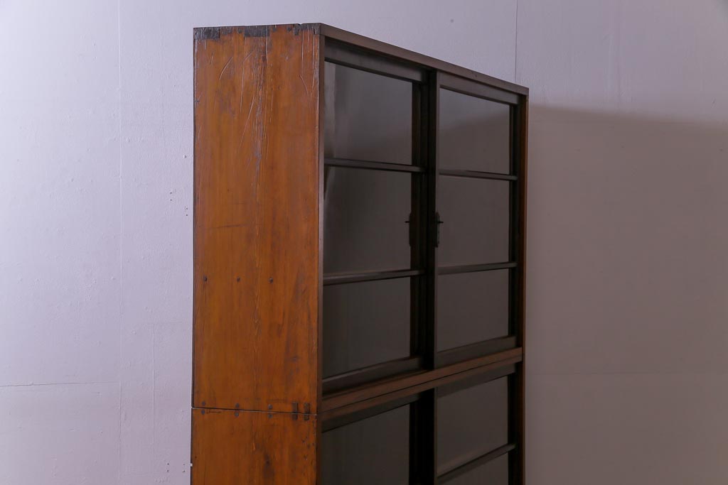 アンティーク家具 大正昭和期 大ぶりな2段重ね収納棚(飾り棚、ガラス戸棚、本箱)
