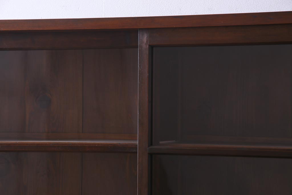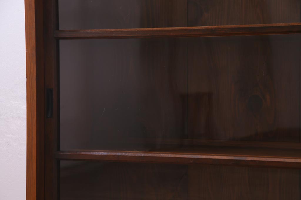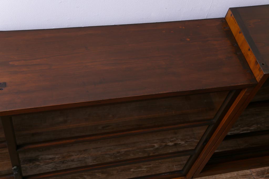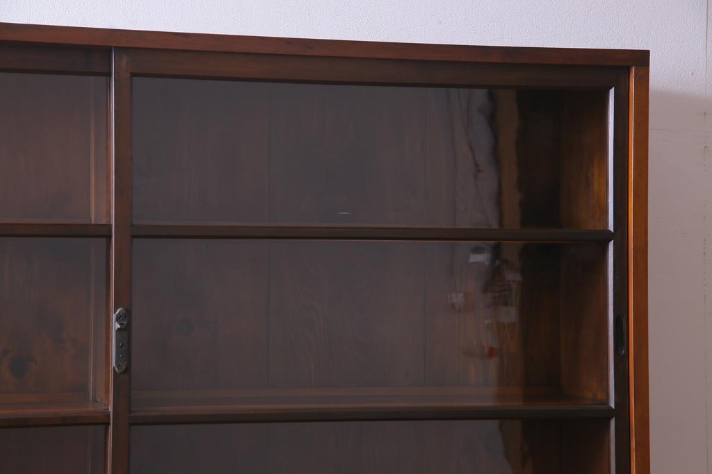 ラフジュ工房> キャビネット・戸棚> 食器棚・カップボード > アンティーク家具 大正昭和期 大ぶりな2段重ね収納棚(飾り棚、ガラス戸棚、本箱)