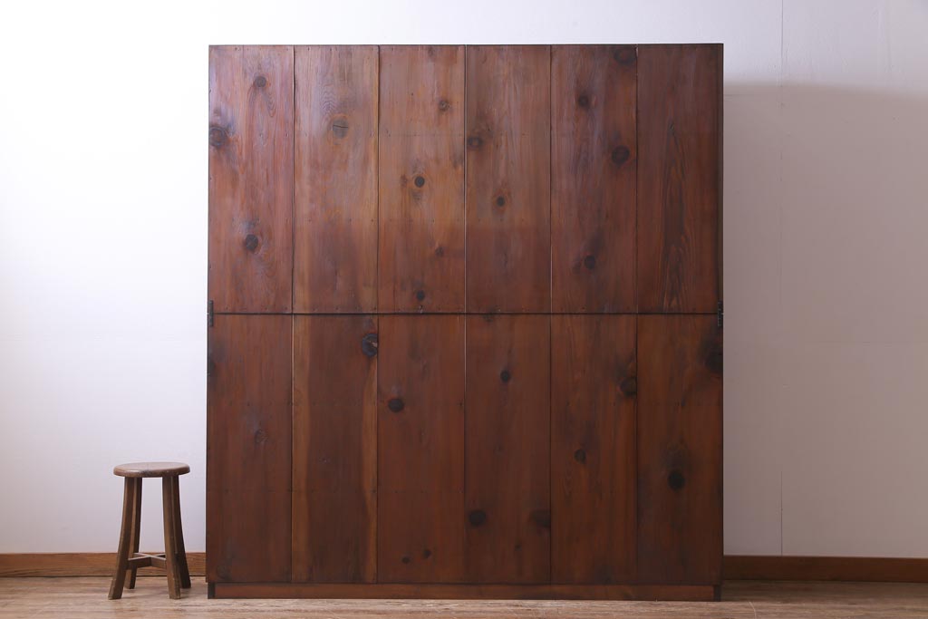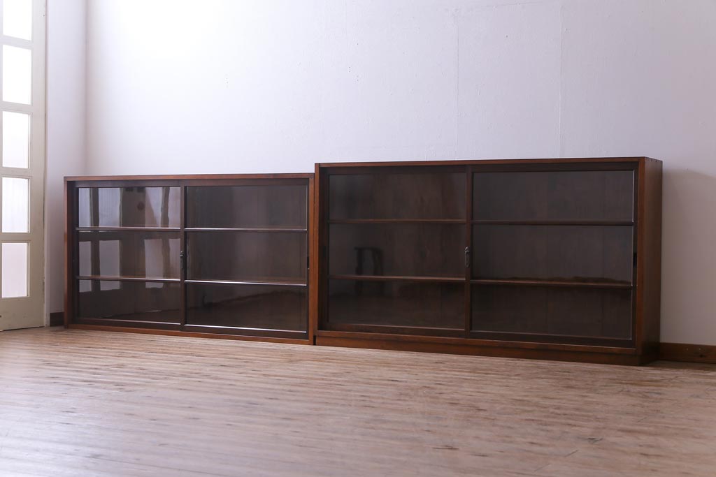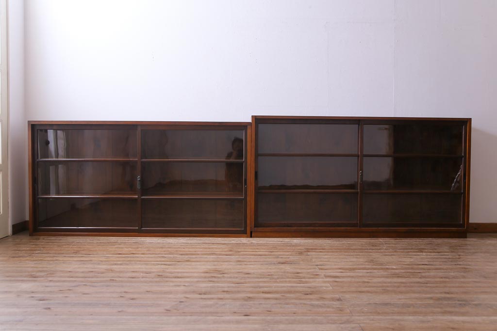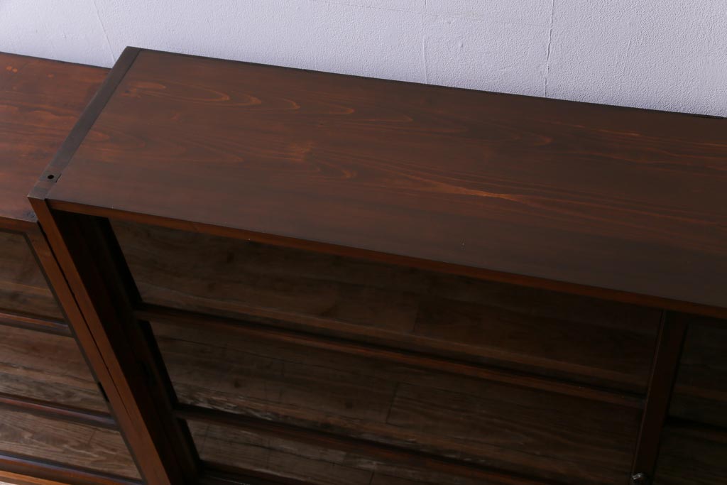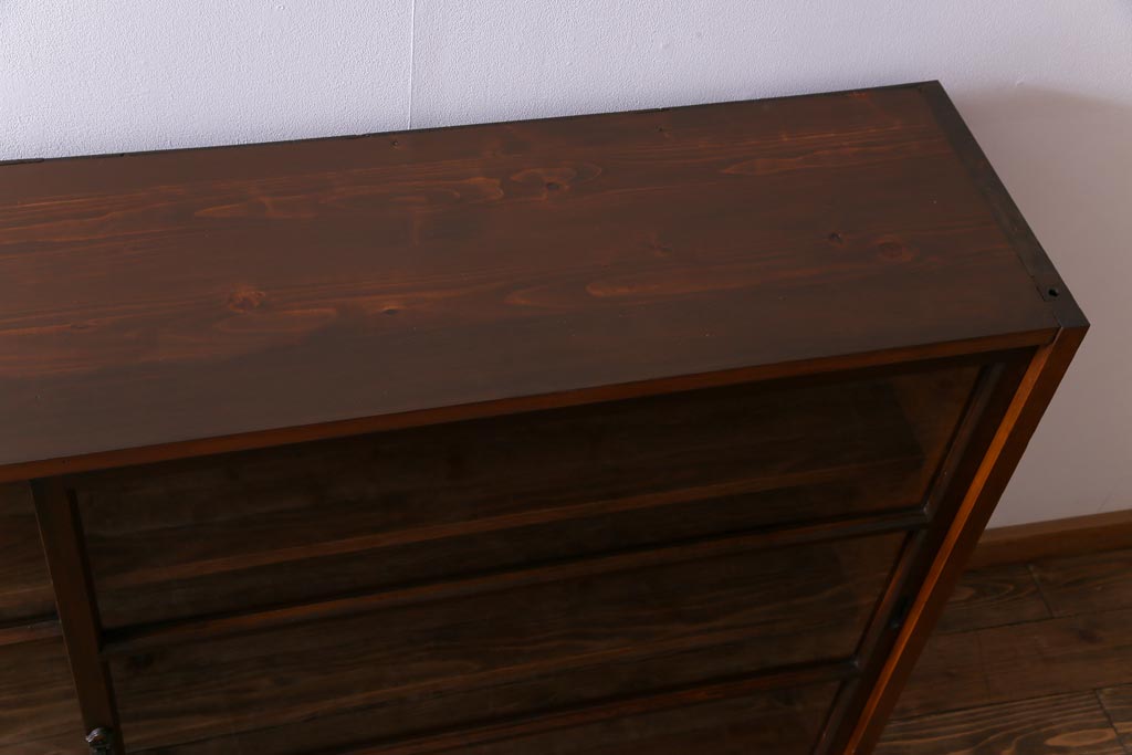 ラフジュ工房> キャビネット・戸棚> 食器棚・カップボード > アンティーク家具 大正昭和期 大ぶりな2段重ね収納棚(飾り棚、ガラス戸棚、本箱)