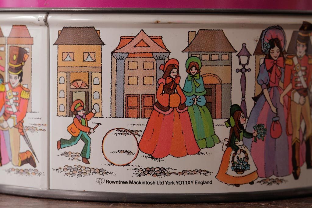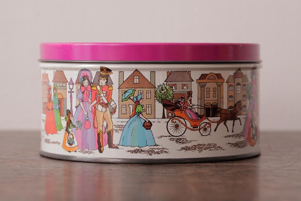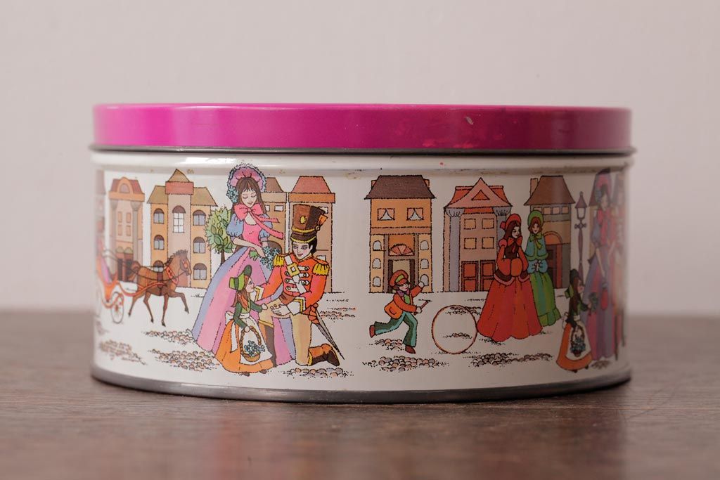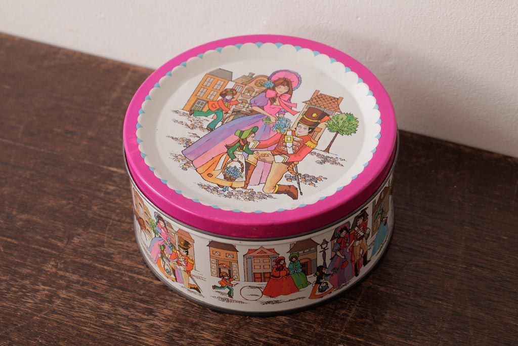 アンティーク雑貨 イギリスビンテージ ビビットな色合いが可愛らしいティン缶(ブリキ缶、ビスケット缶)