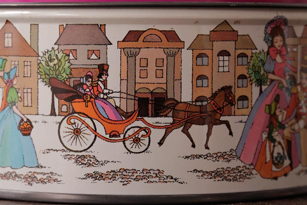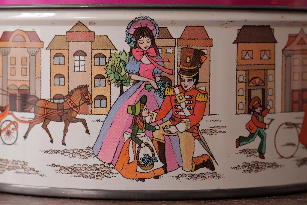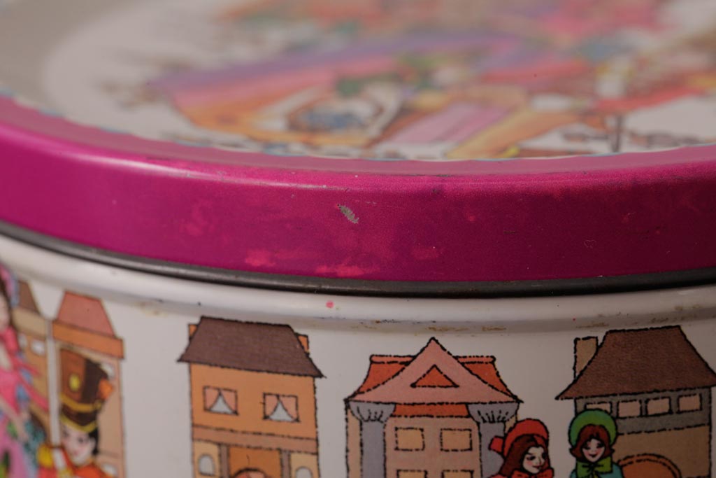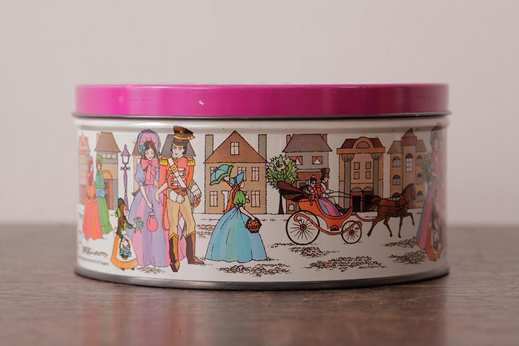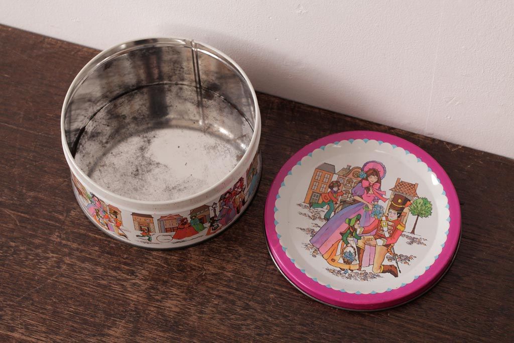 アンティーク雑貨 イギリスビンテージ ビビットな色合いが可愛らしいティン缶(ブリキ缶、ビスケット缶)