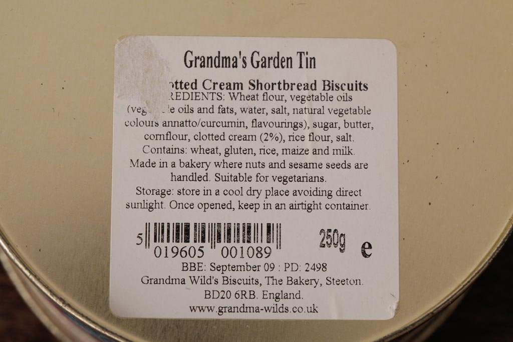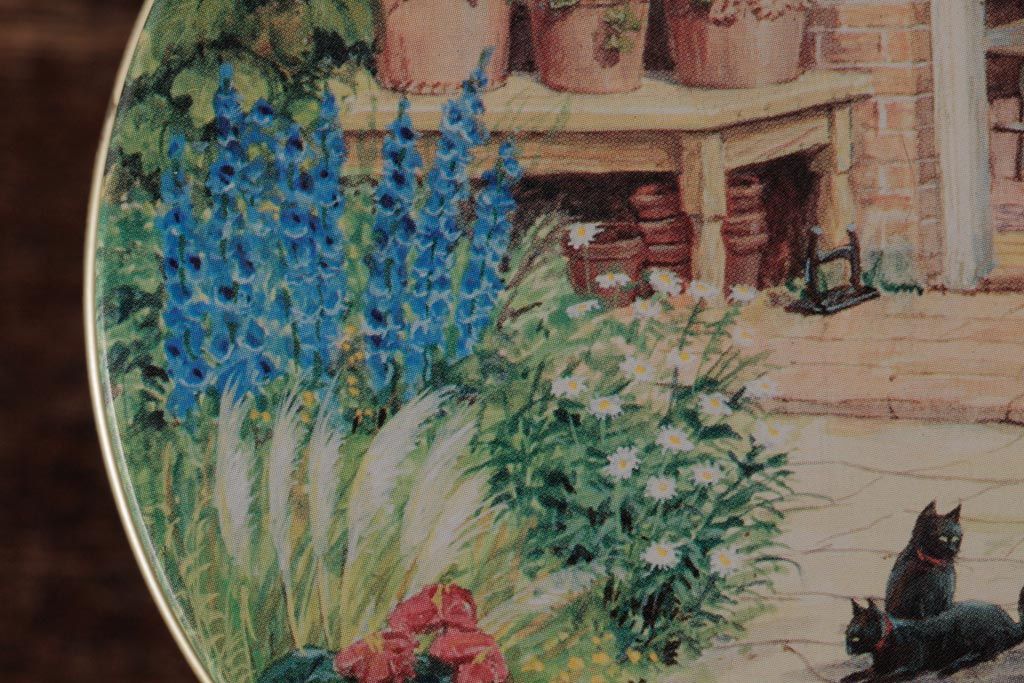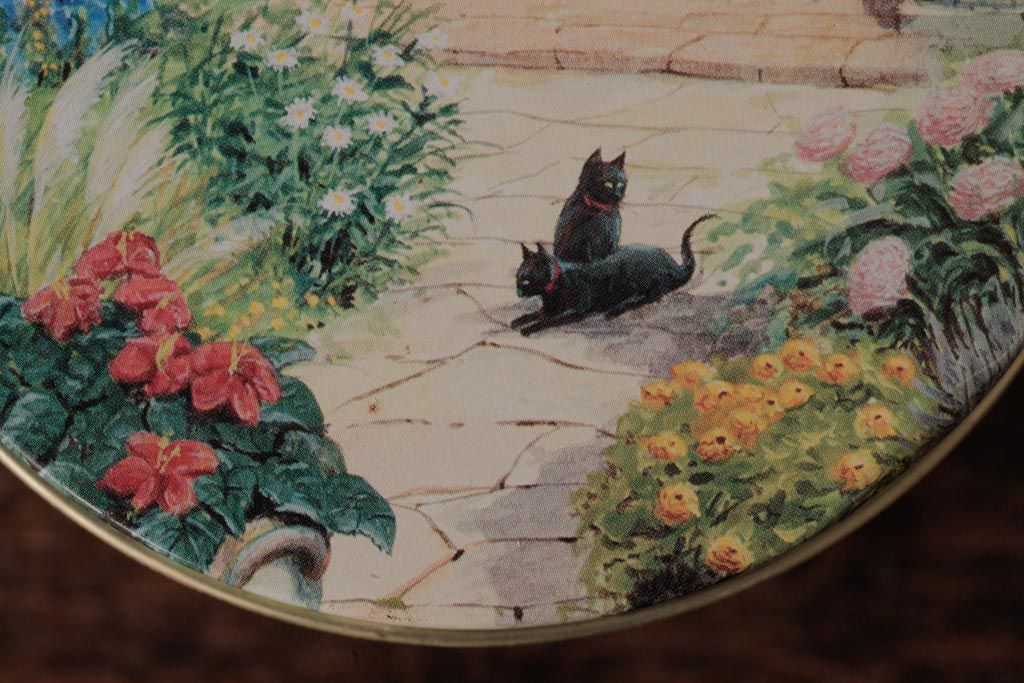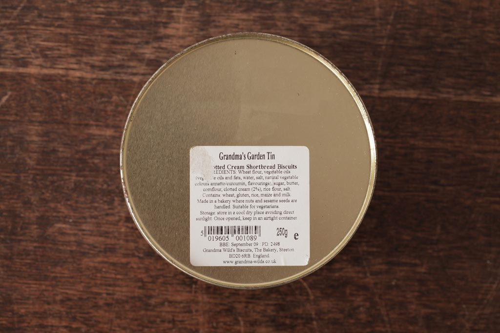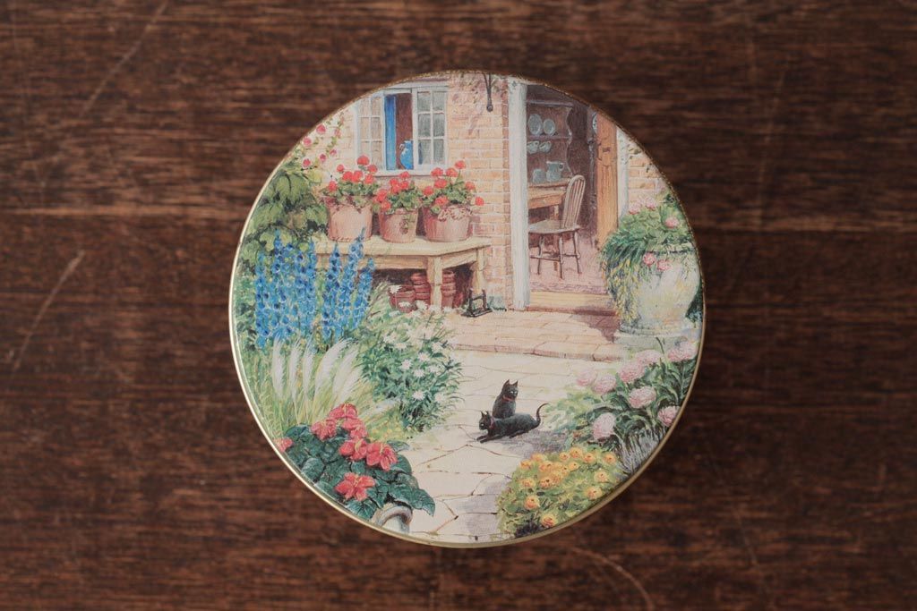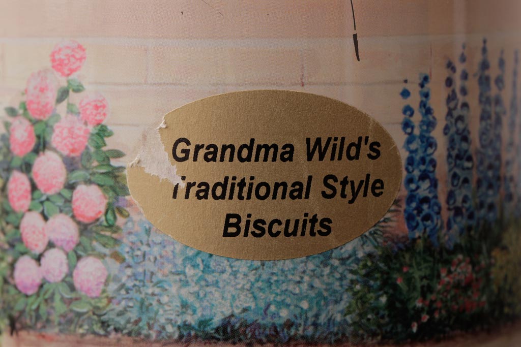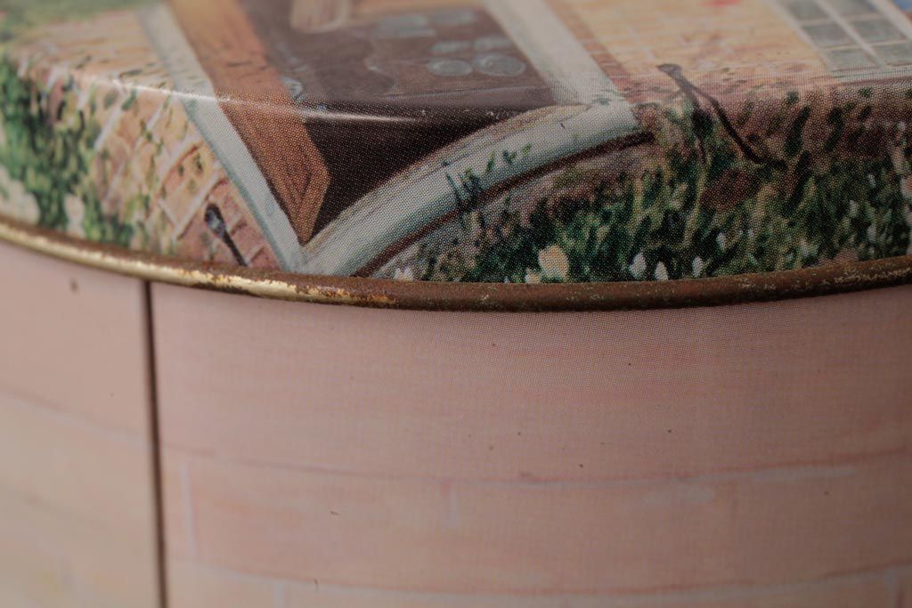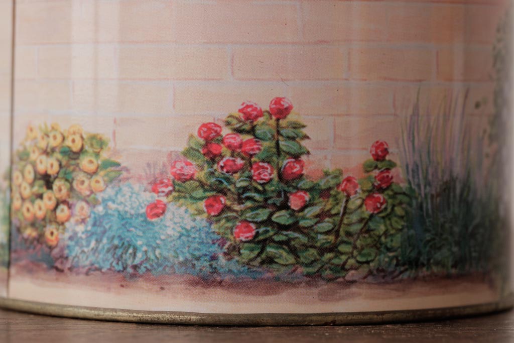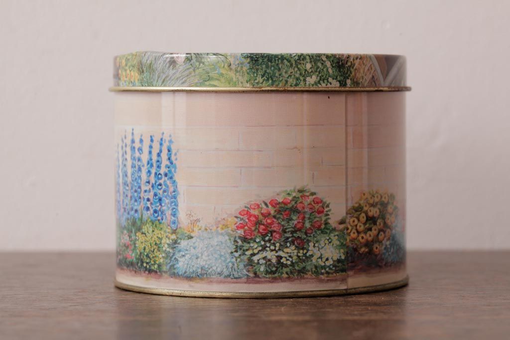 アンティーク雑貨 イギリスビンテージ Grandma Wild's(グランマ・ワイルド) 淡い色合いが愛らしいティン缶(ブリキ缶、ビスケット缶)