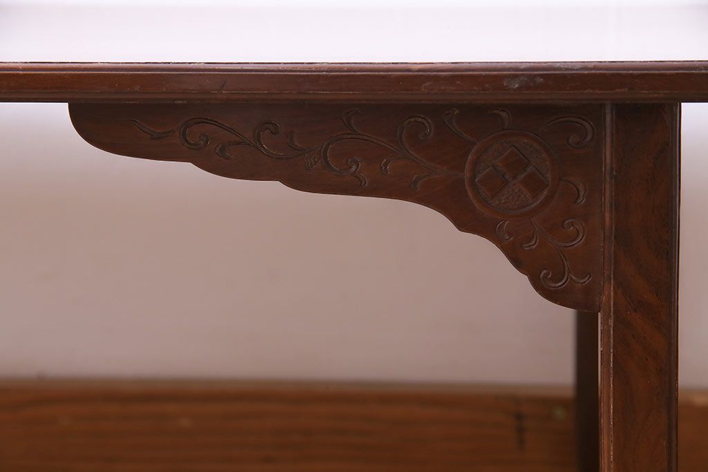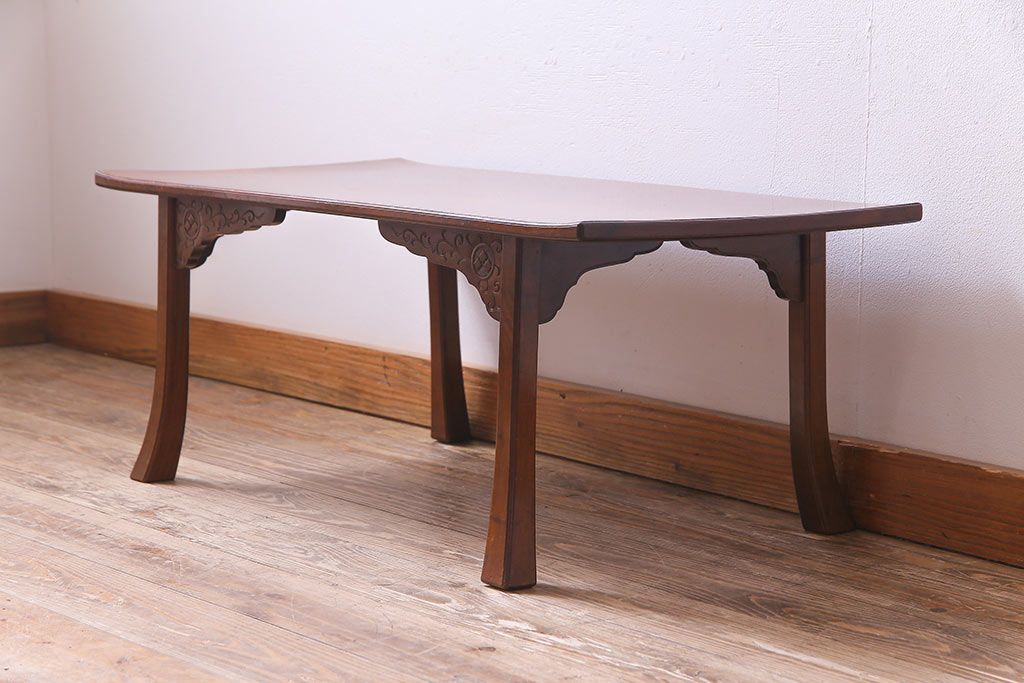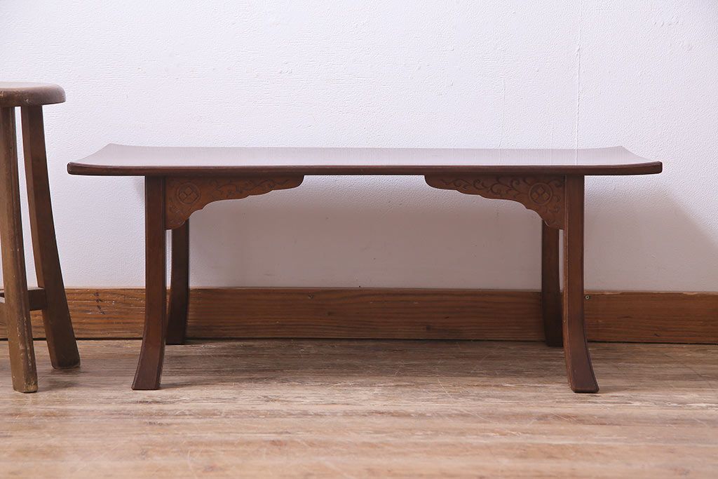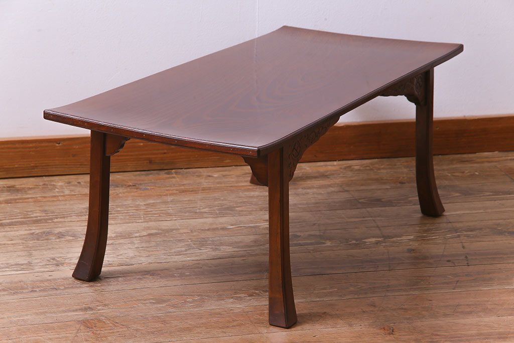 アンティーク雑貨 指物家具 桑材 柔らかな印象の杢目と意匠が品のある文机(飾り台、花台、ローテーブル)
