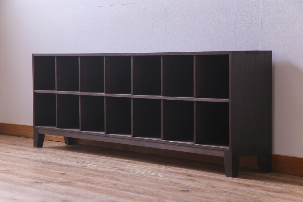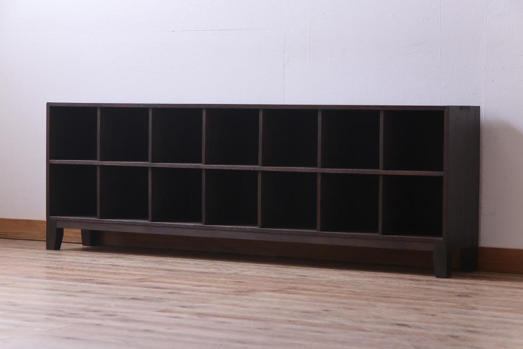 和製アンティーク 学校ロッカーをリメイクした脚付きマス目棚(ロッカー、収納棚、下駄箱、本棚)です。