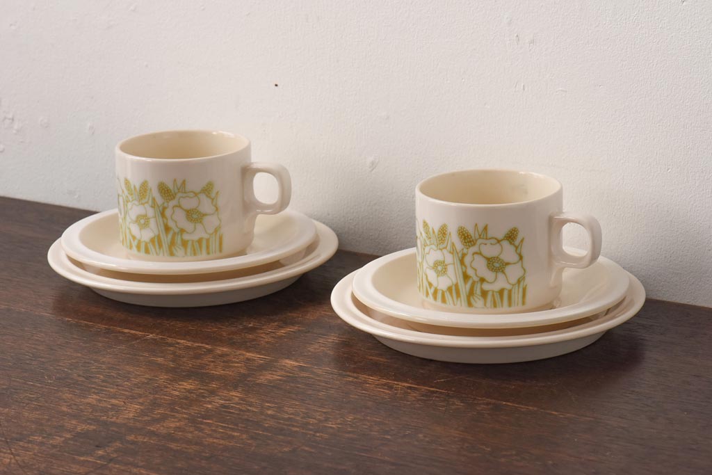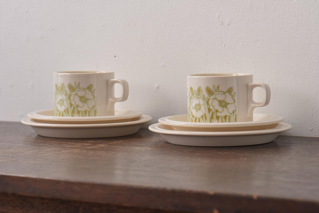 イギリスビンテージ Hornsea(ホーンジー) FLEUR(フルール) トリオ2客セット(カップ&ソーサー、プレート)(1)