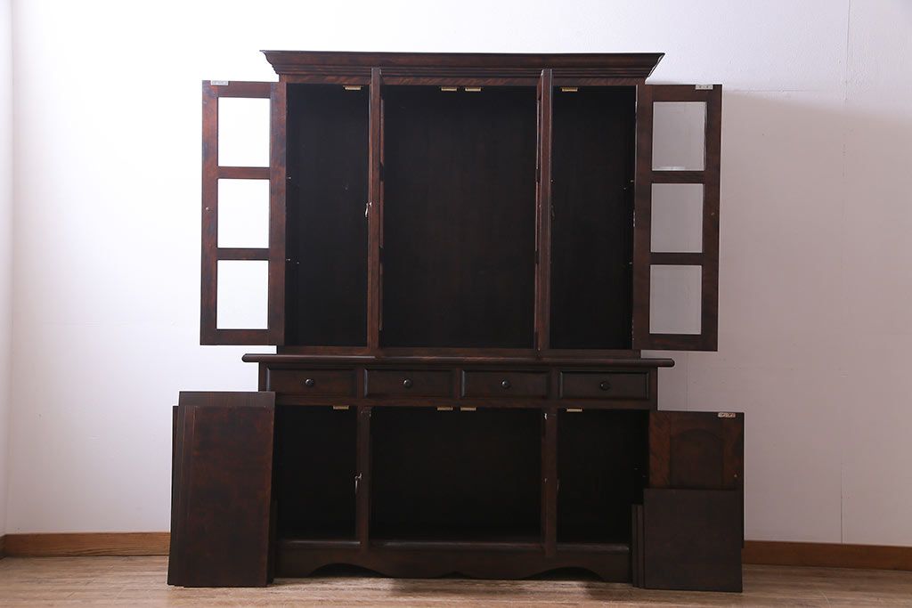 中古 九州民芸家具 上品さと高級感あふれる佇まいが魅力の食器棚(定価約80万円)(収納棚、カップボード)