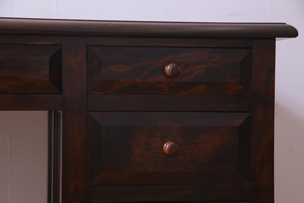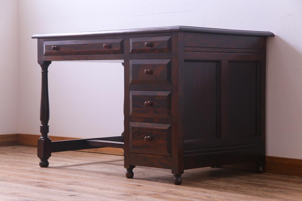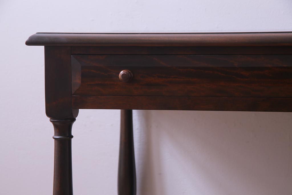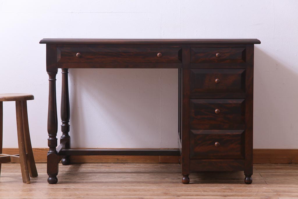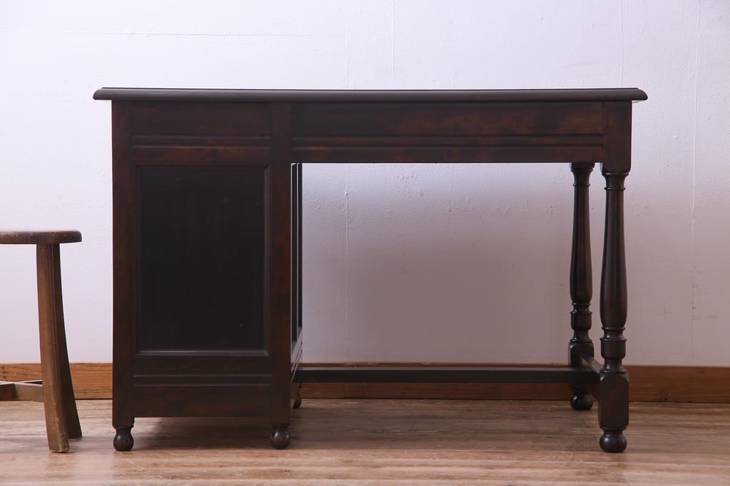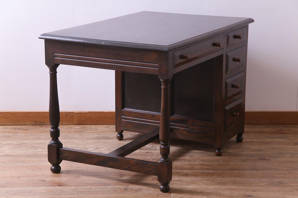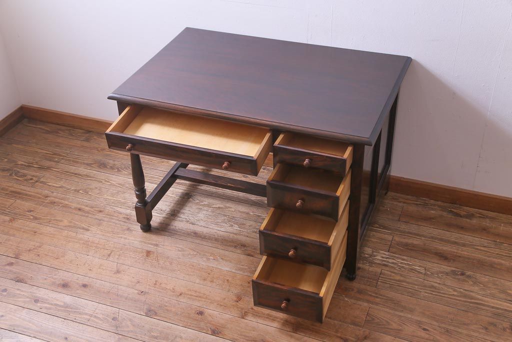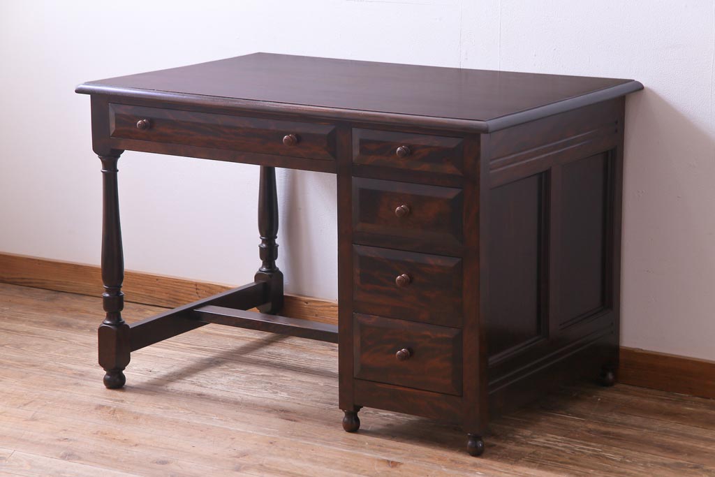 民芸家具 > ビンテージ 松本民芸家具 T型 クラシカルなデザインがシック雰囲気漂う片袖机(デスク、在宅ワーク、在宅用作業台)(定価約37万円)
