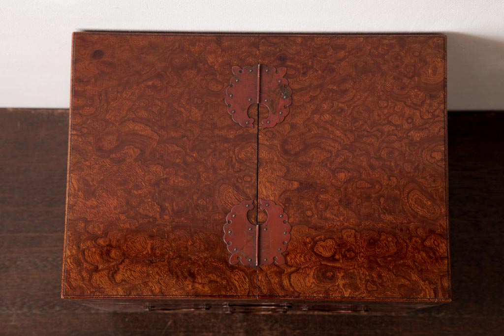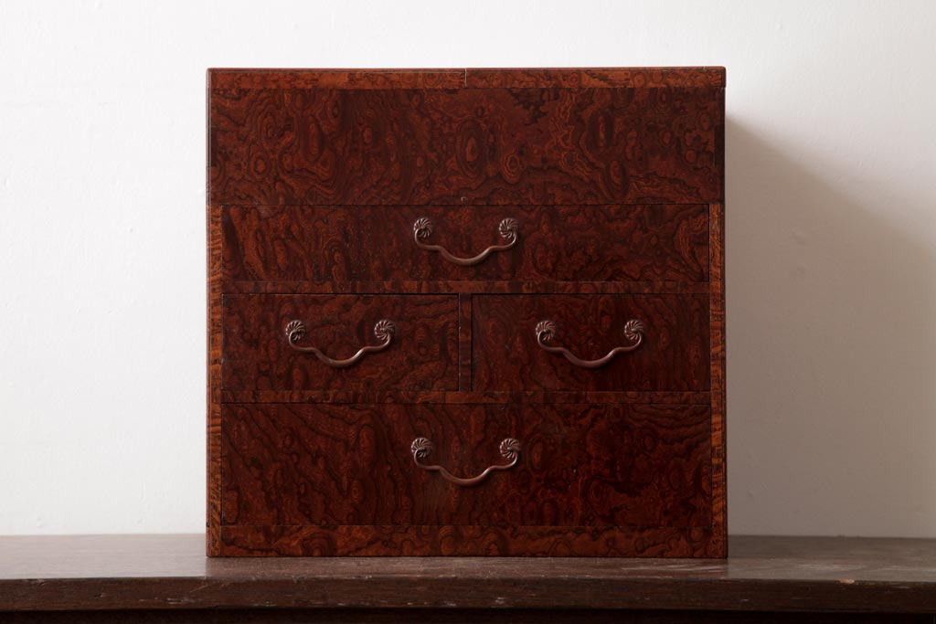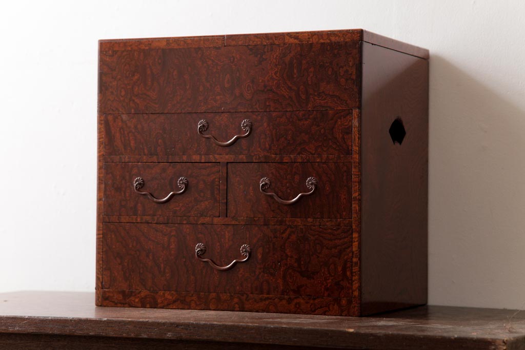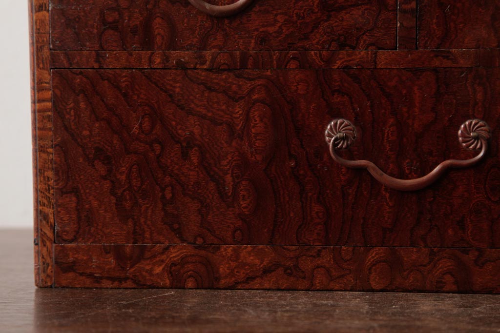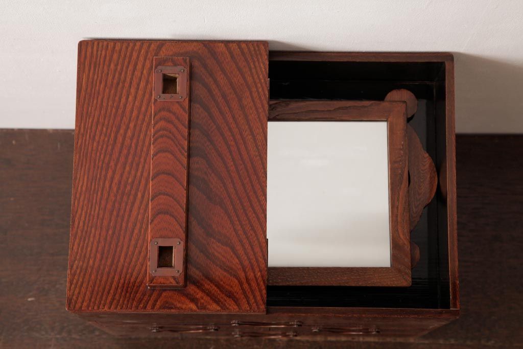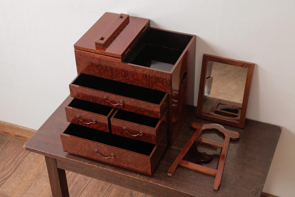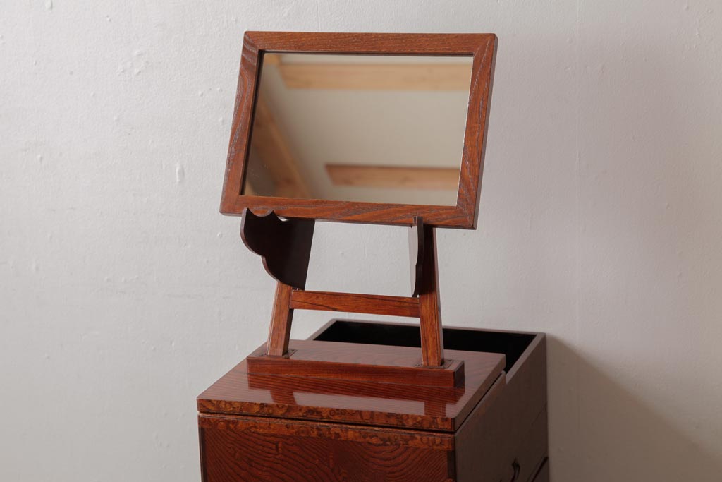 ラフジュ工房> 小物収納・トランク> 小引き出し > アンティーク家具 和製アンティーク 総ケヤキ材 玉杢が上品な引き出し付きの鏡台(化粧箱、小引き出し、小物収納)(1)
