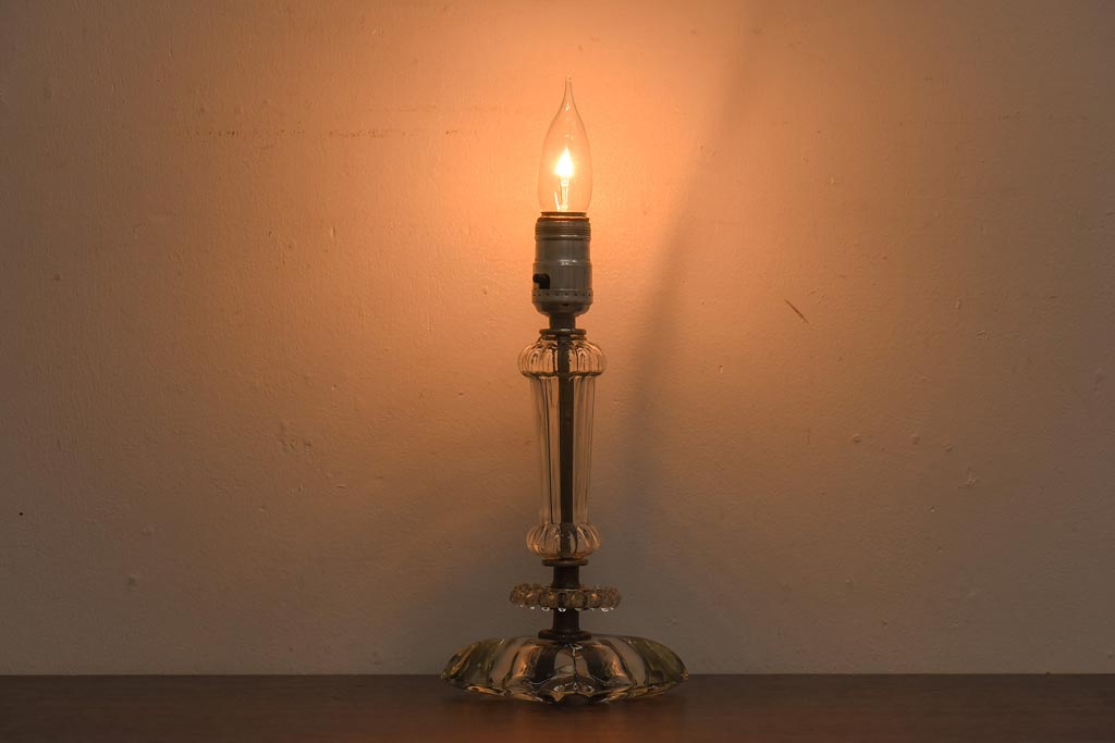 アメリカビンテージ ガラスのスタンドがおしゃれなテーブルランプ(スタンドライト、卓上照明)
