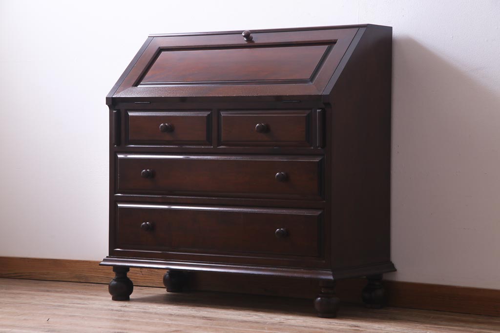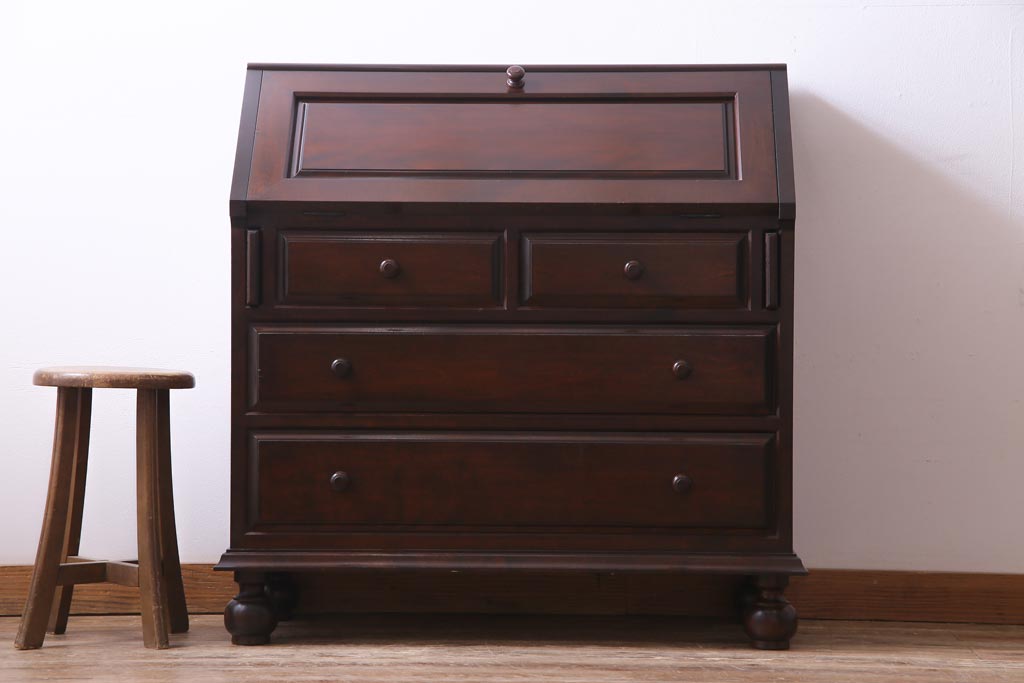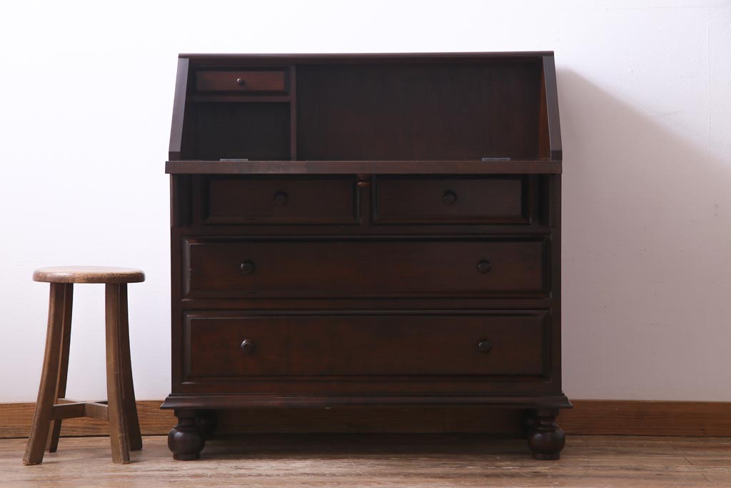 中古 松本民芸家具 H型 ボールフットが特徴的なライティングビューロー(ワークデスク、チェスト)です。