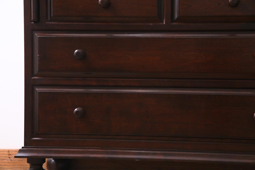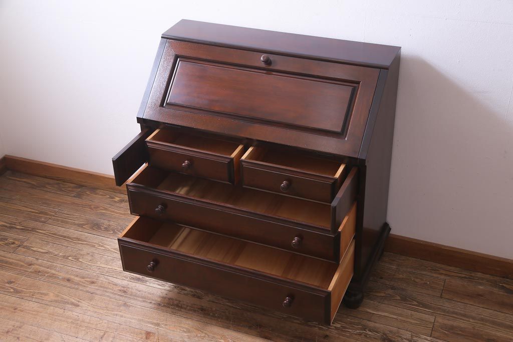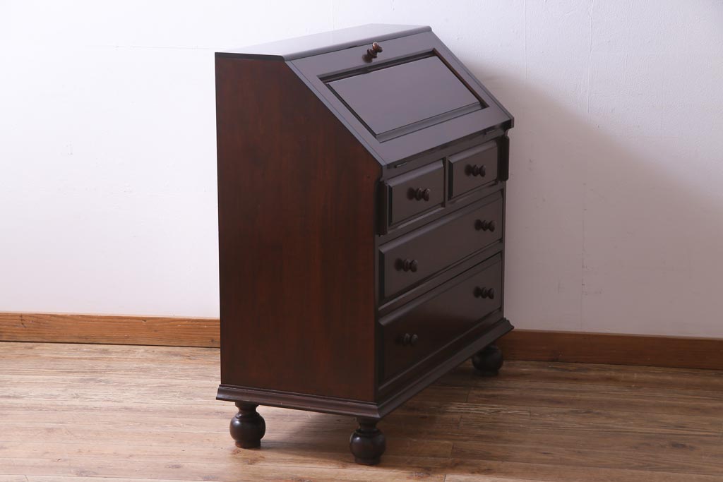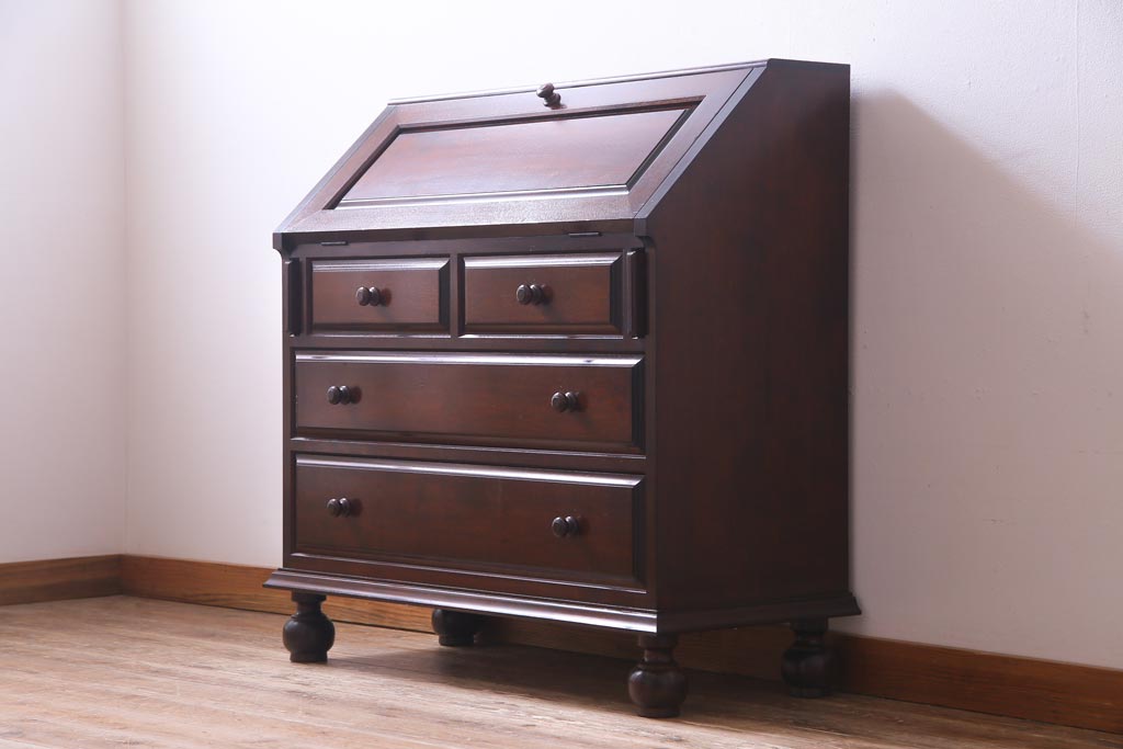 中古 松本民芸家具 H型 ボールフットが特徴的なライティングビューロー(ワークデスク、在宅ワーク、在宅用、チェスト)