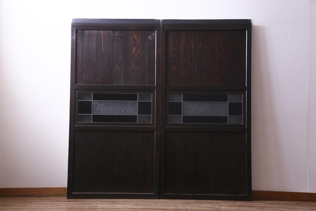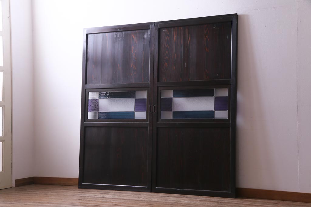 和製アンティーク ラフジュ工房オリジナルステンドグラス モールガラス・結霜ガラス入り ステンドグラスがお洒落な色ガラス帯戸2枚セット(建具、板戸、ガラス戸)