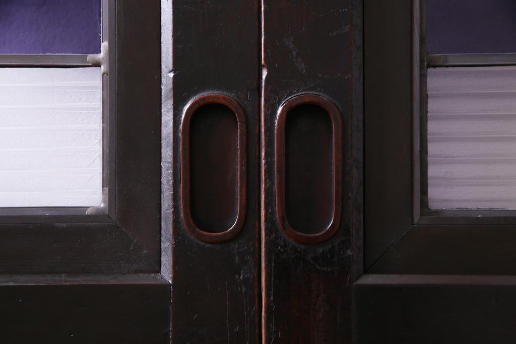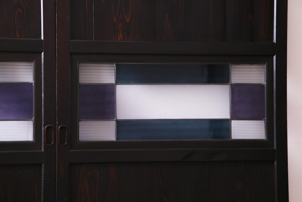 ドア・建具> 引き戸 > 和製アンティーク ラフジュ工房オリジナルステンドグラス モールガラス・結霜ガラス入り ステンドグラスがお洒落な色ガラス帯戸2枚セット(建具、板戸、ガラス戸)