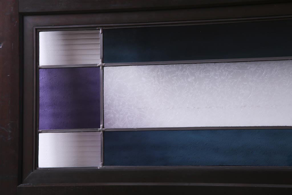 ドア・建具> 板戸・帯戸 > 和製アンティーク ラフジュ工房オリジナルステンドグラス モールガラス・結霜ガラス入り ステンドグラスがお洒落な色ガラス帯戸2枚セット(建具、板戸、ガラス戸)