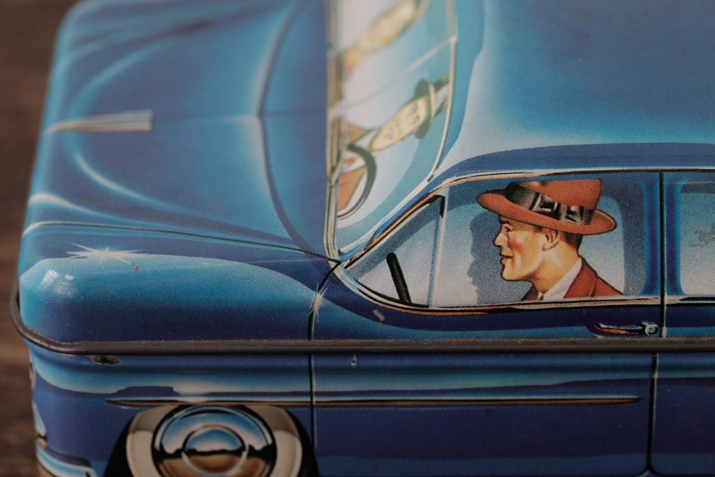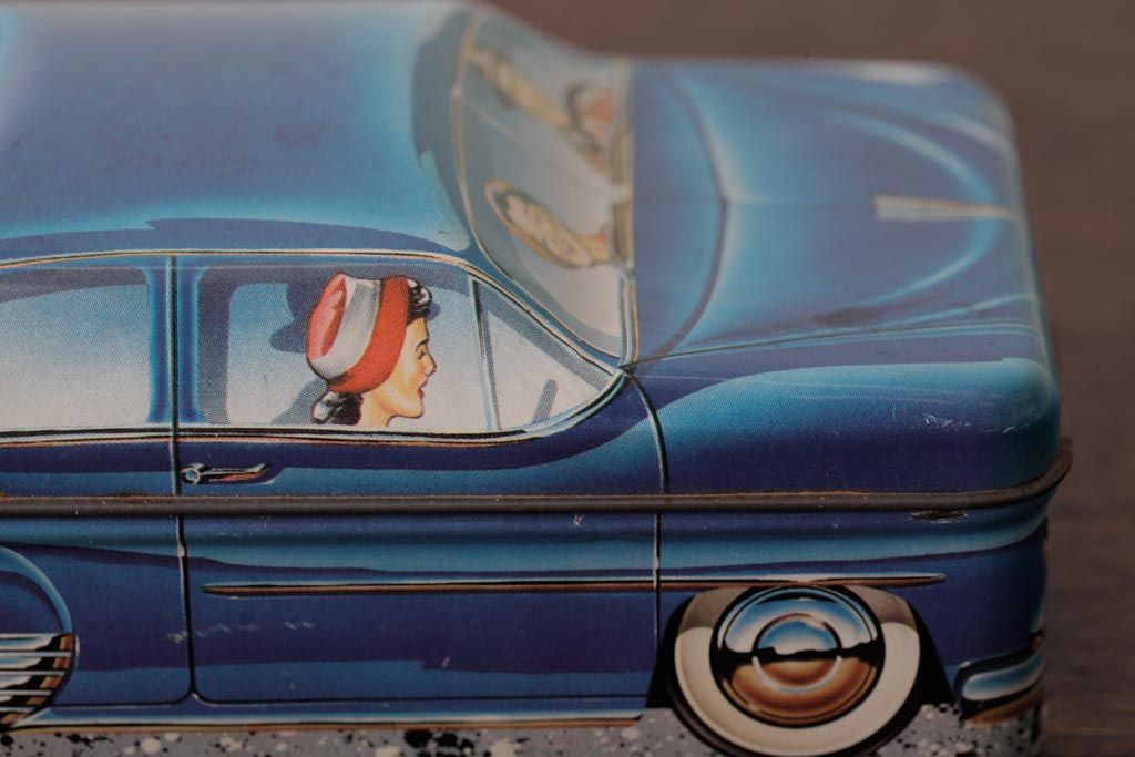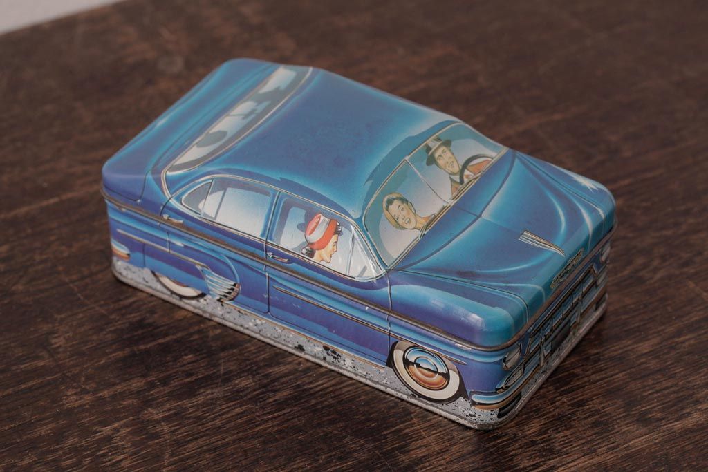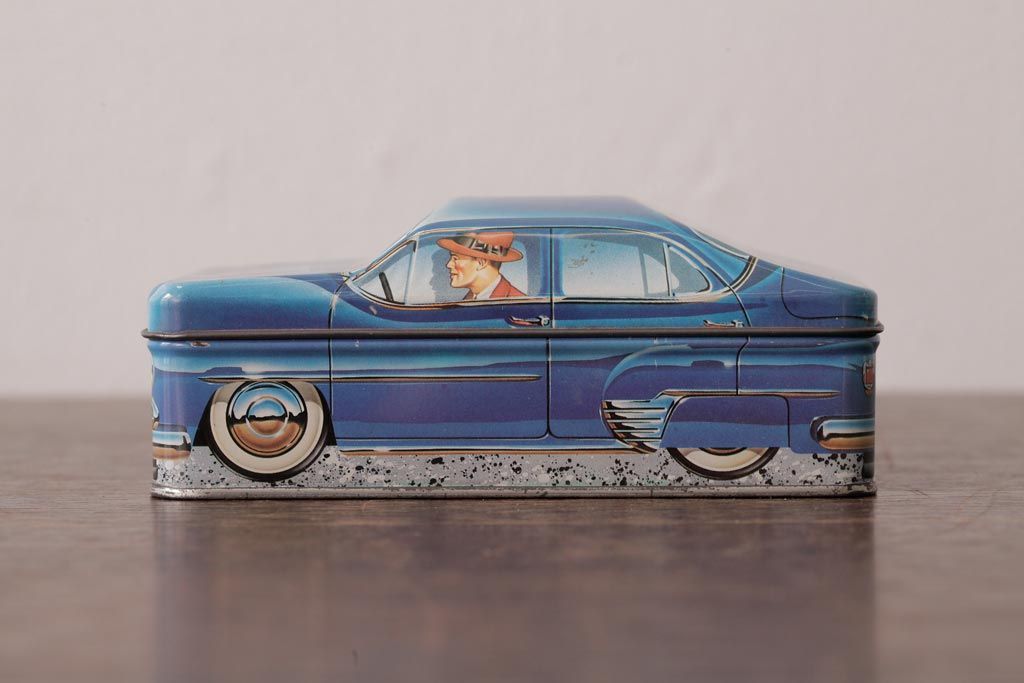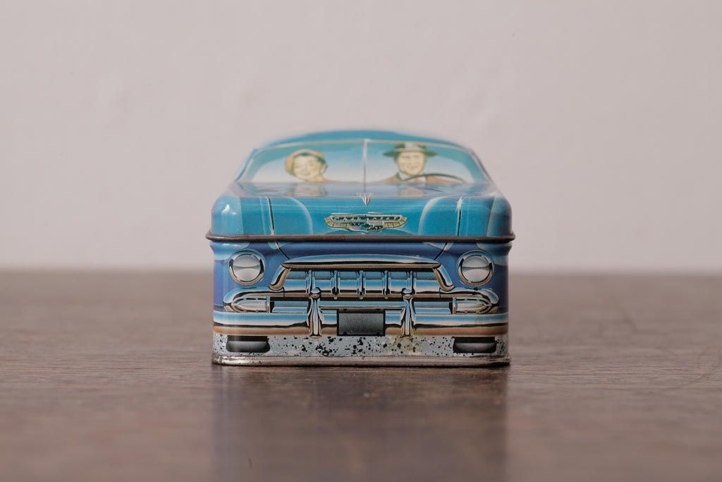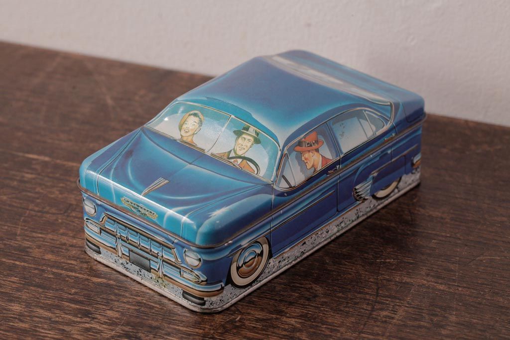 アンティーク雑貨 イギリスビンテージ IAN LOGAN(イアン・ローガン) CARLECTABLES 車の形のティン缶(ブリキ缶)