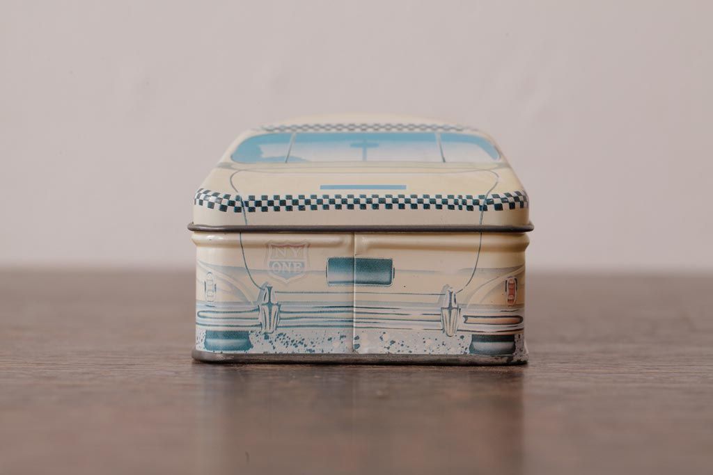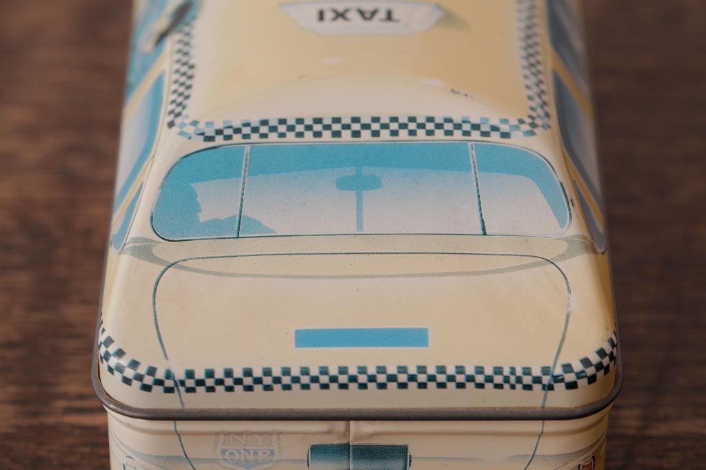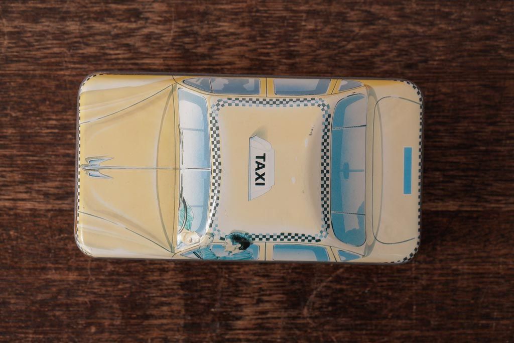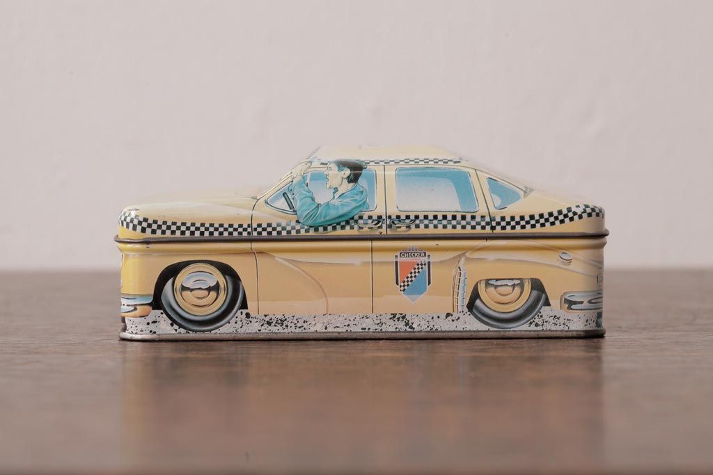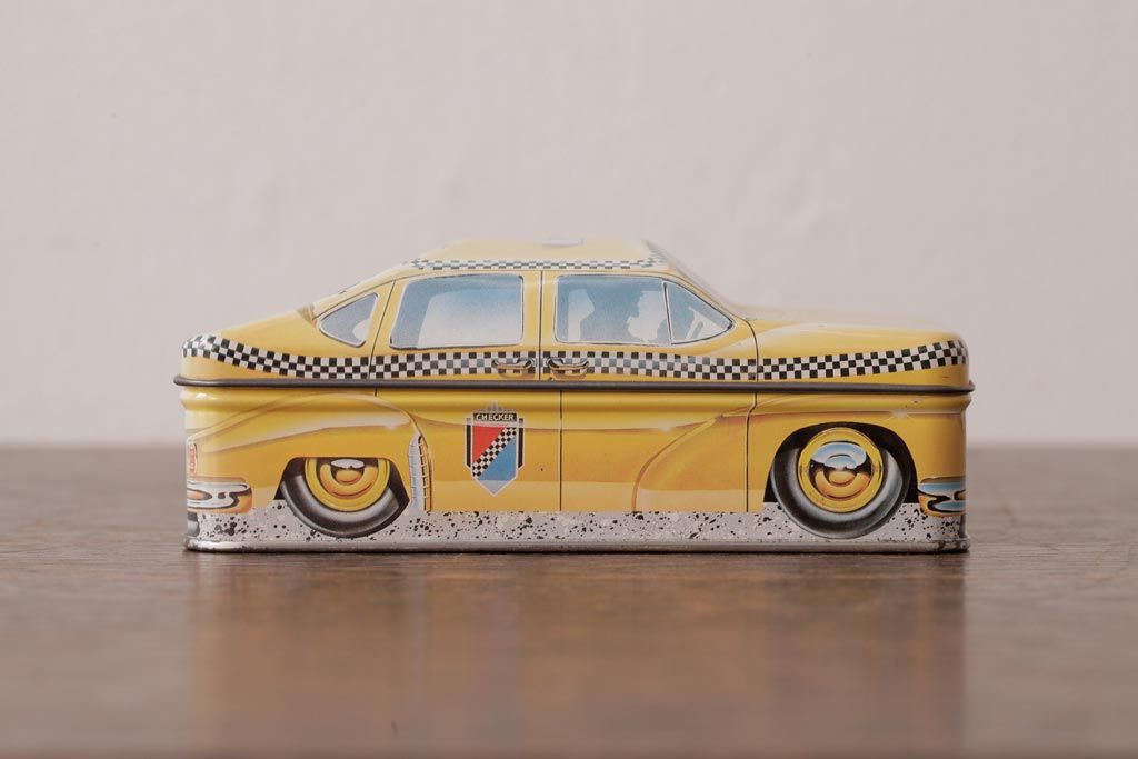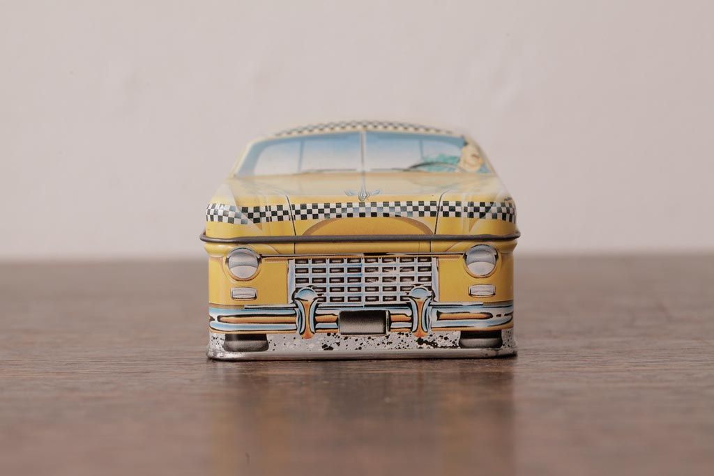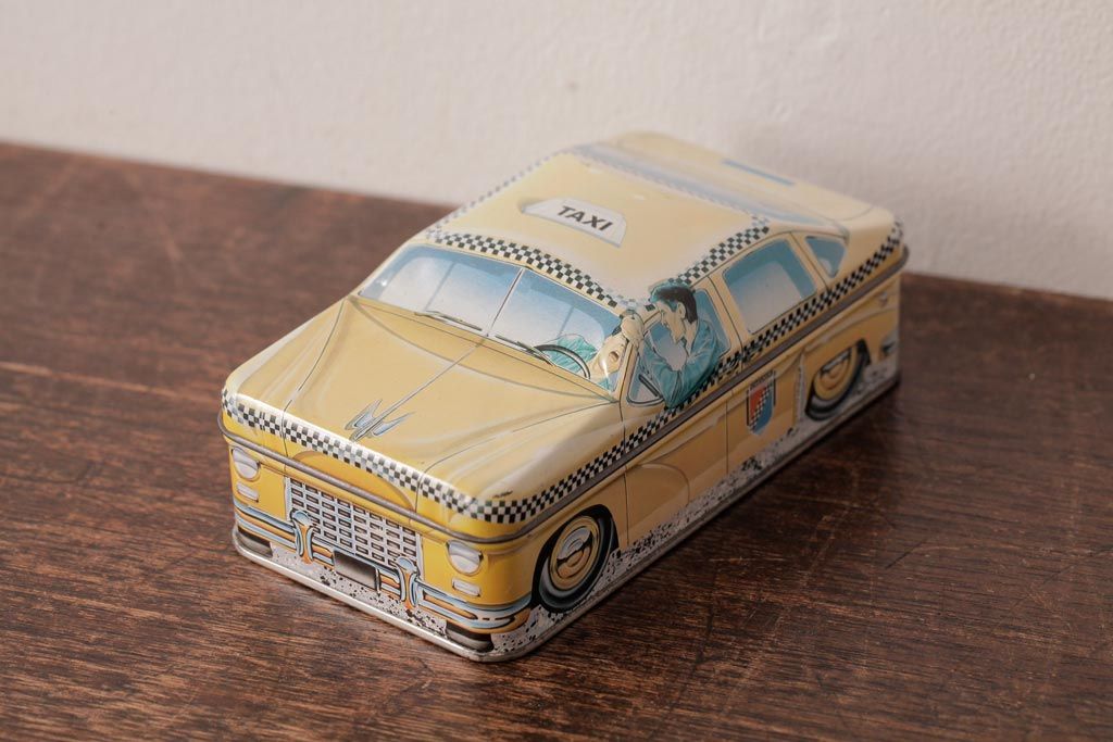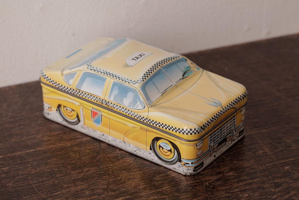 アンティーク雑貨 イギリスビンテージ IAN LOGAN(イアン・ローガン) TAXI 車の形のティン缶(ブリキ缶)