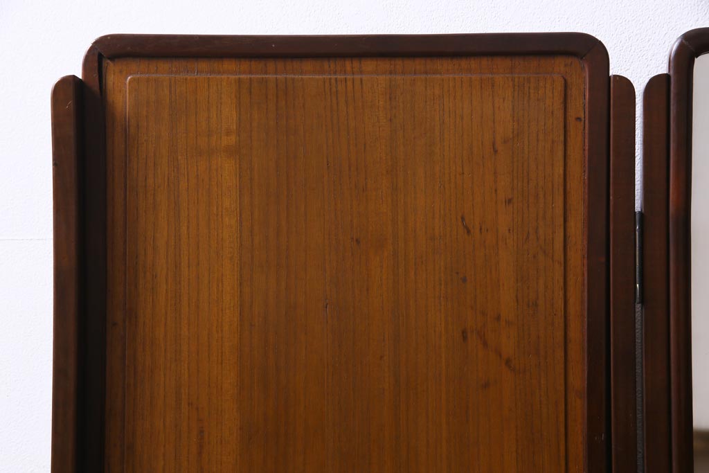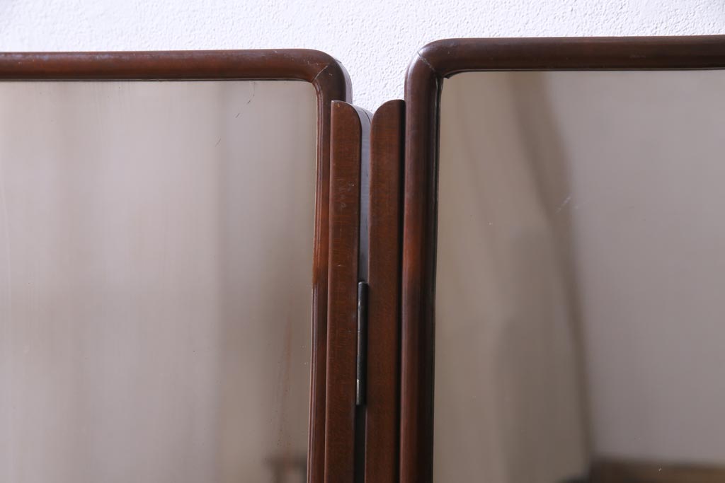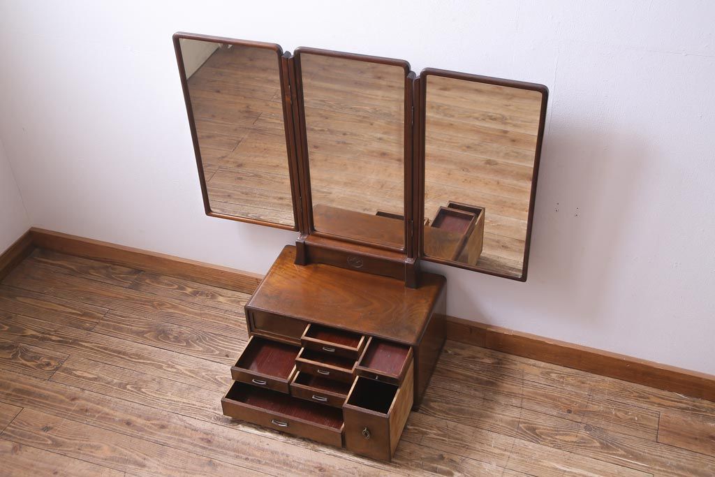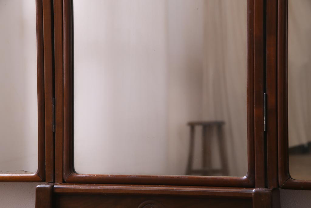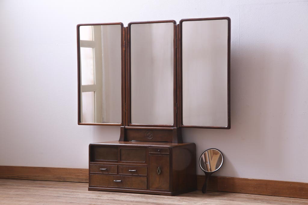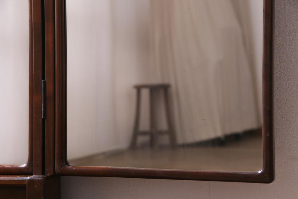 アンティーク雑貨 高級指物家具 桑材・桐材 繊細な技が光る手鏡付き三面鏡(ドレッサー、鏡台、ミラー)