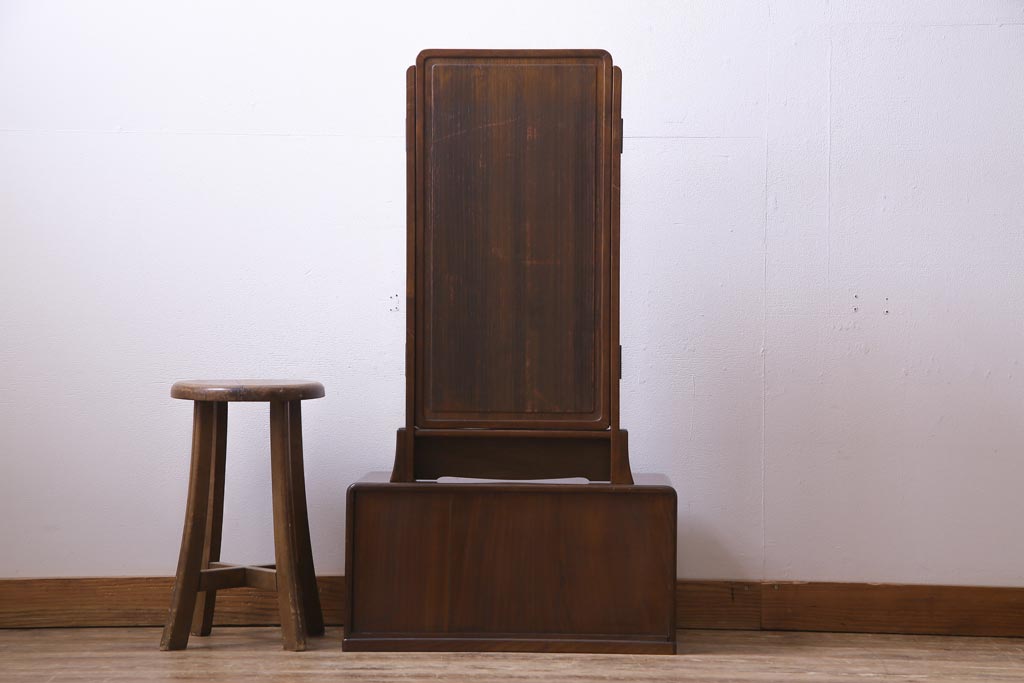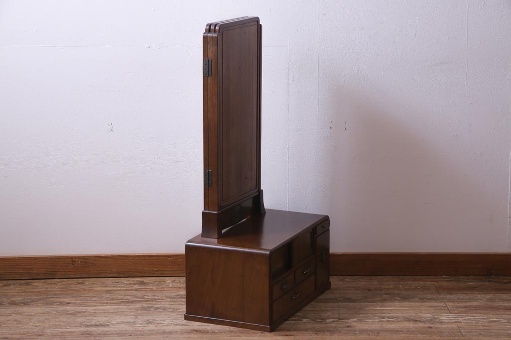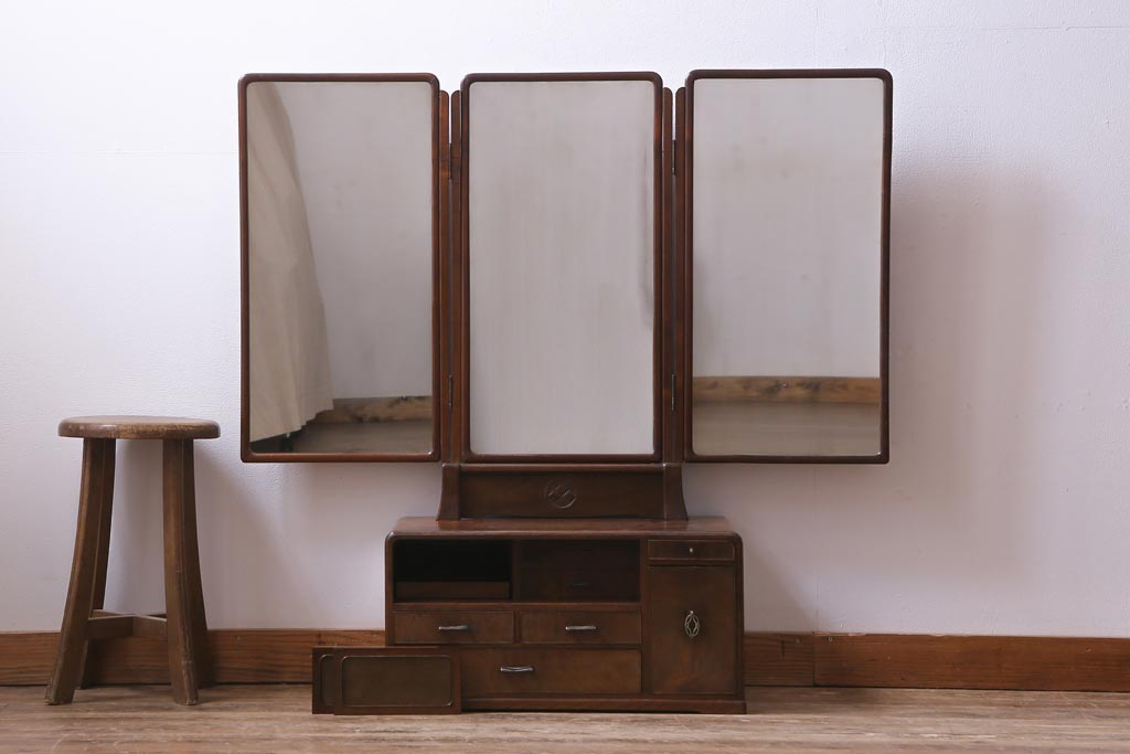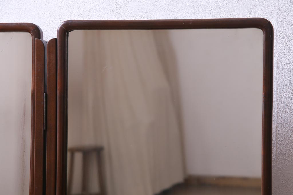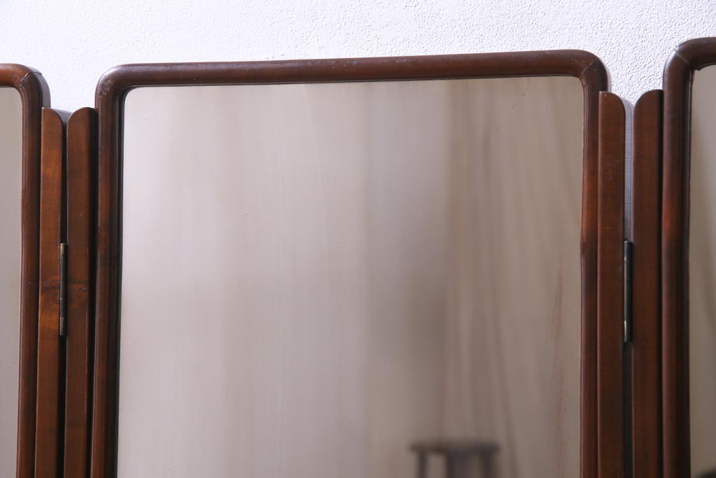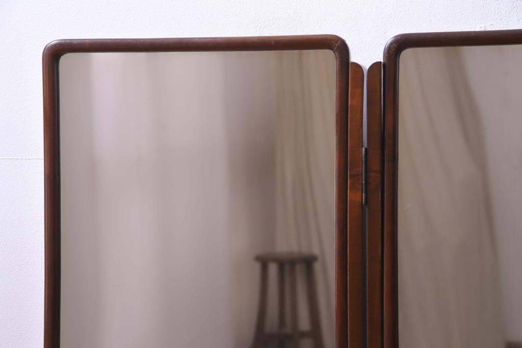 アンティーク雑貨 高級指物家具 桑材・桐材 繊細な技が光る手鏡付き三面鏡(ドレッサー、鏡台、ミラー)