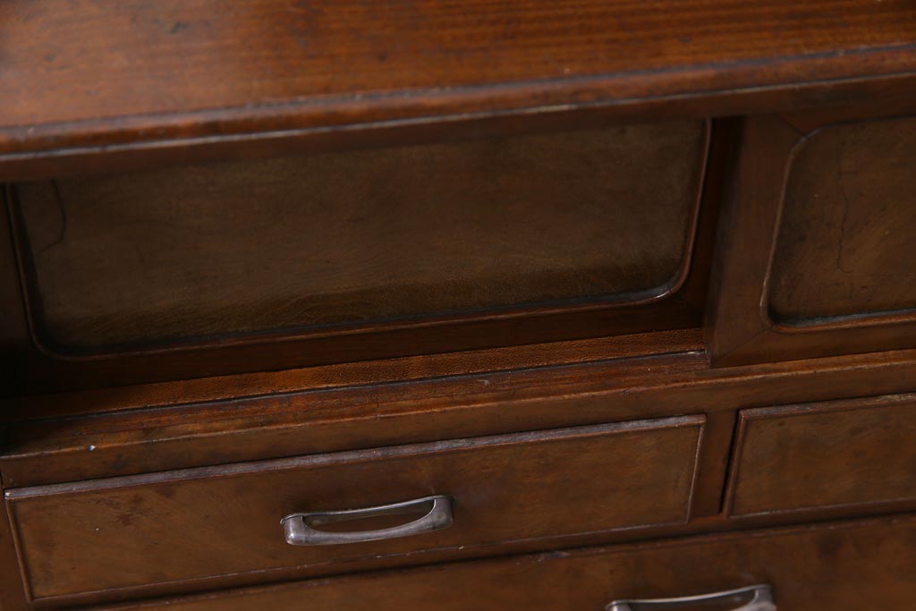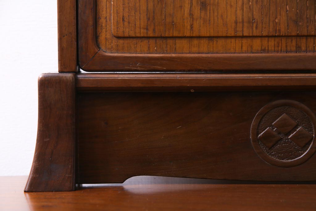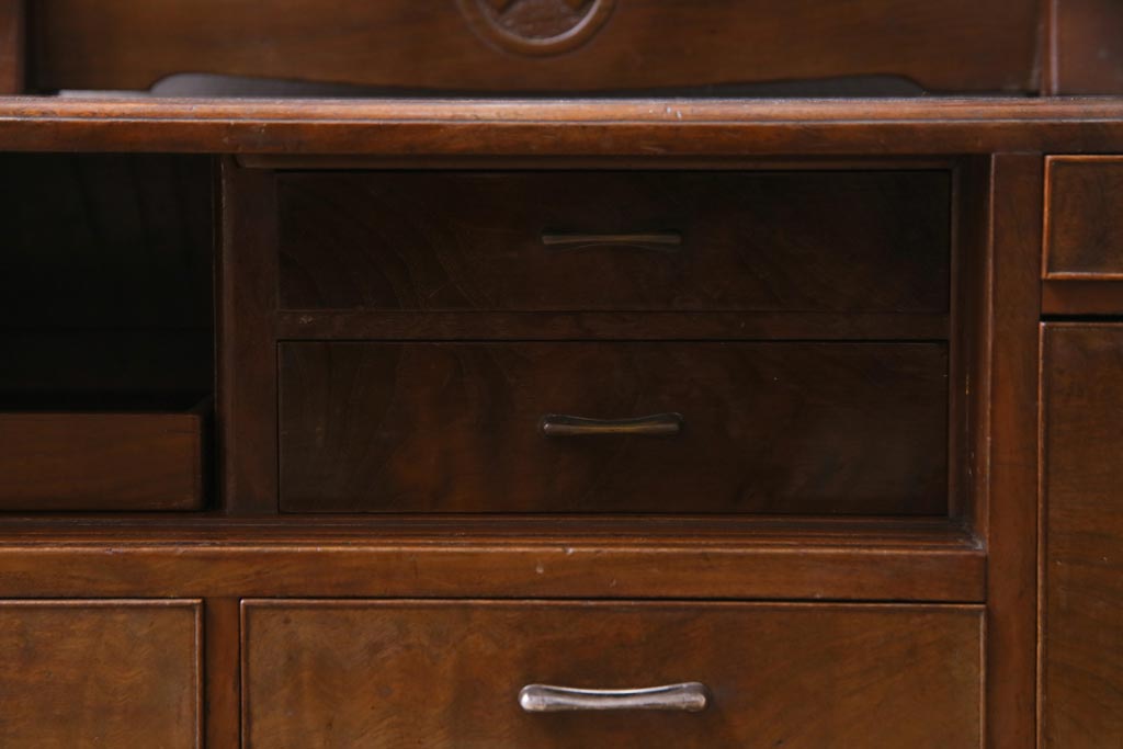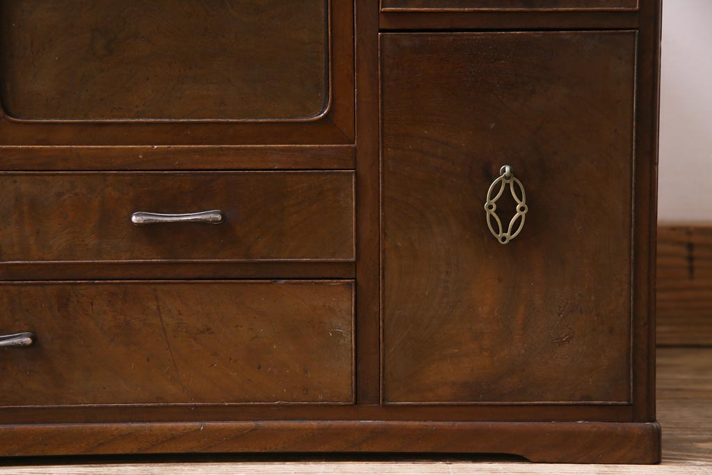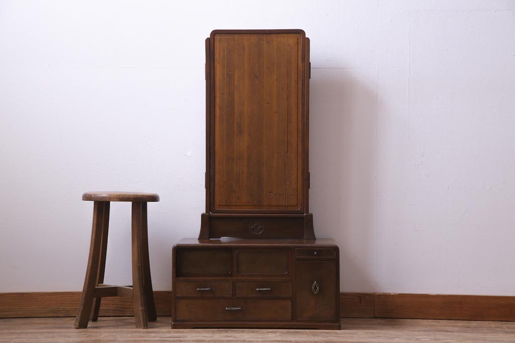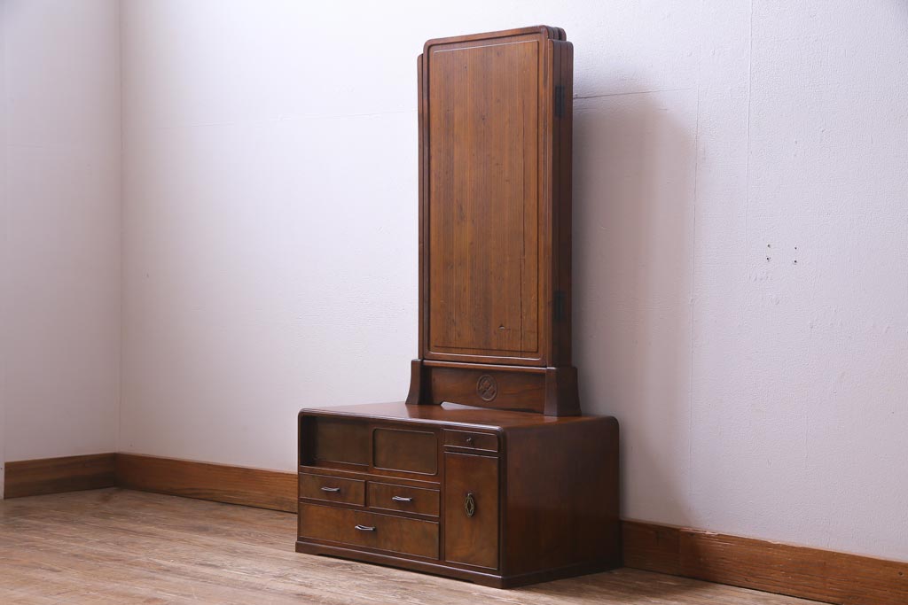 アンティーク雑貨 高級指物家具 桑材・桐材 繊細な技が光る手鏡付き三面鏡(ドレッサー、鏡台、ミラー)