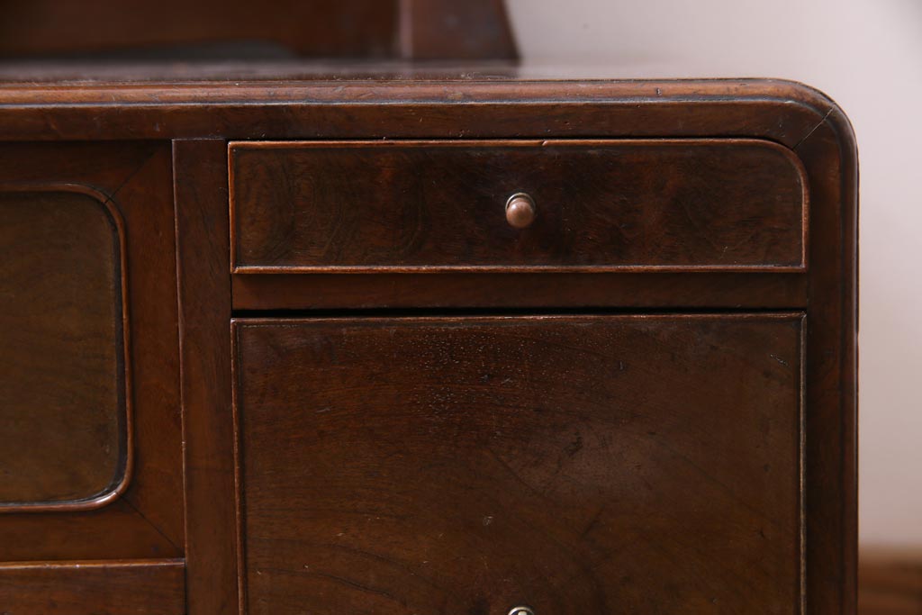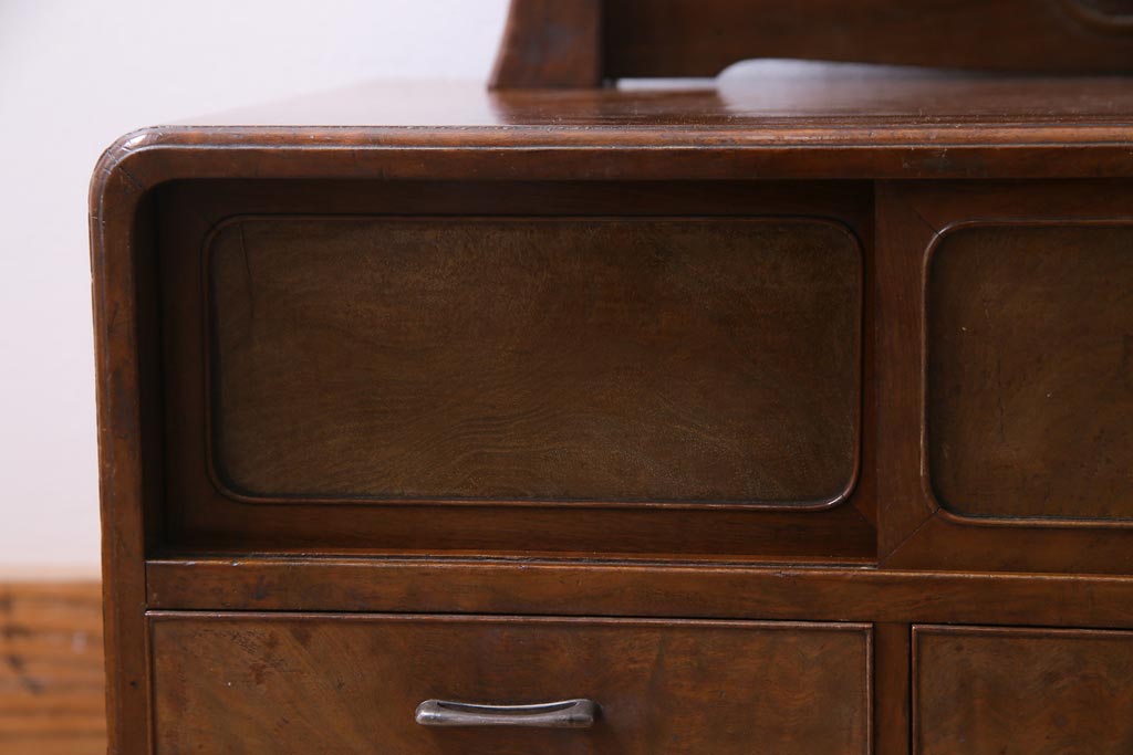 ラフジュ工房> ドレッサー・鏡台> ドレッサー > アンティーク雑貨 高級指物家具 桑材・桐材 繊細な技が光る手鏡付き三面鏡(ドレッサー、鏡台、ミラー)