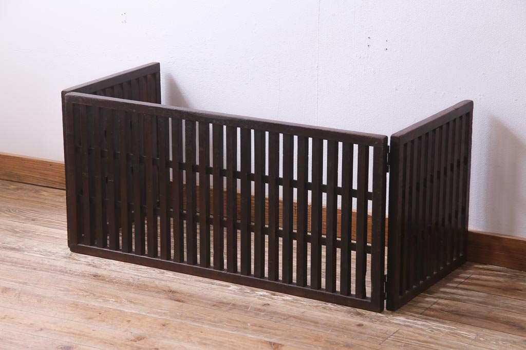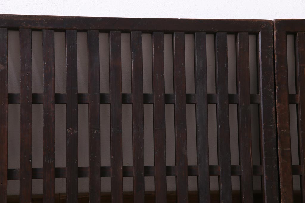和製アンティーク ヒノキ材 和の雰囲気高める三つ折り帳場格子(衝立、パーテーション)です。
