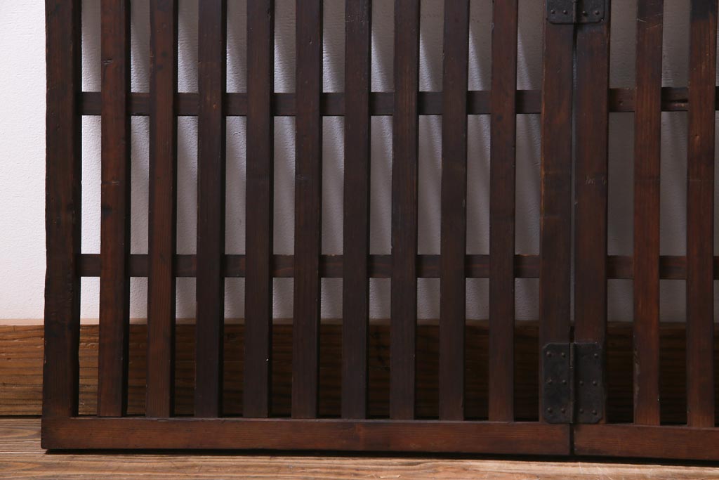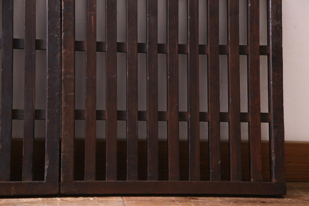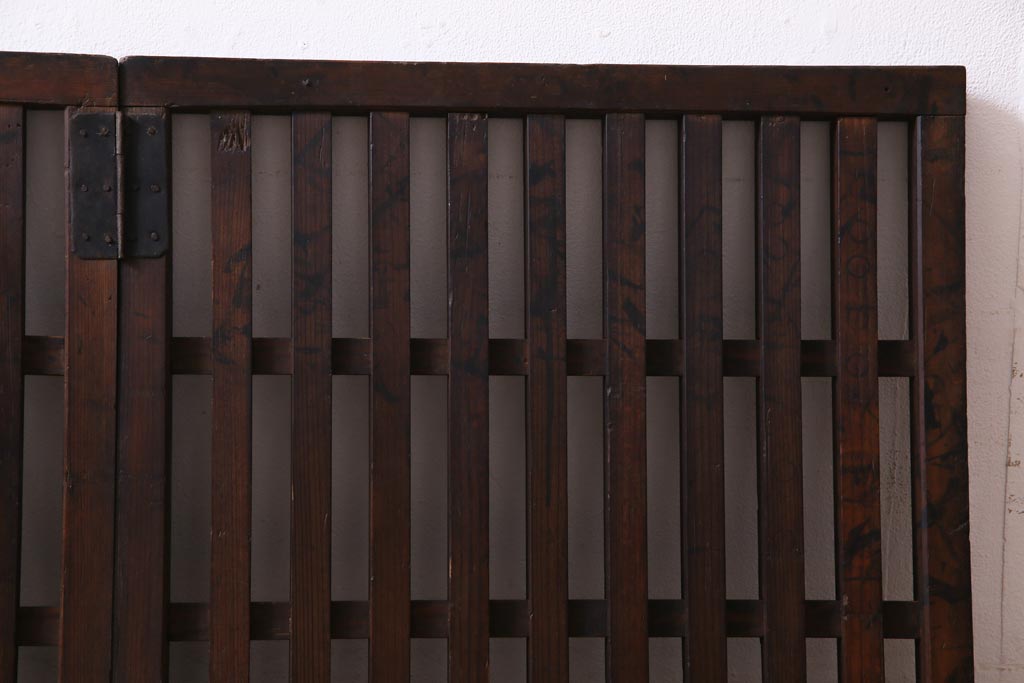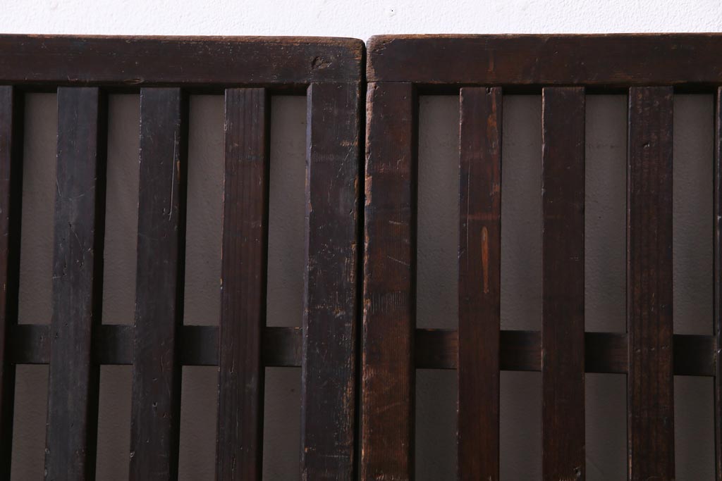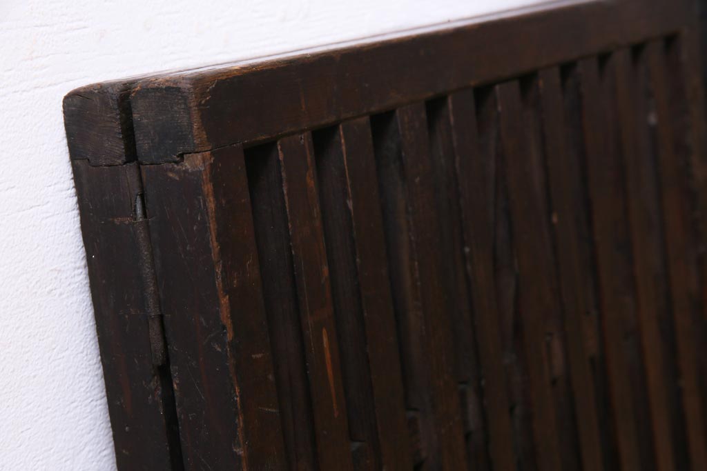和製アンティーク ヒノキ材 和の雰囲気高める三つ折り帳場格子(衝立、パーテーション)