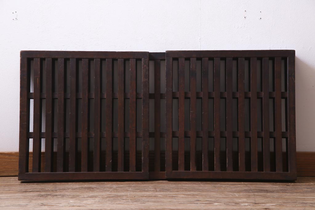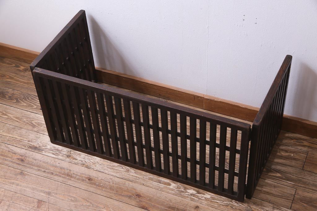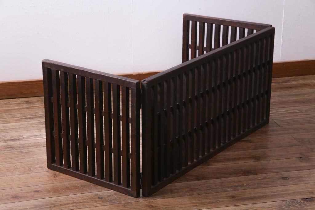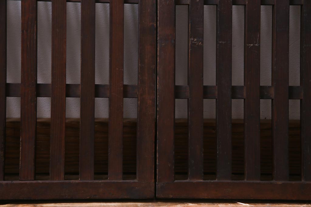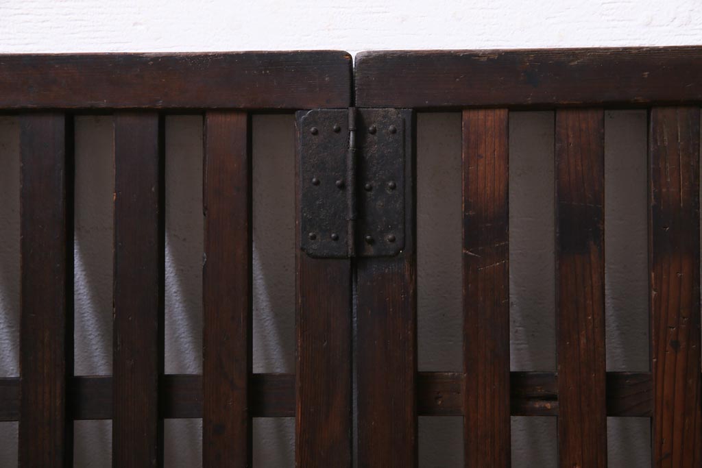和製アンティーク ヒノキ材 和の雰囲気高める三つ折り帳場格子(衝立、パーテーション)