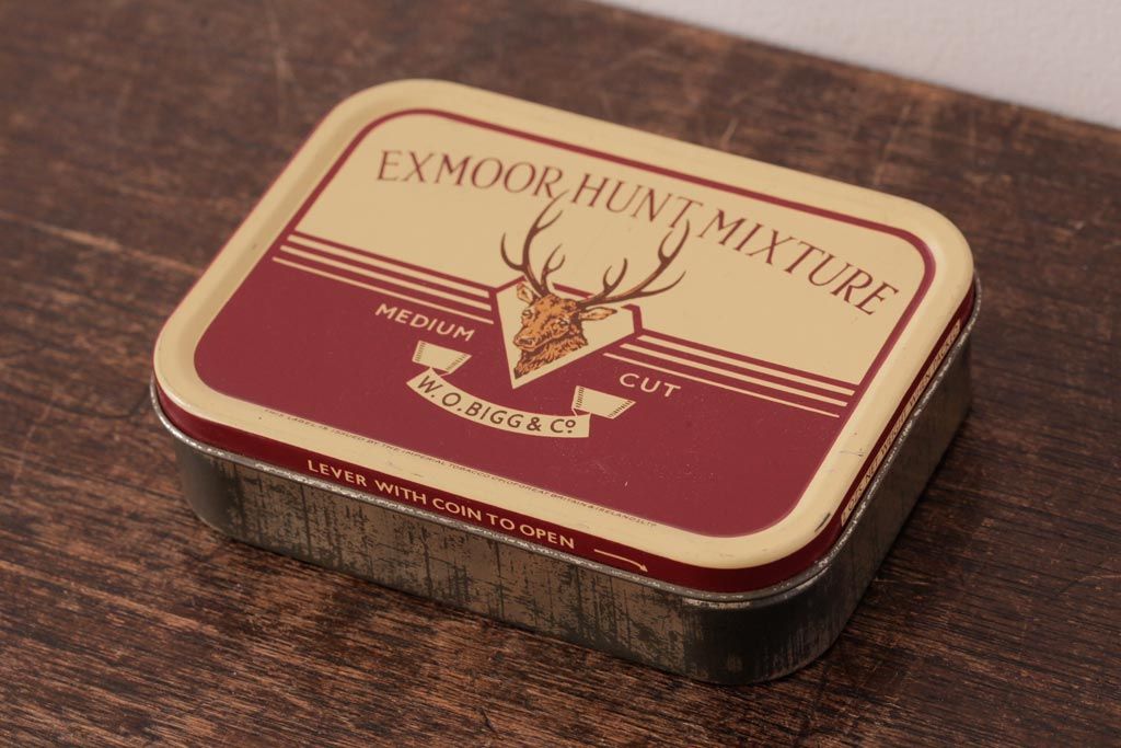 アンティーク雑貨 イギリスビンテージ EXMOOR HUNT MIXTURE パイプ煙草のティン缶(シガレットケース、タバコ缶)