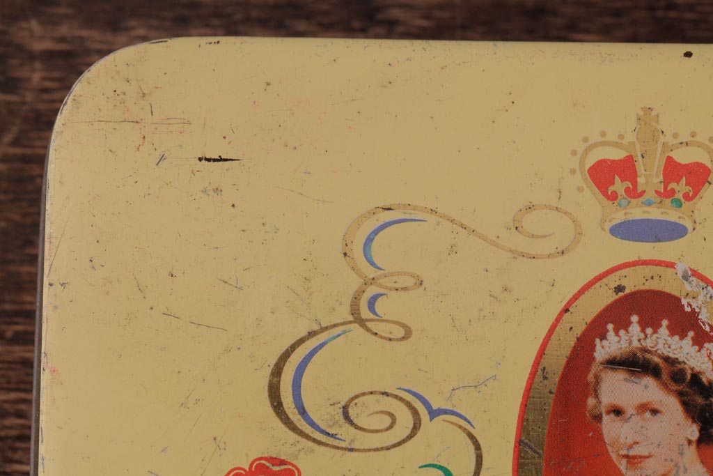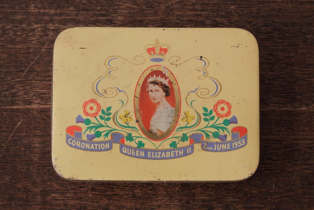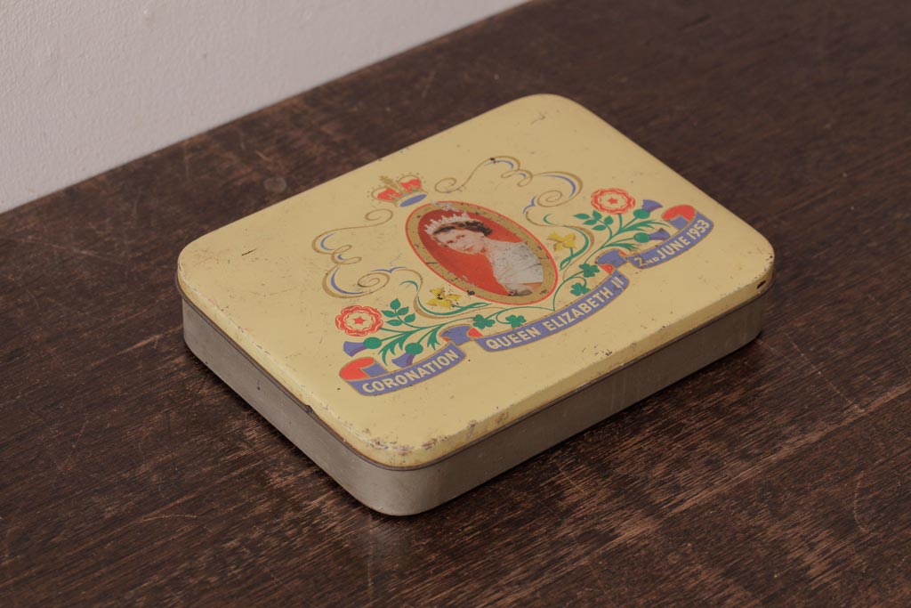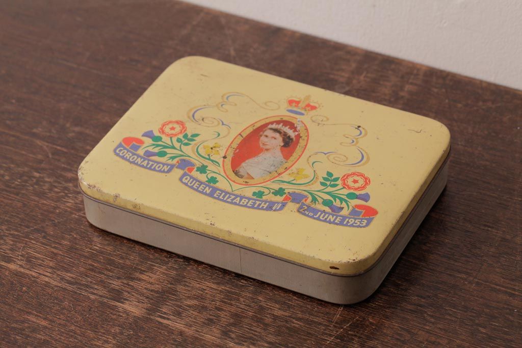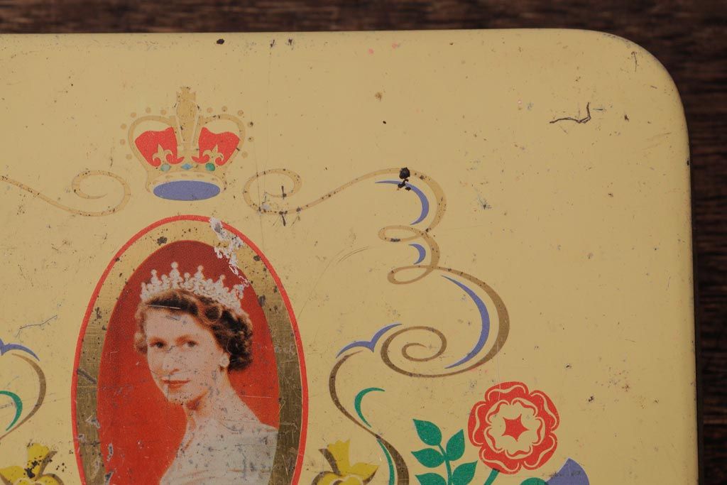 アンティーク雑貨 イギリスビンテージ Cadbury(キャドバリー) 女王エリザベス二世のティン缶(ブリキ缶)