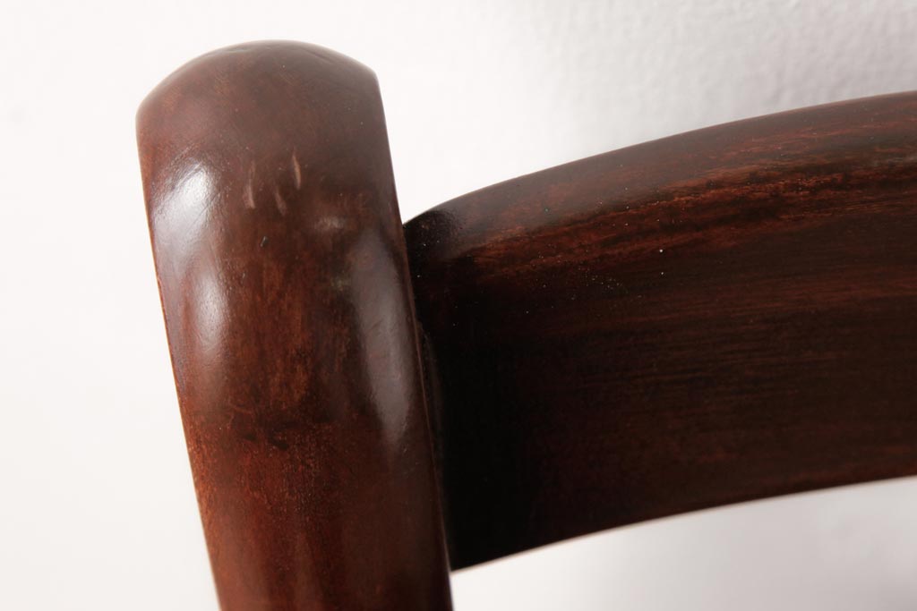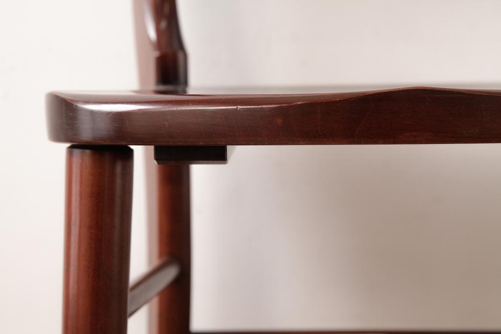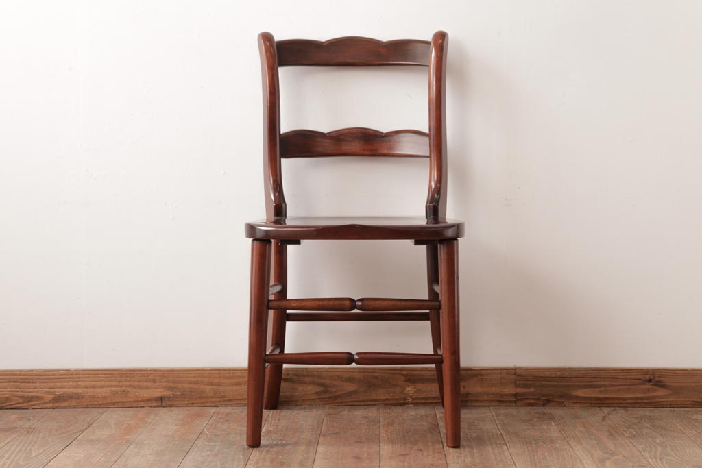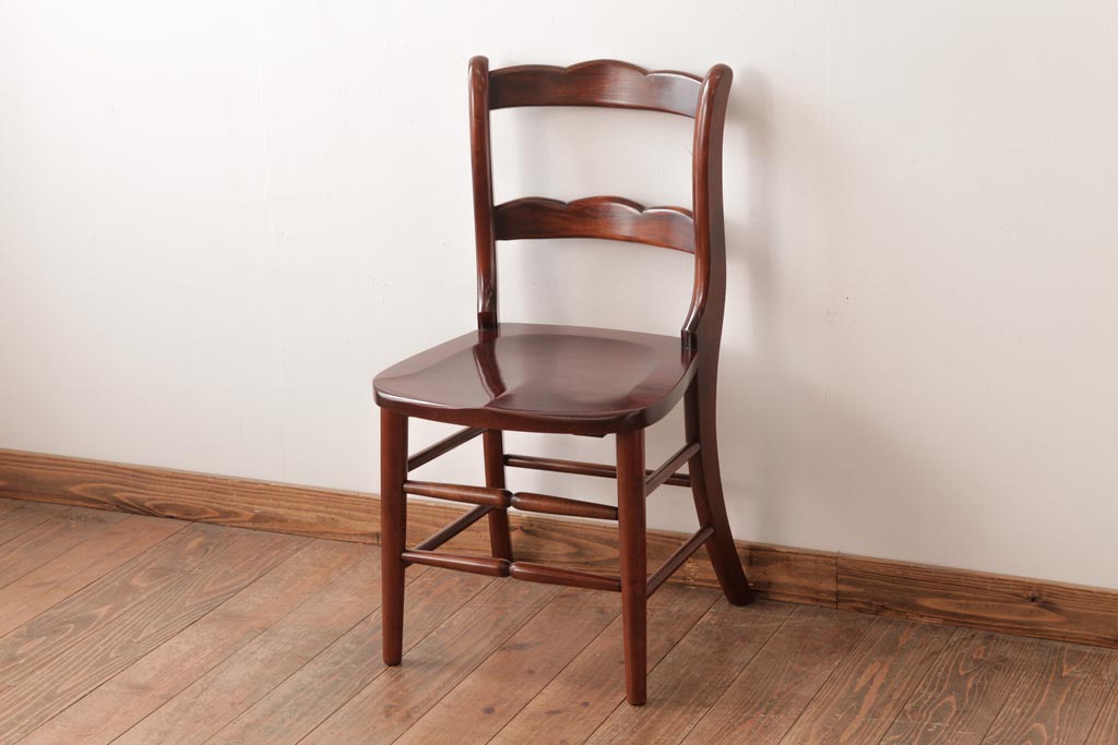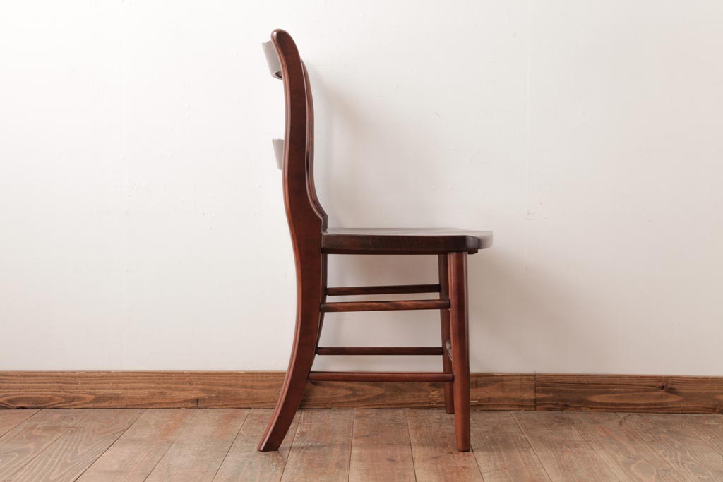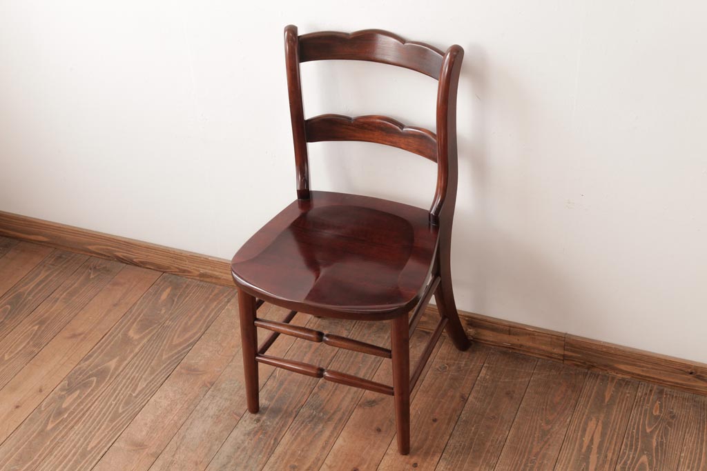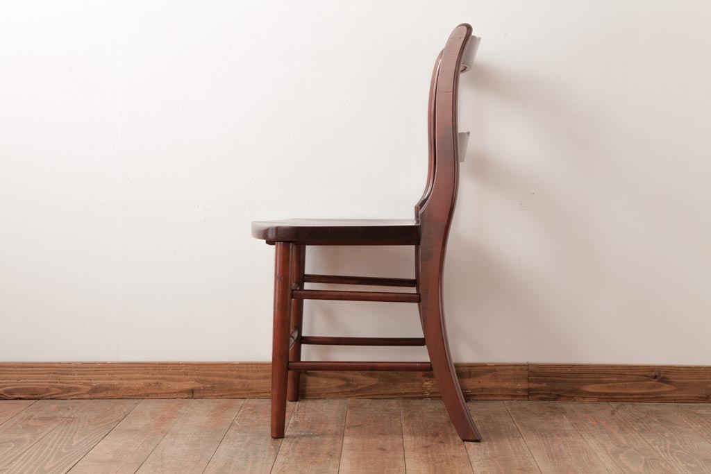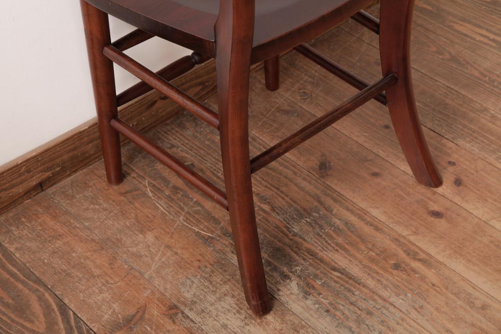 中古 九州民芸家具 赤みがかった色合いと艶が美しいダイニングチェア(板座チェア、ワークチェア)(1)