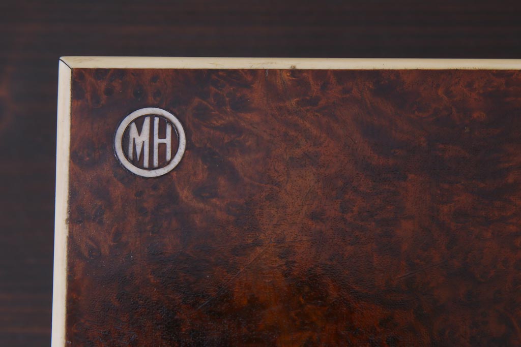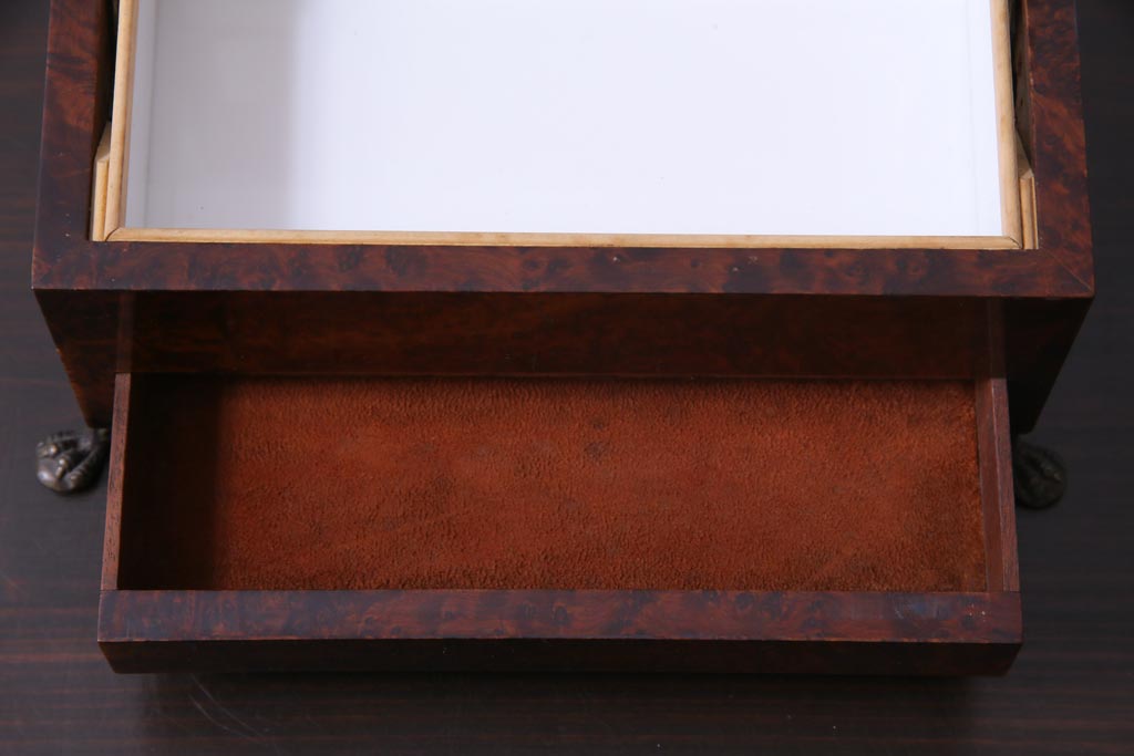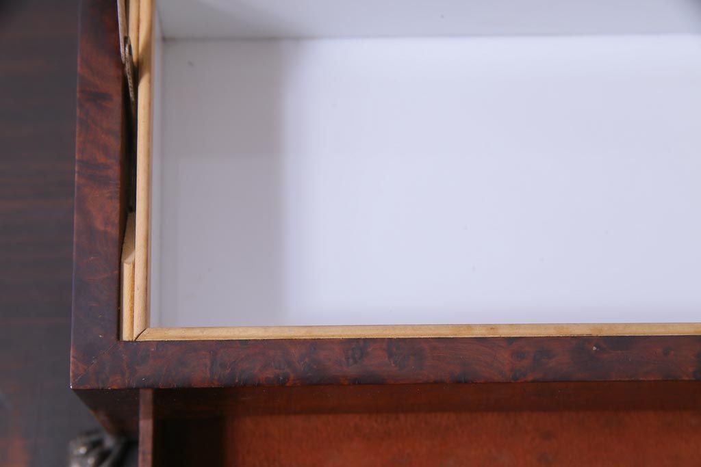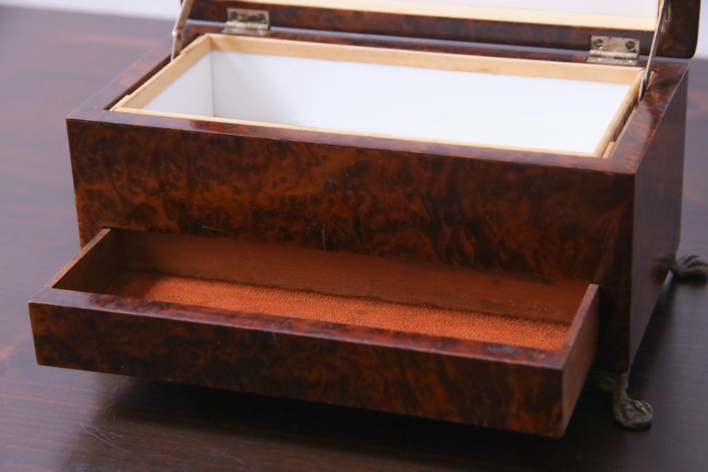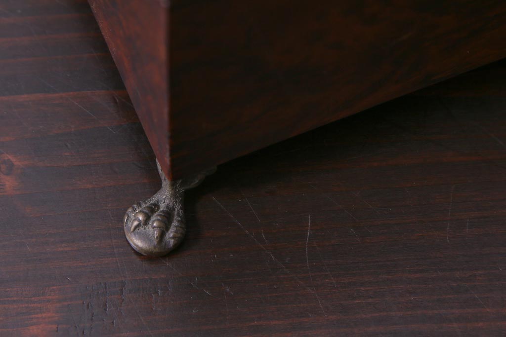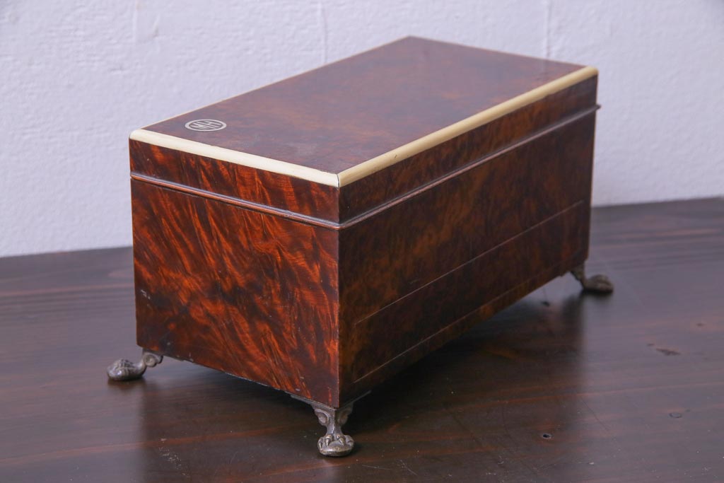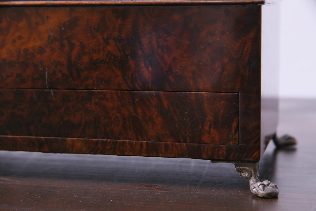 アンティーク雑貨 アメリカビンテージ 鳥眼杢 鹿角の意匠が目を引く脚付きシガーケース(ヒュミドール、葉巻入れ)