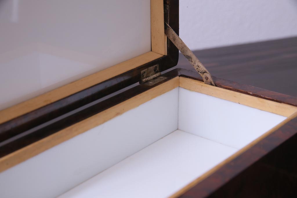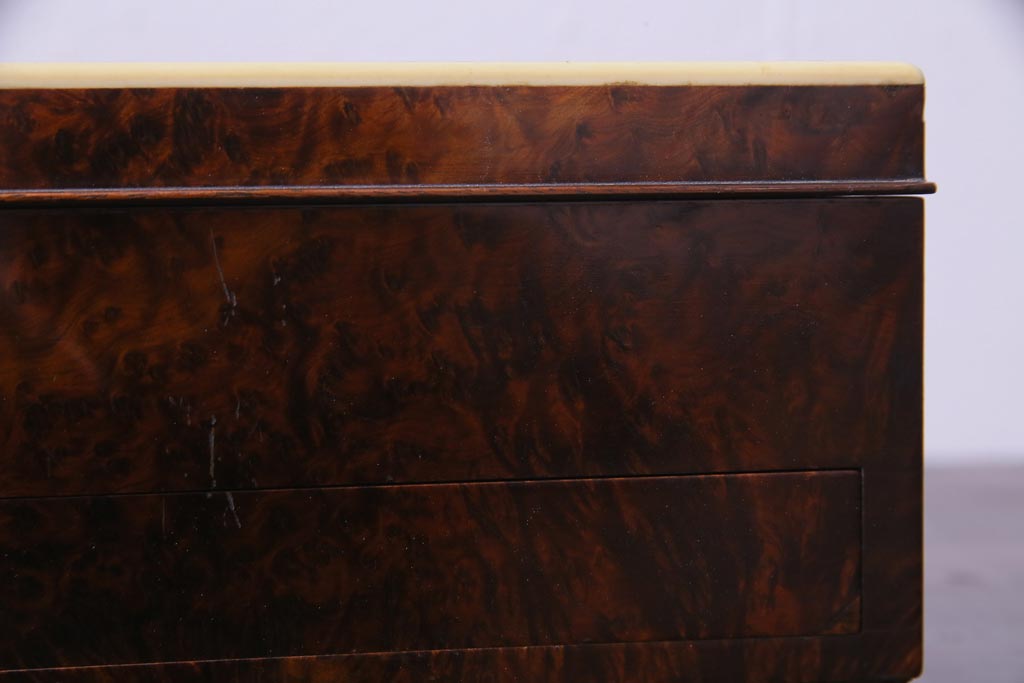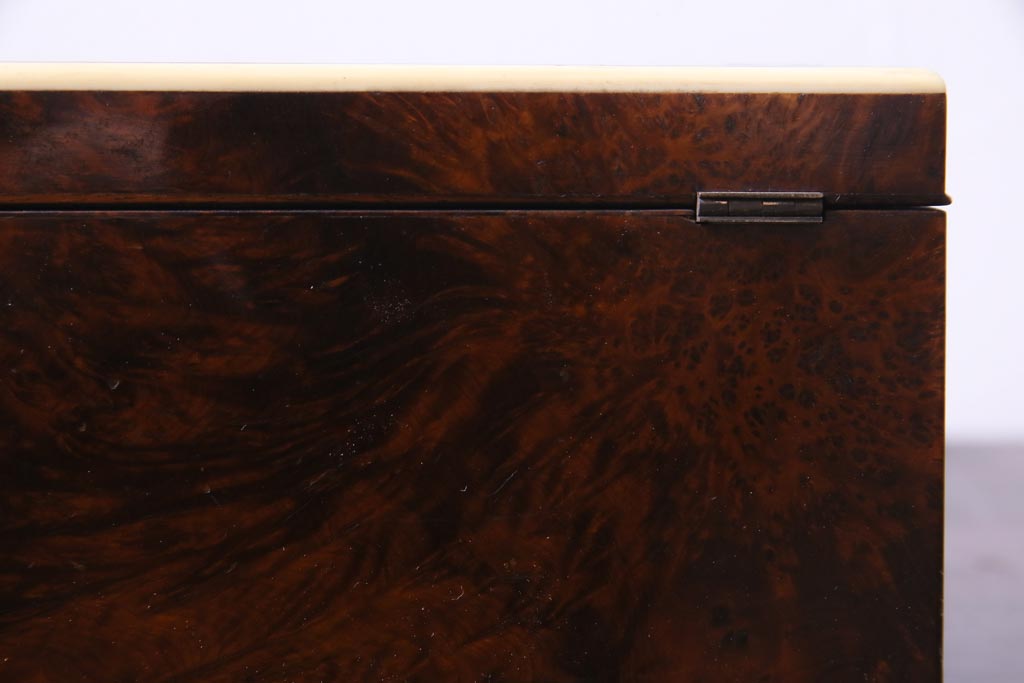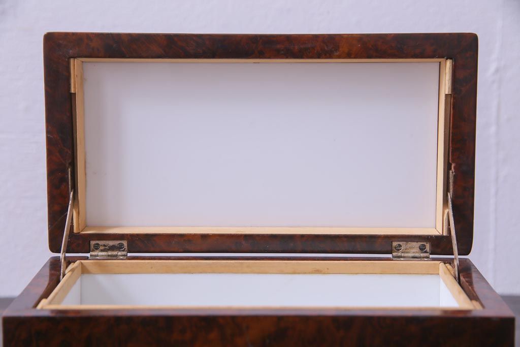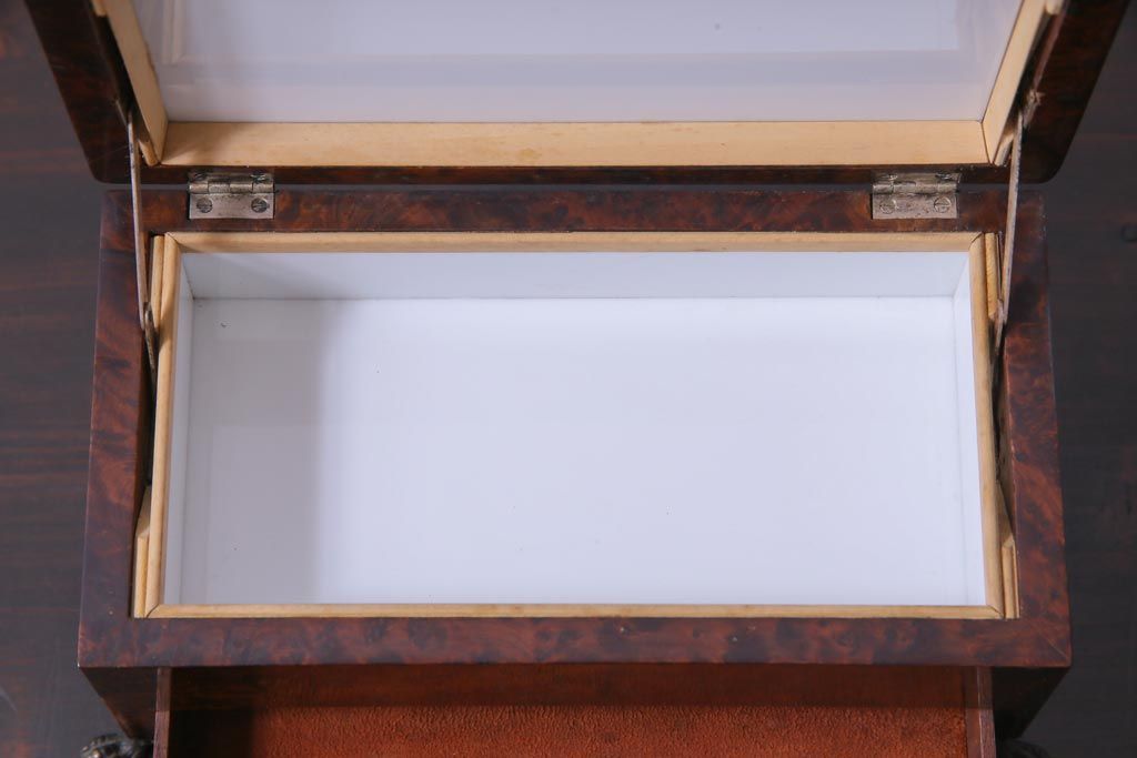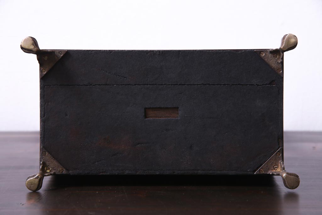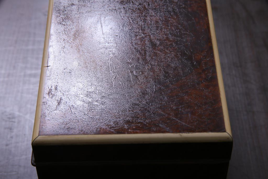 アンティーク雑貨 アメリカビンテージ 鳥眼杢 鹿角の意匠が目を引く脚付きシガーケース(ヒュミドール、葉巻入れ)