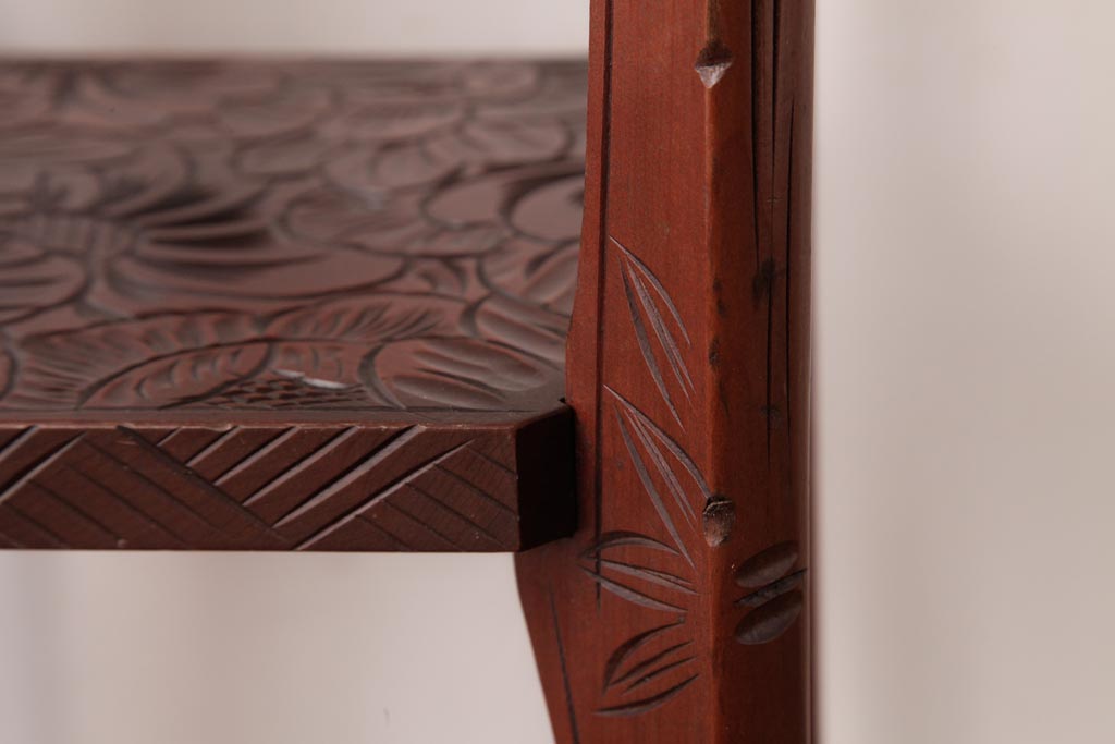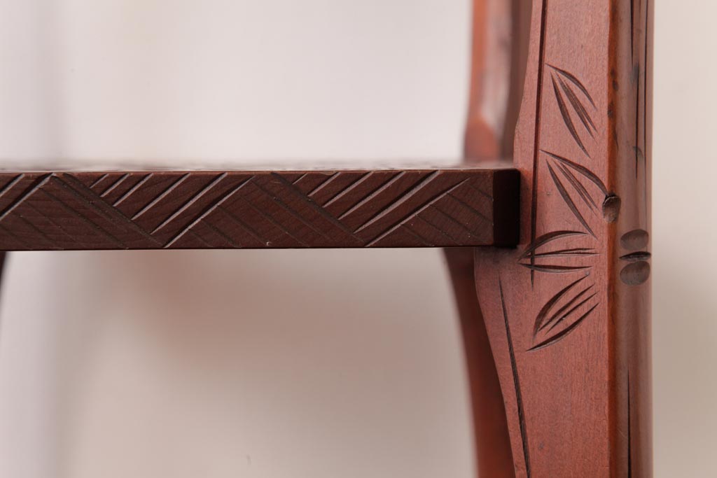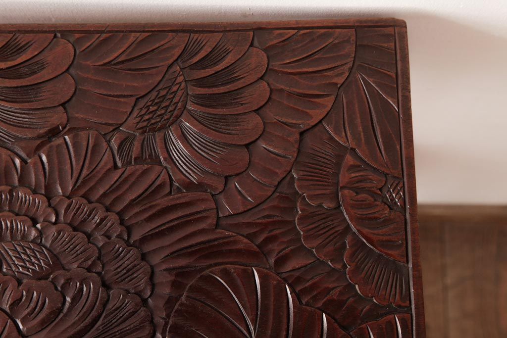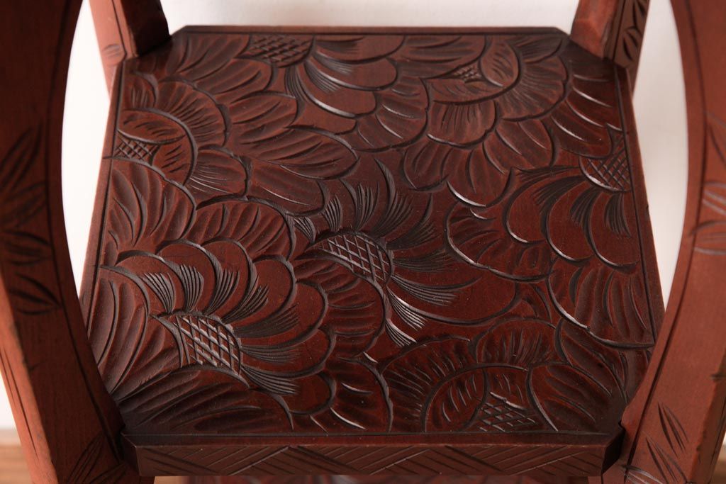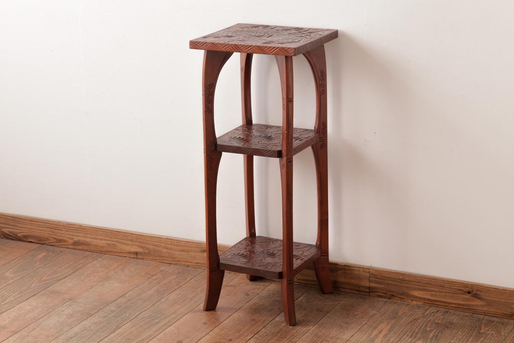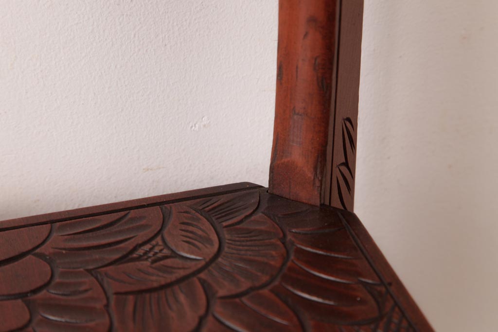 アンティーク雑貨 中古 伝統工芸 日光彫り 大胆な花の彫りが魅力的な飾り棚(花台)(1)